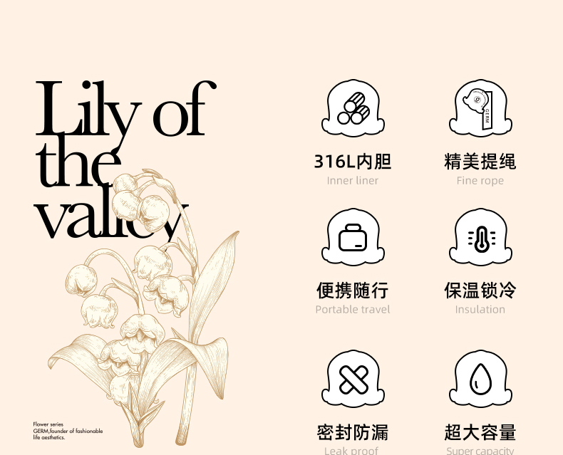 【25年新款】GERM铃兰保温杯500ml💥高颜值吸管水杯 教师节生日礼物