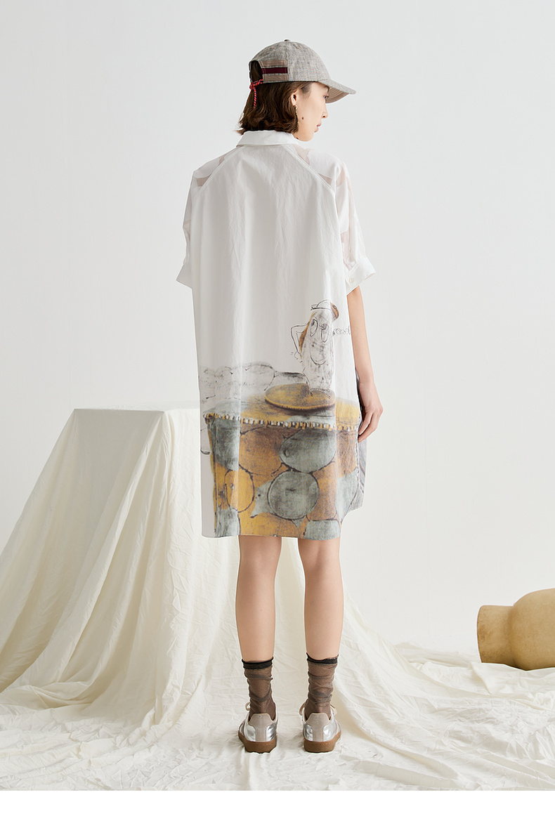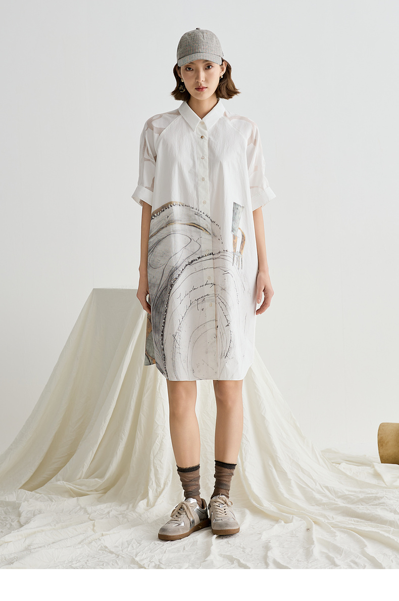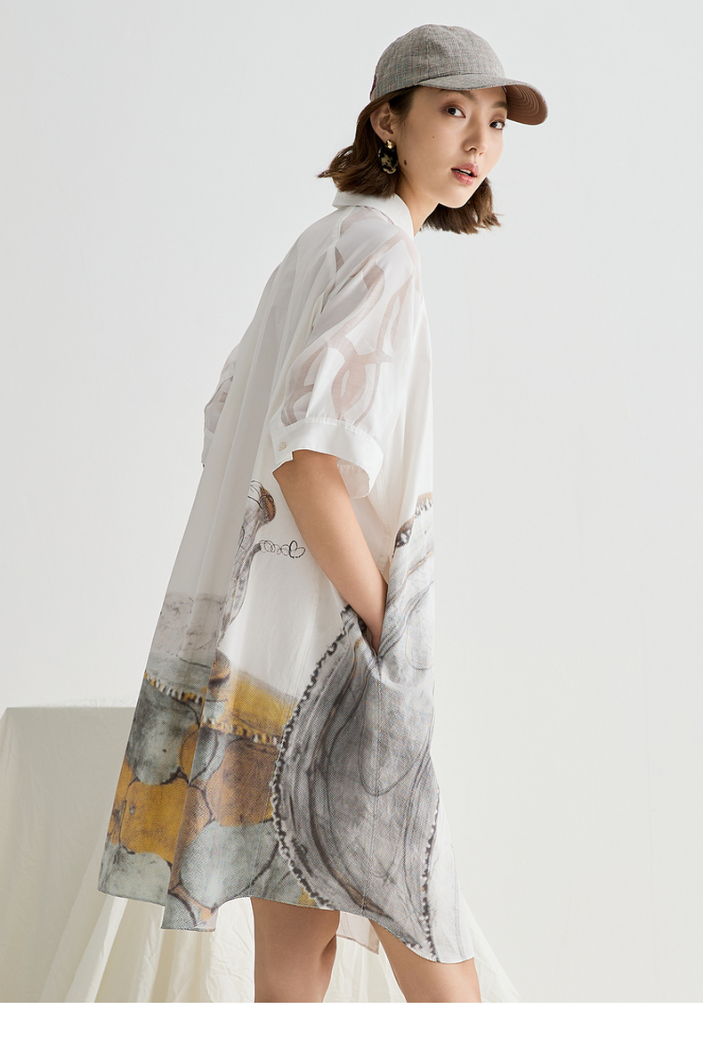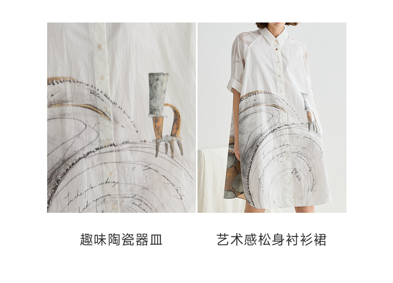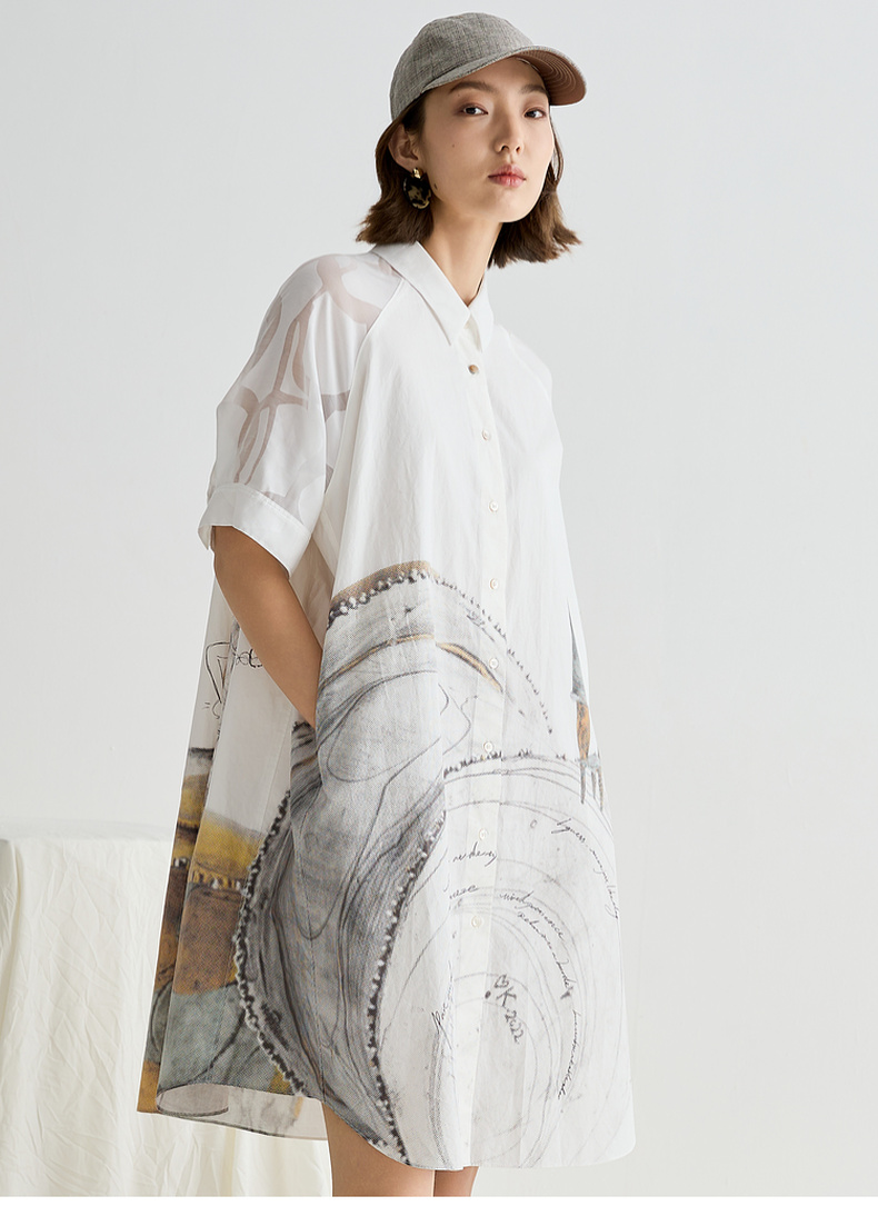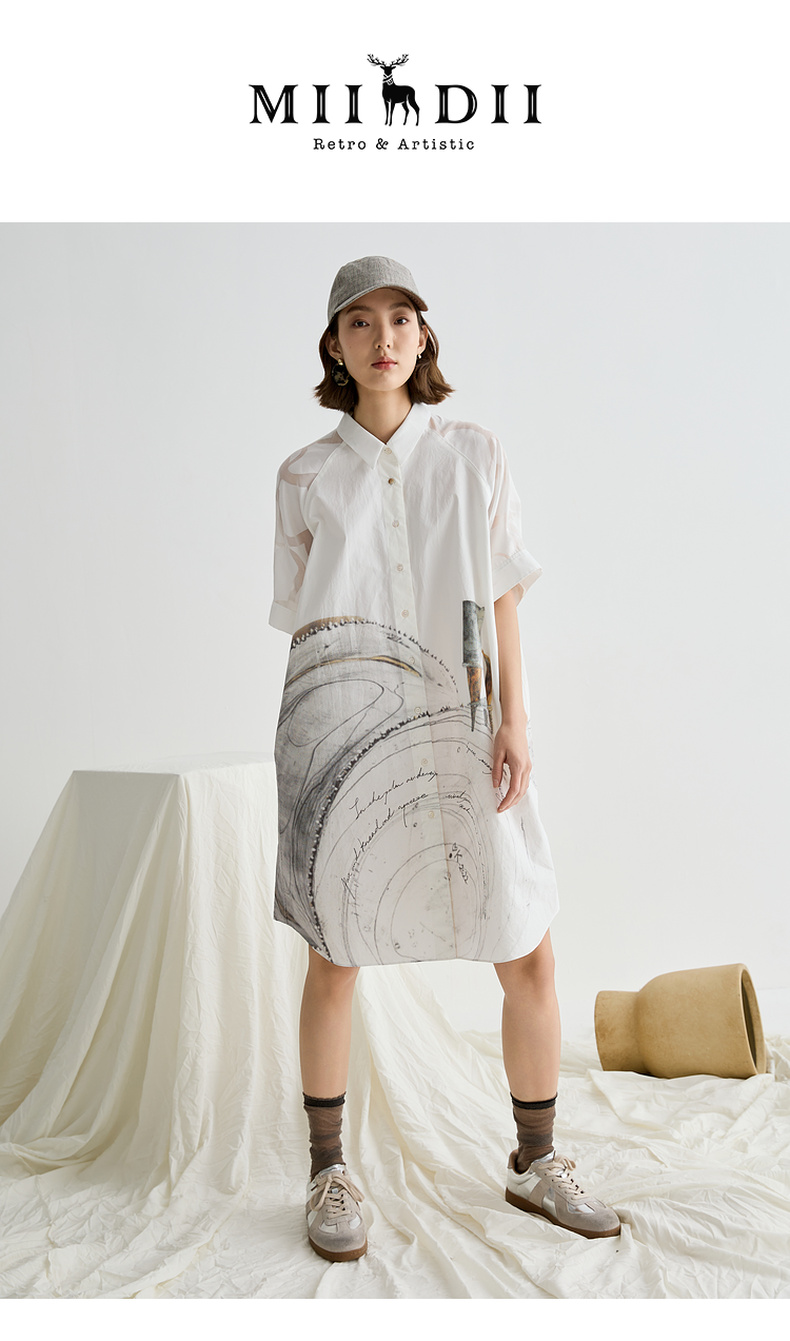 谜底连衣裙分袖女2025夏季新品复古风通勤宽松H型衬衫裙252ML0634