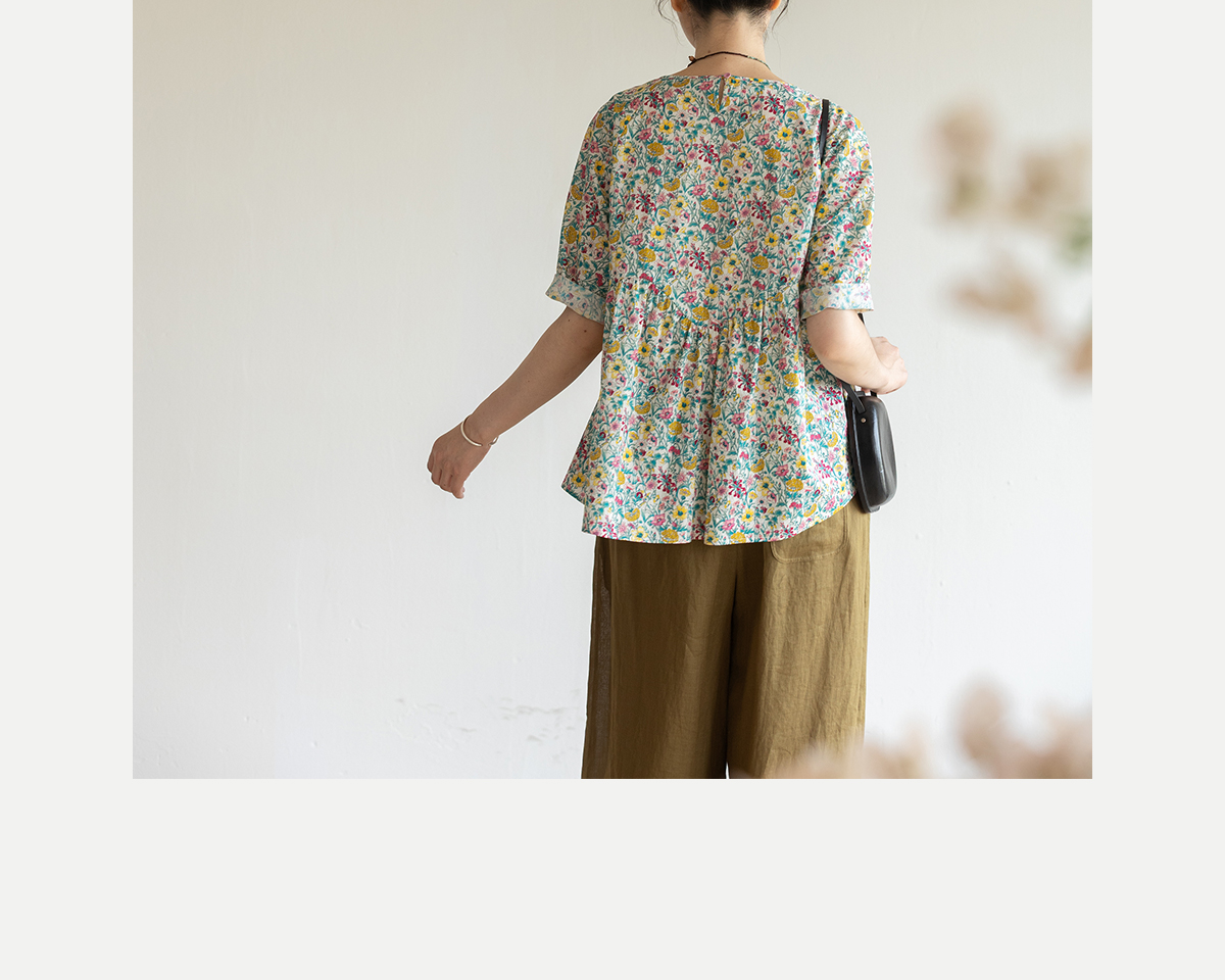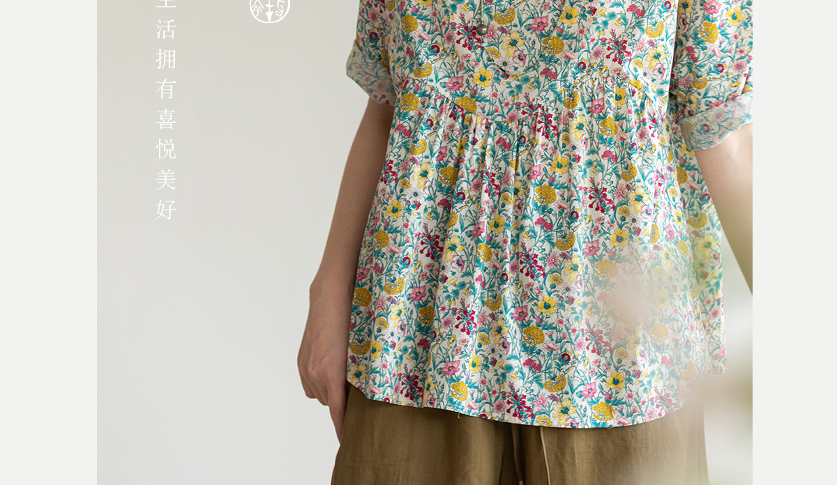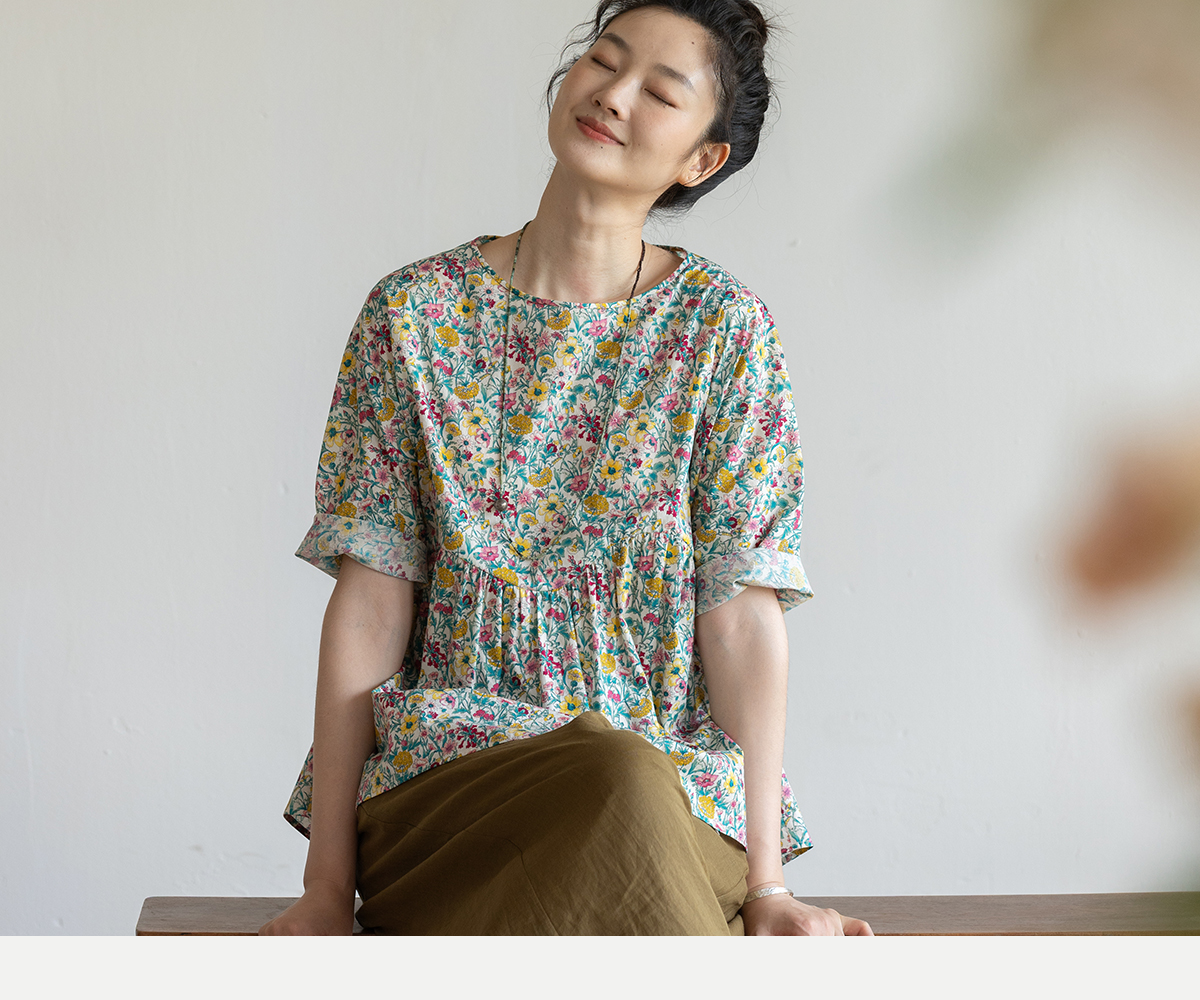 牧衣游原创 小碎花纯棉套头衫轻薄慵懒随性设计感文艺上衣 知云意