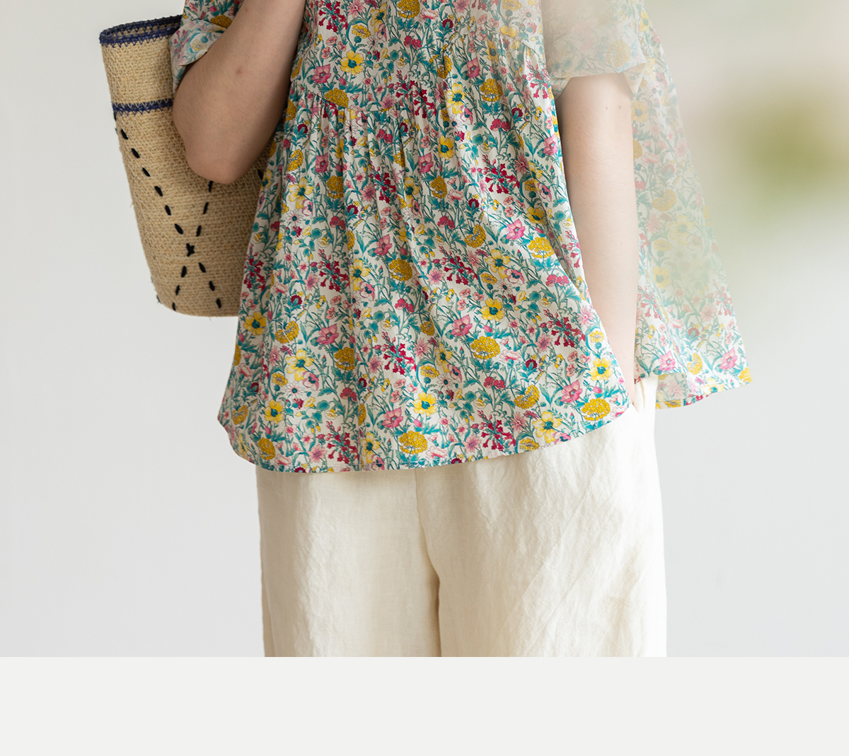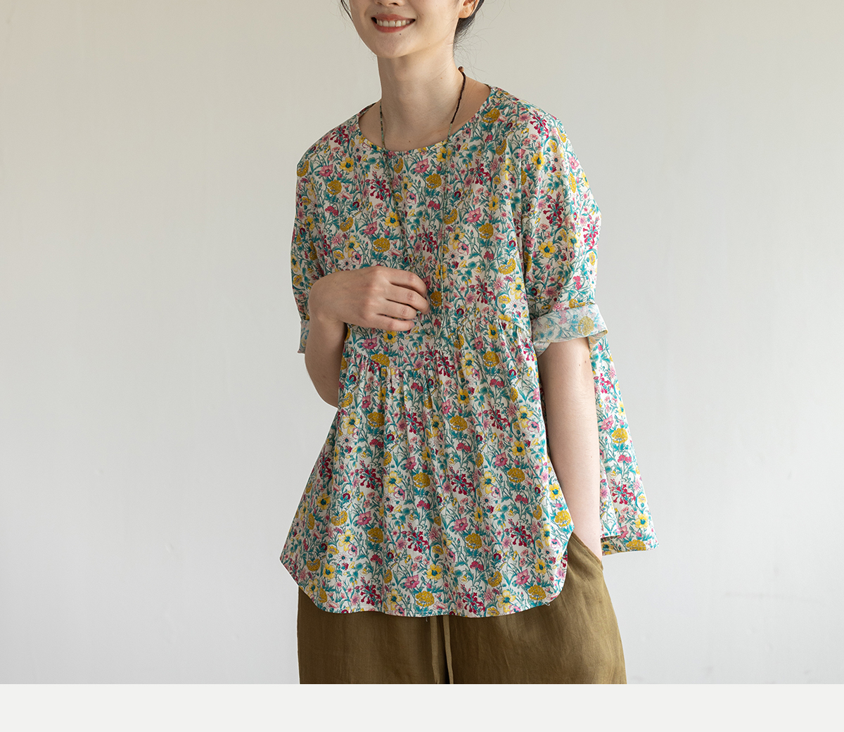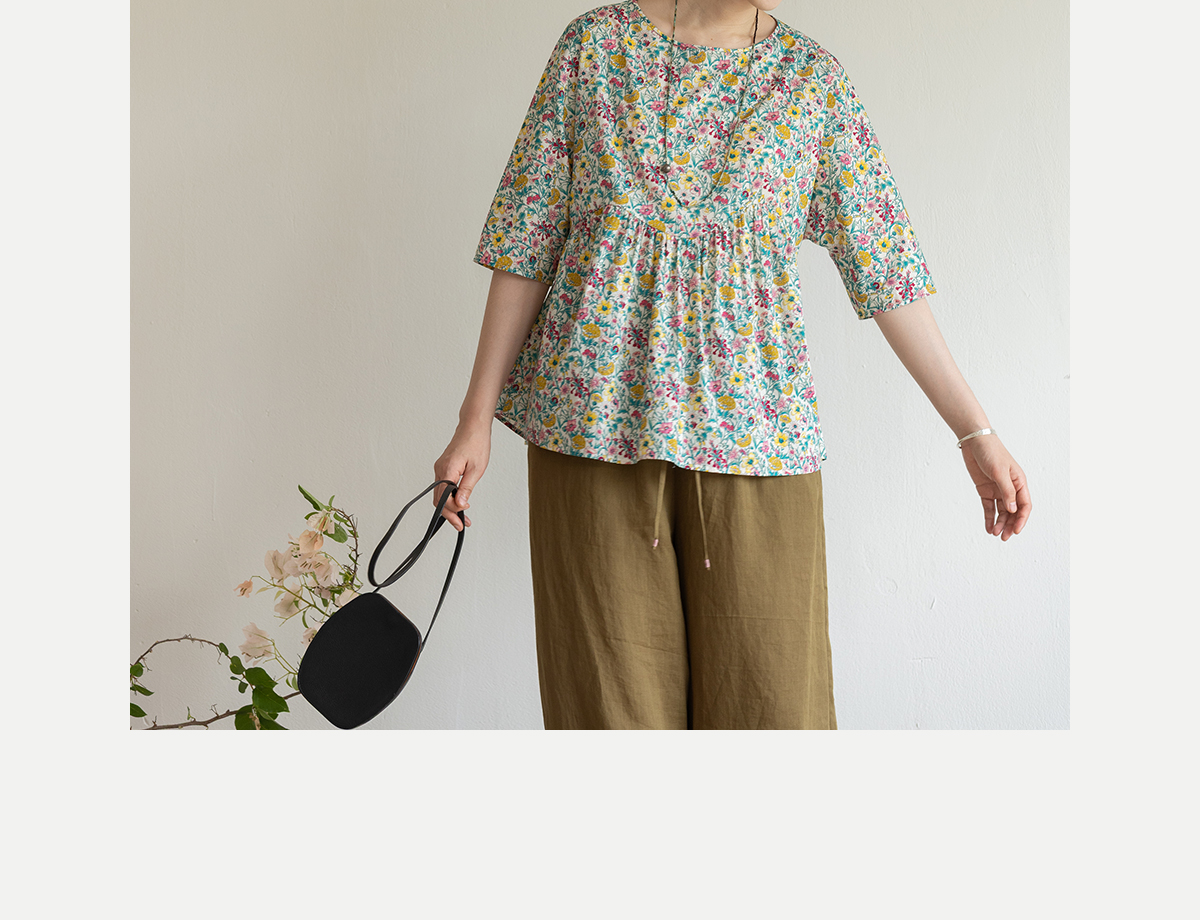 牧衣游原创 小碎花纯棉套头衫轻薄慵懒随性设计感文艺上衣 知云意