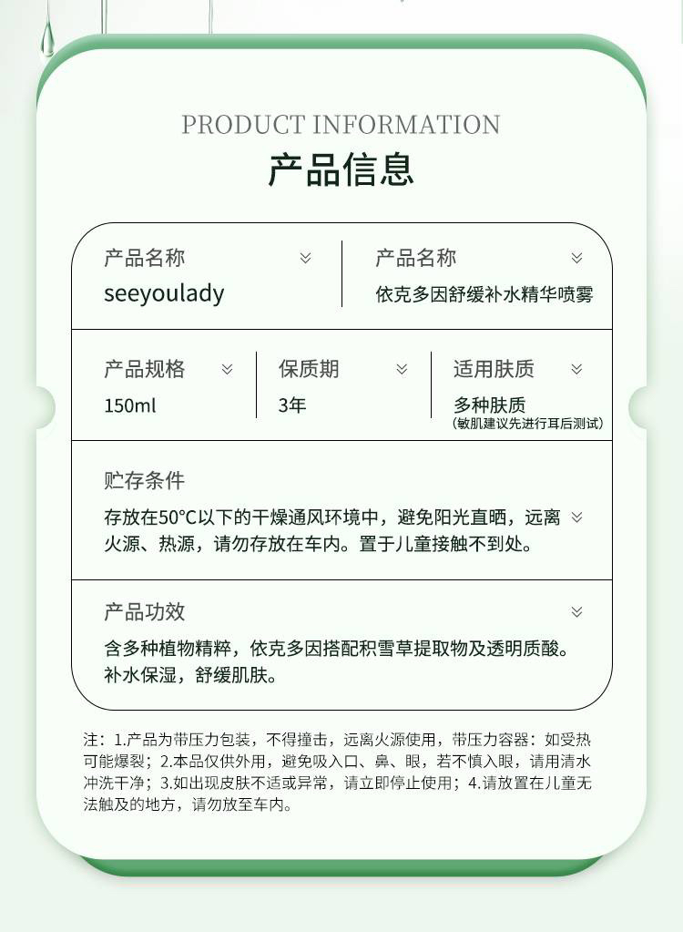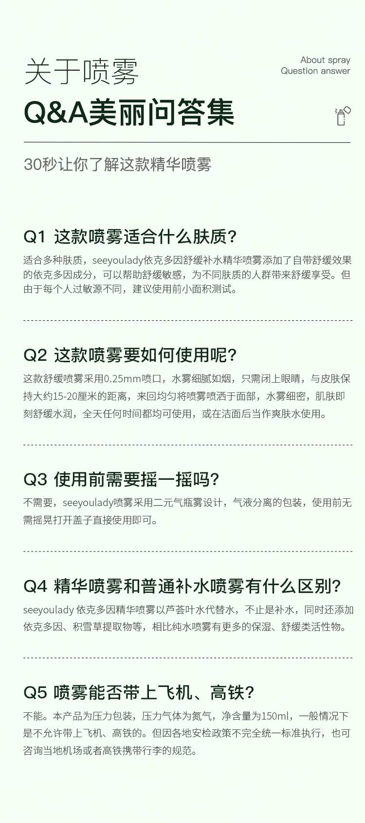 SeeyouLady微米级雾感依克多因舒缓精华喷雾150ml