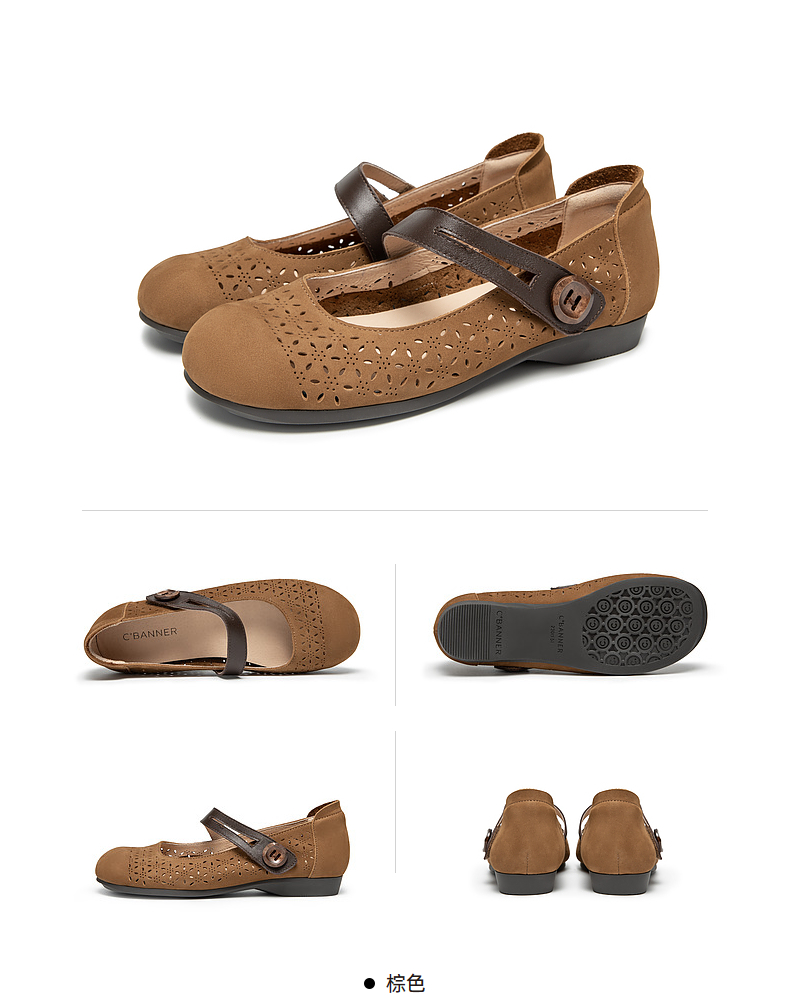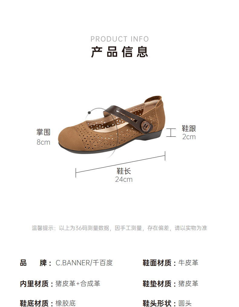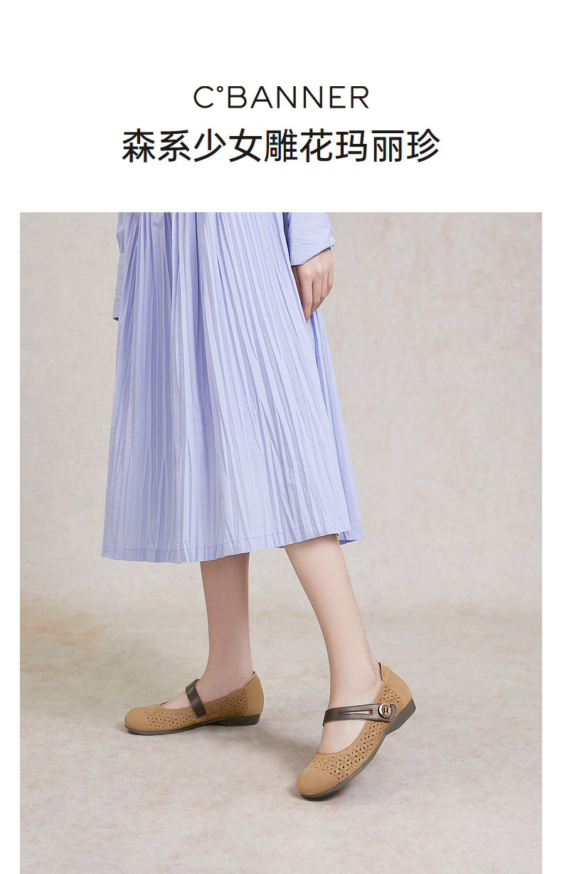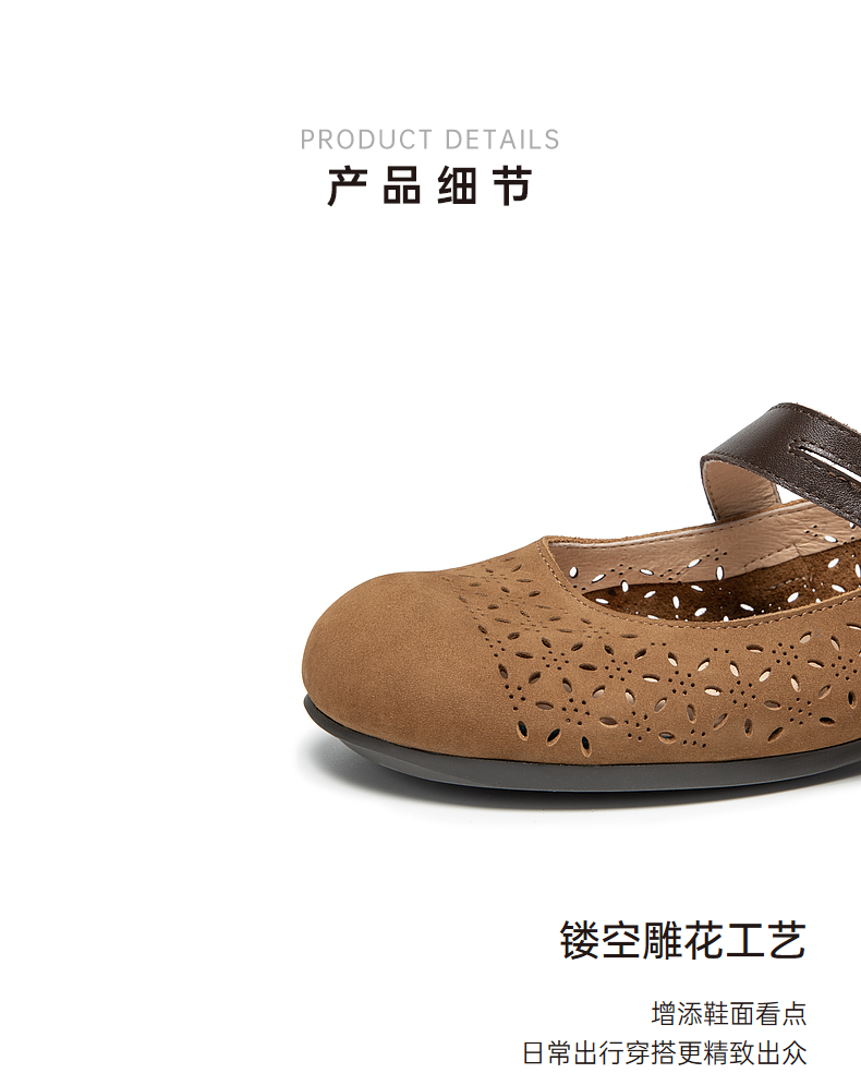 千百度镂空雕花玛丽珍春季新中式单鞋女平底鞋A24180312