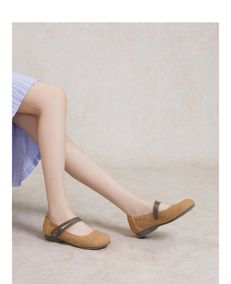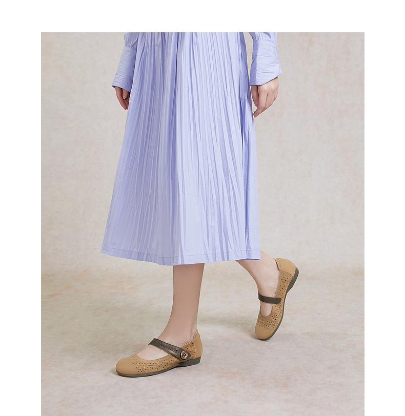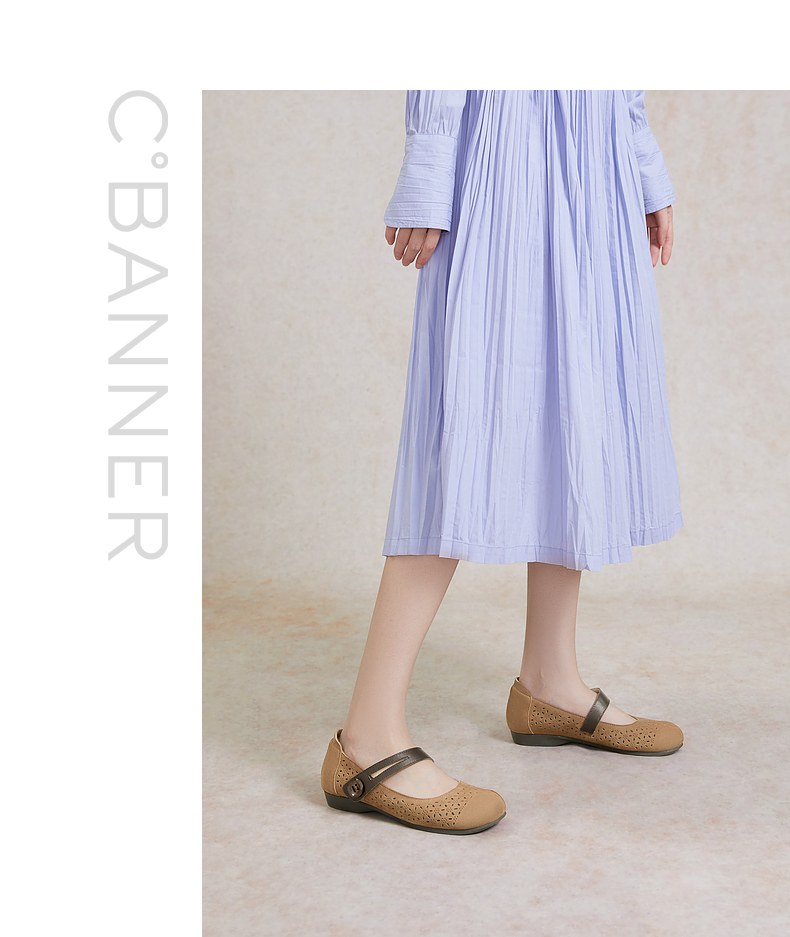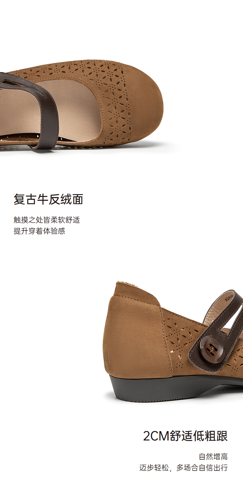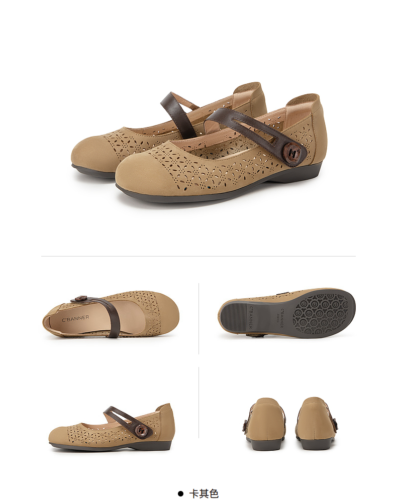 千百度镂空雕花玛丽珍春季新中式单鞋女平底鞋A24180312
