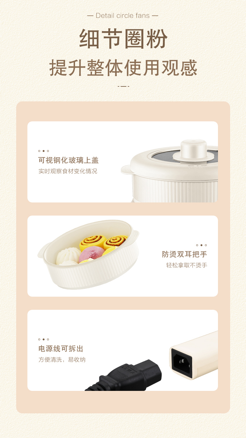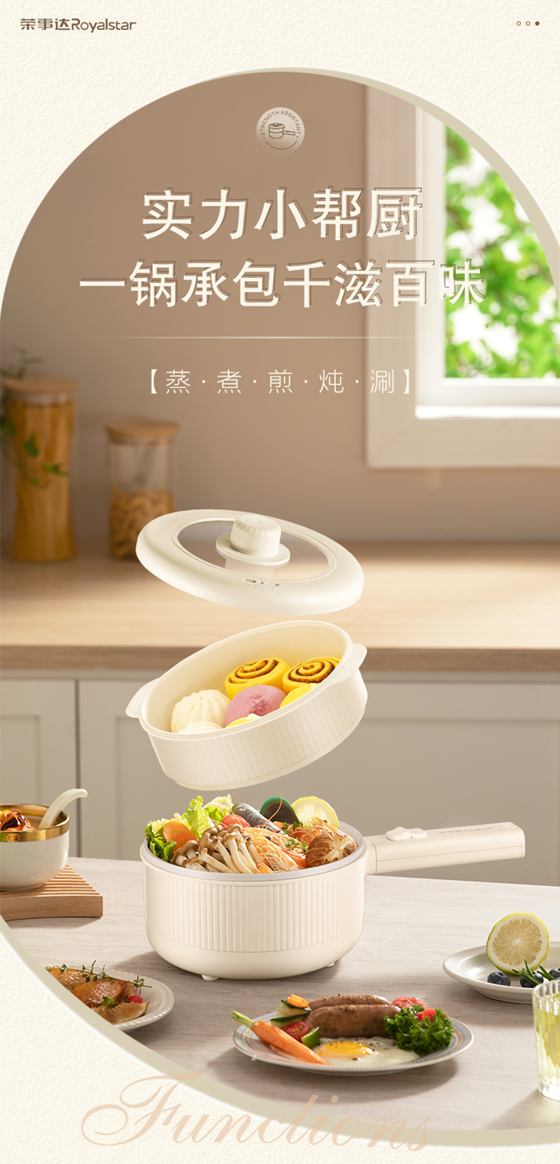 荣事达电蒸锅 电煮锅 电火锅 多功能锅家用电锅蒸包子锅电热锅10L升三层大容量多用途锅ZG081B(SGJW)