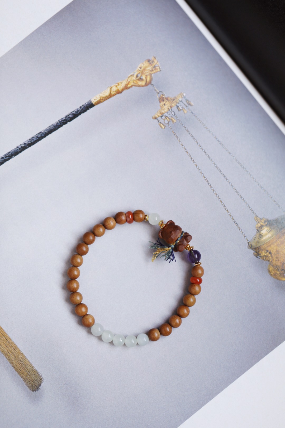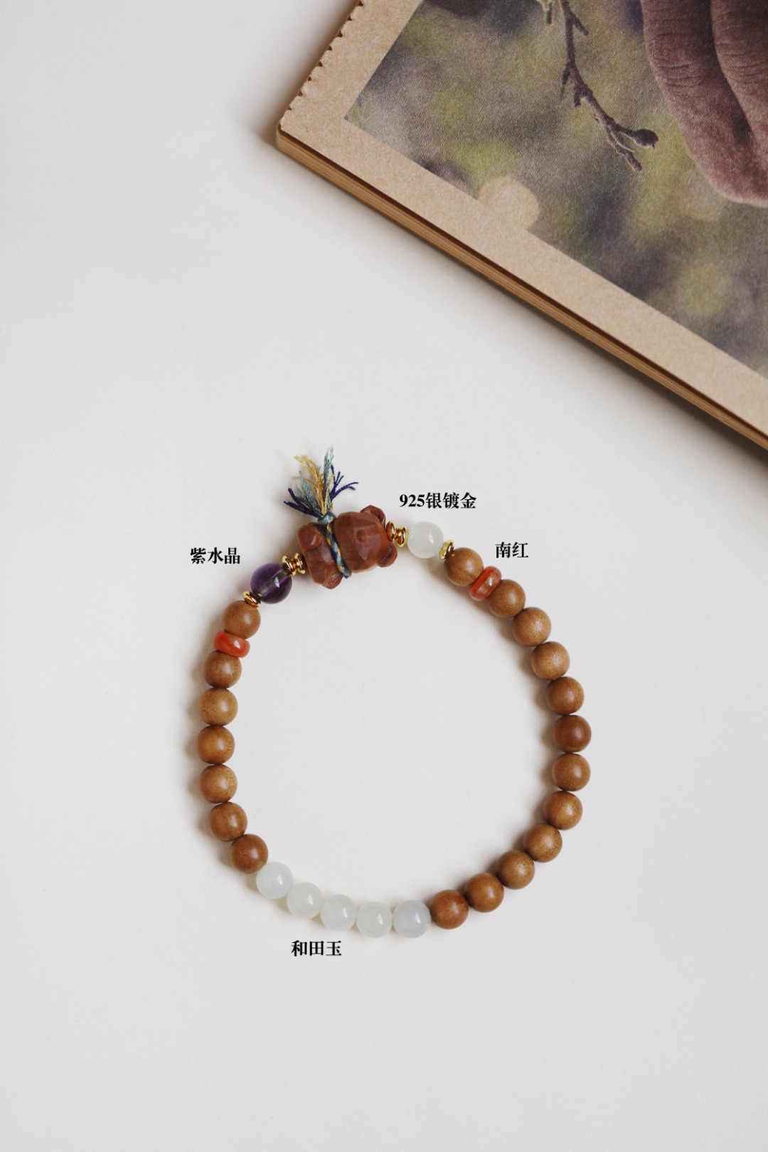 配件:紫水晶、和田玉、925银镀金、南红