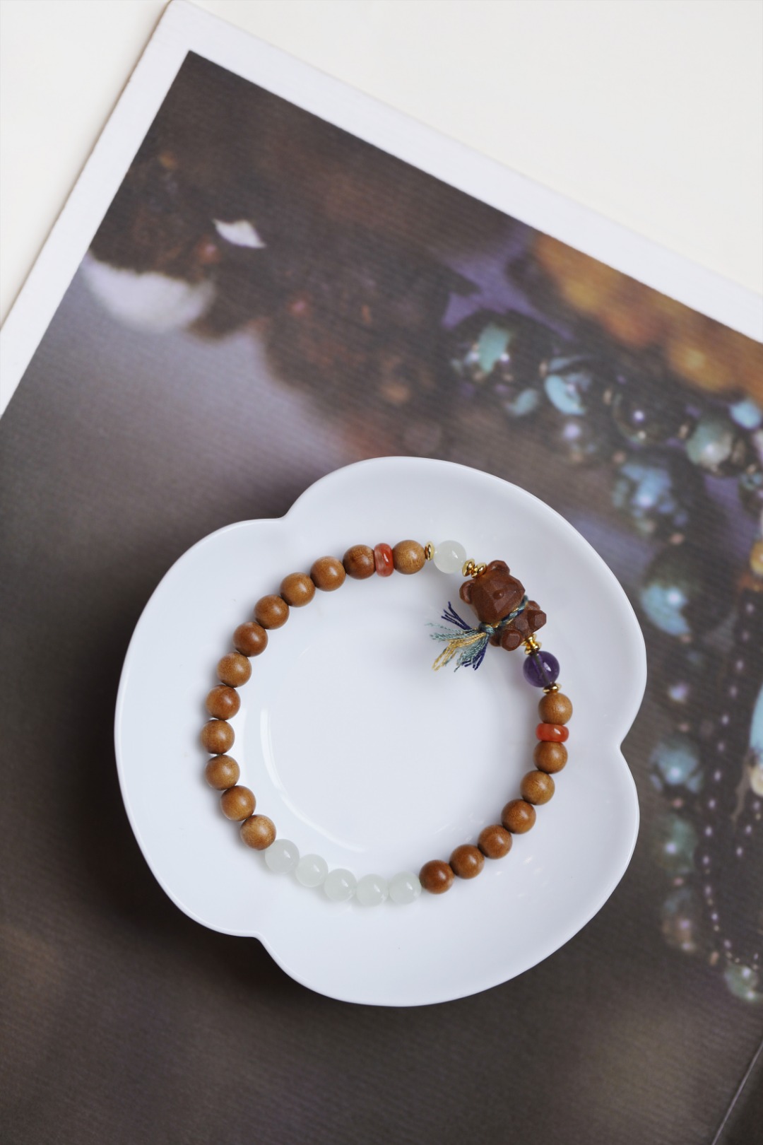 搭饰清晰色调珠饰,点缀亮色,