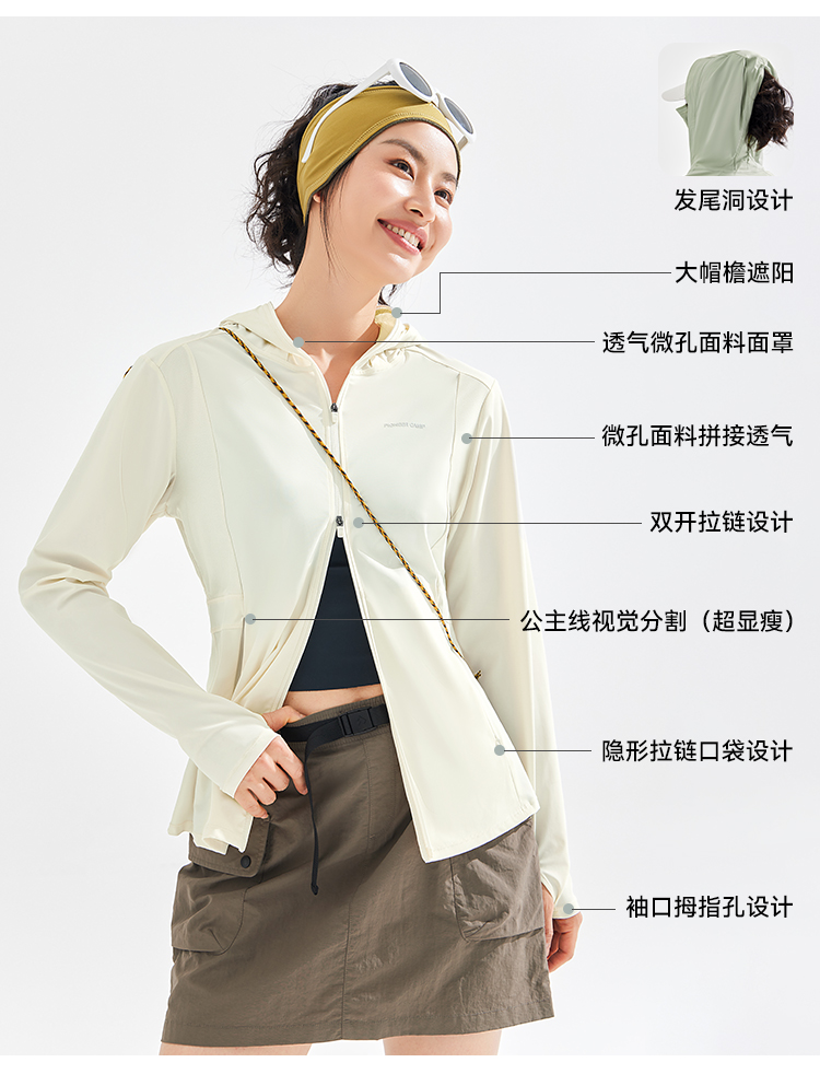 【冰肌】拓路者户外防晒衣女2025年夏季冰丝瑜伽服凉感连帽防晒服
