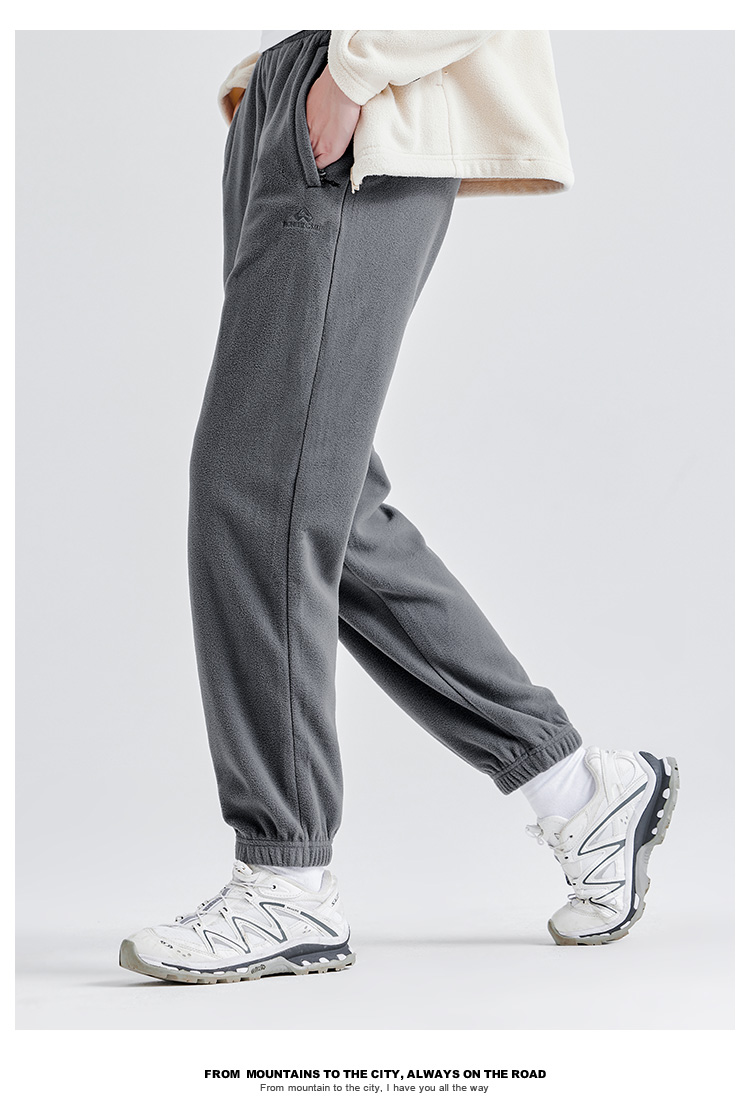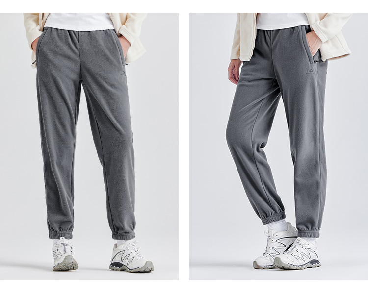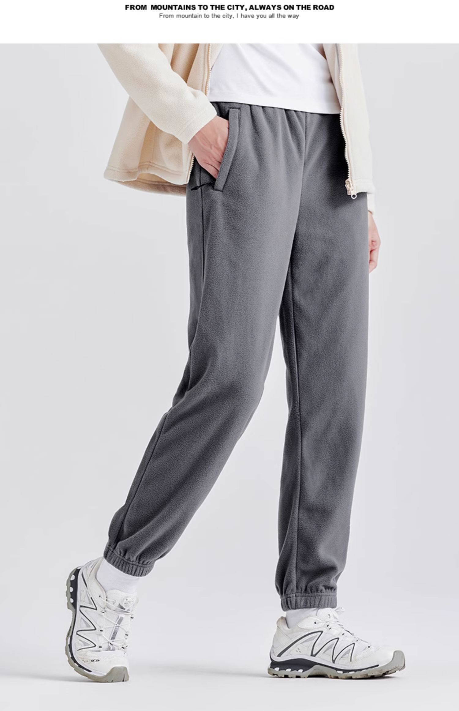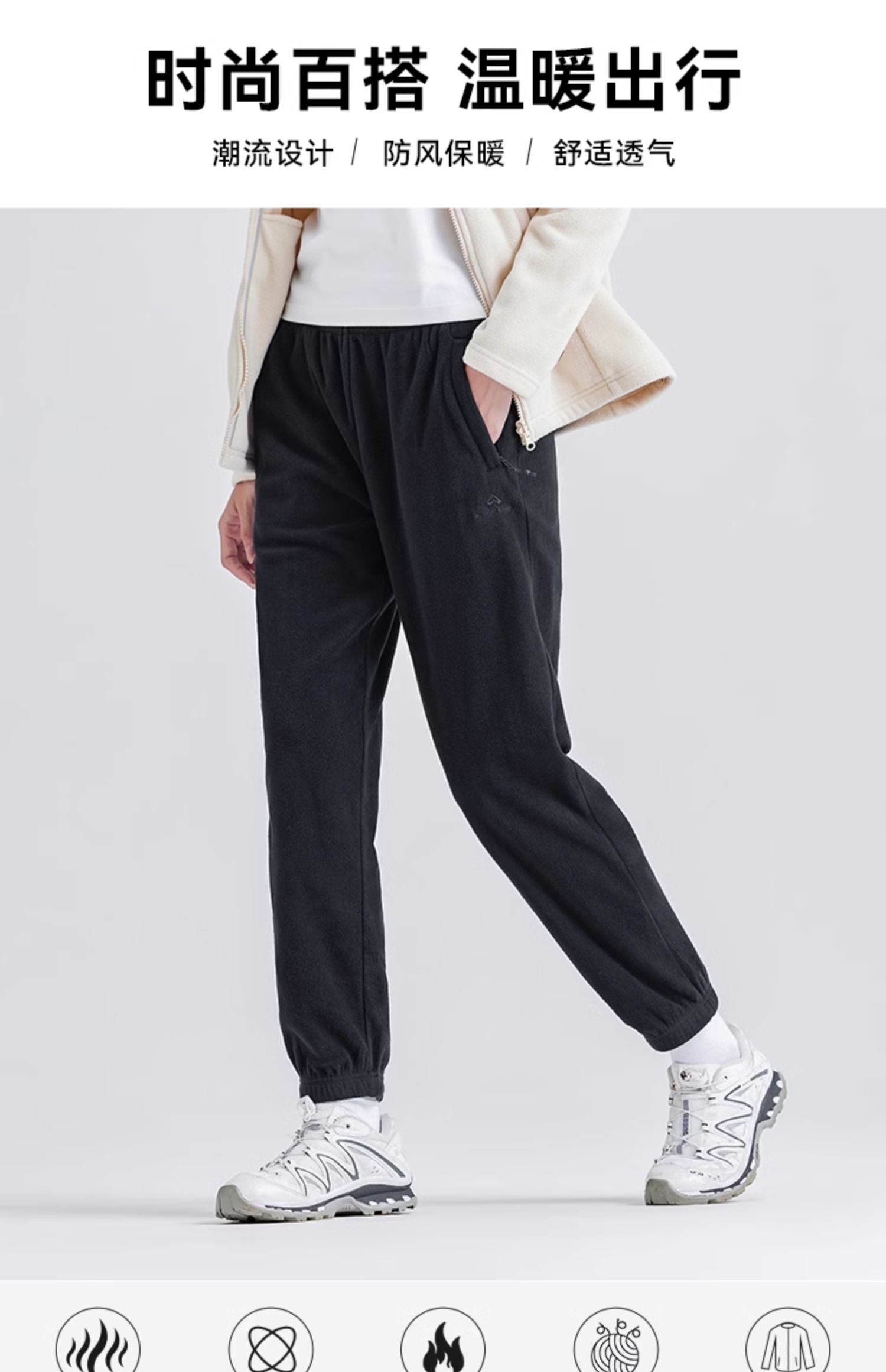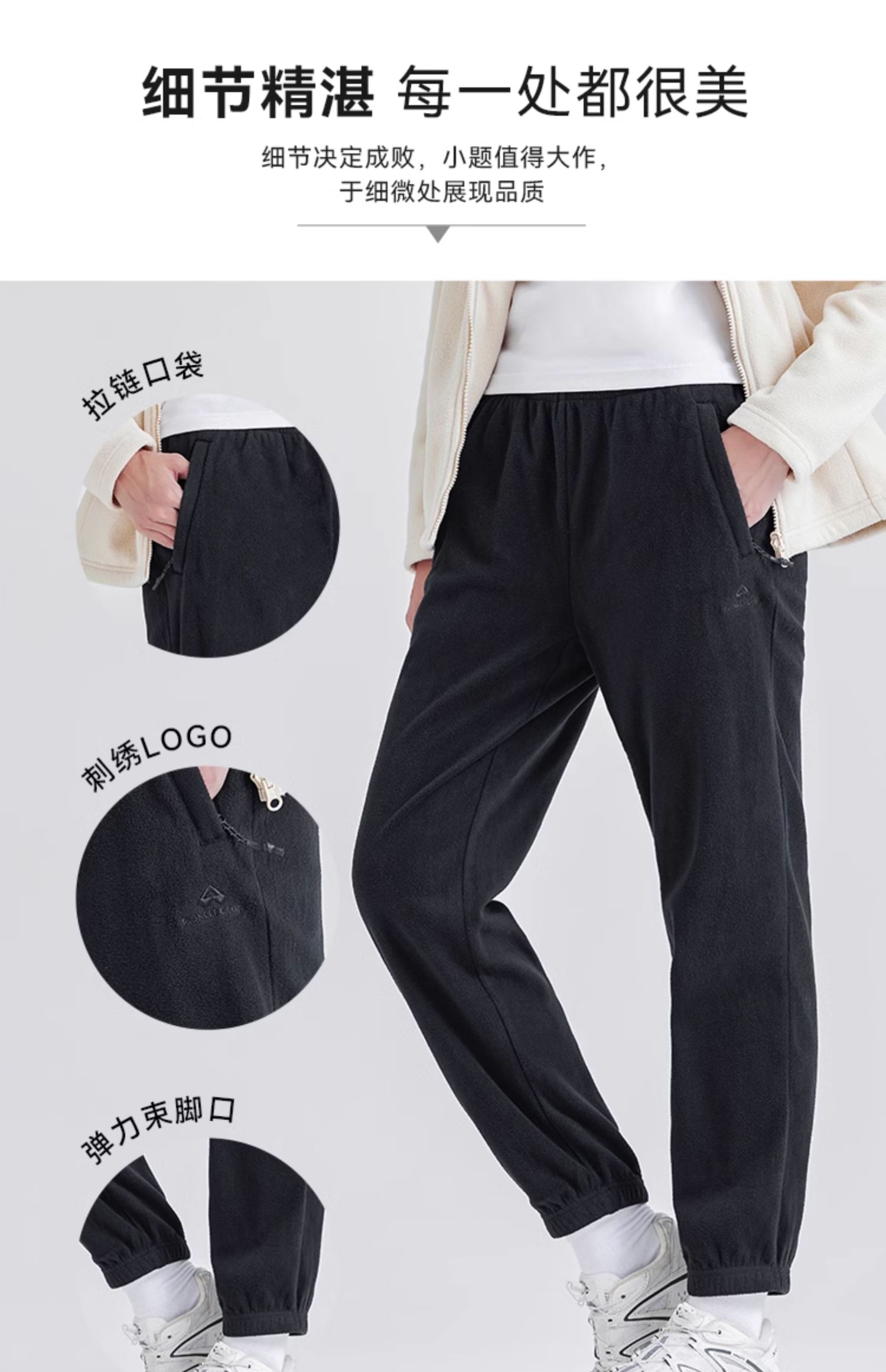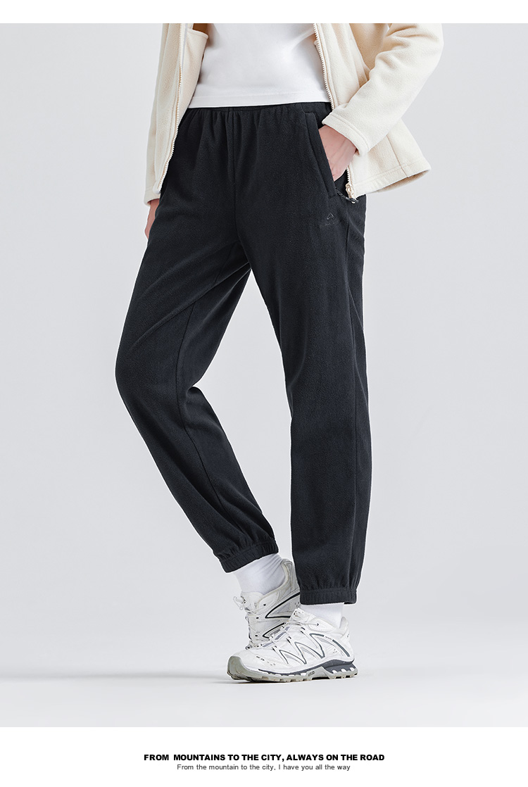 拓路者秋冬新款户外抓绒裤女加绒保暖防风运动休闲裤弹力束脚卫裤
