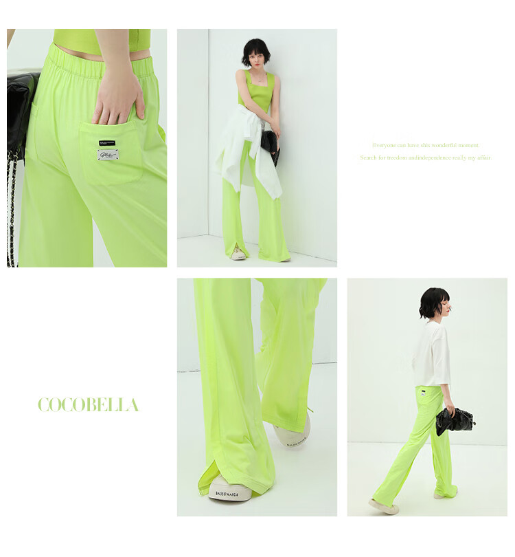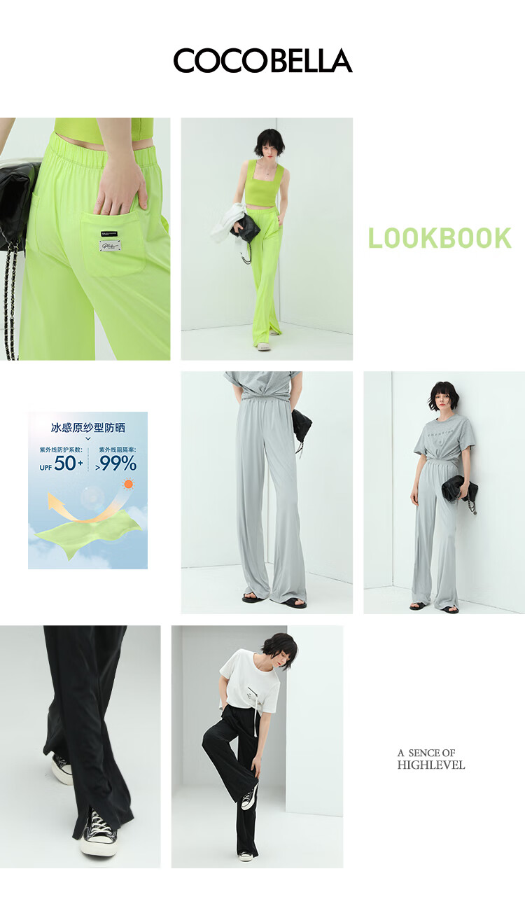 【专属秒杀】COCOBELLA多色凉感原纱型防晒裤女宽松休闲直筒开叉裤PA620