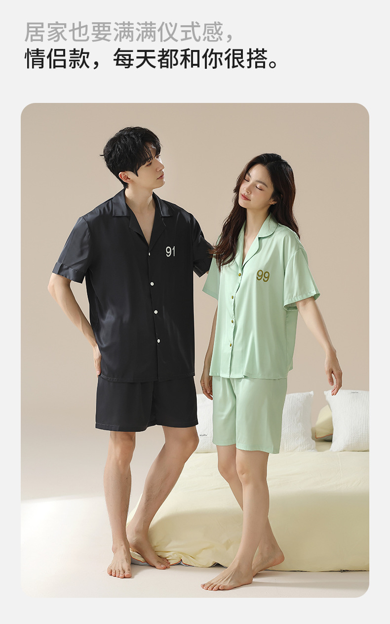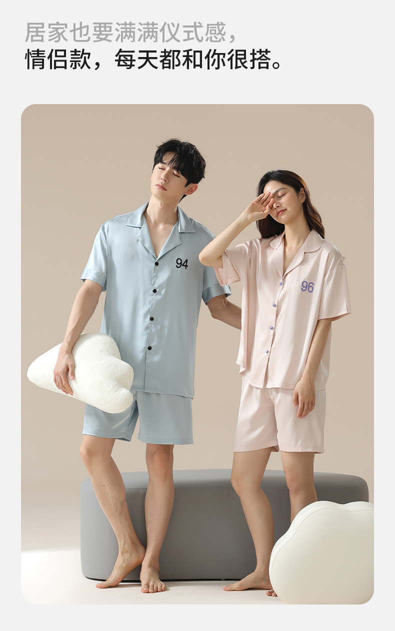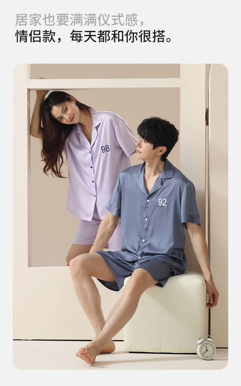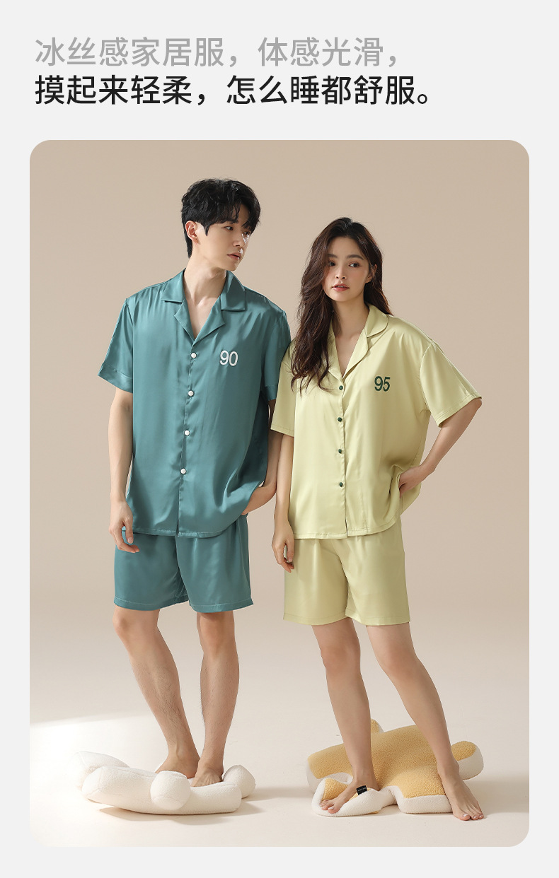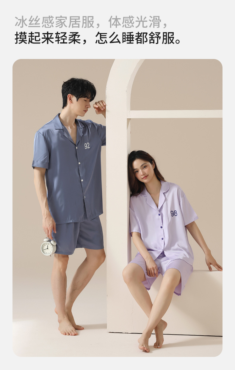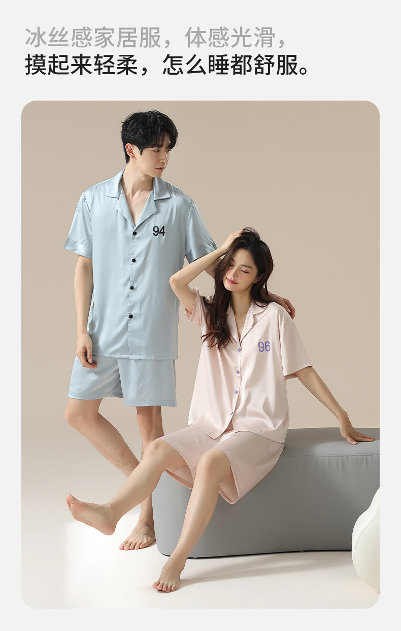 【凉感丝滑冰雪丝】自然醒爱琴海情侣睡衣夏季薄款短袖冰雪丝凉感套装女宽松休闲抗菌男士家居服开衫JLM