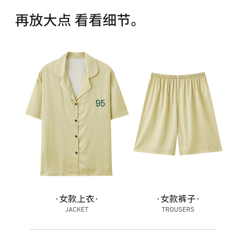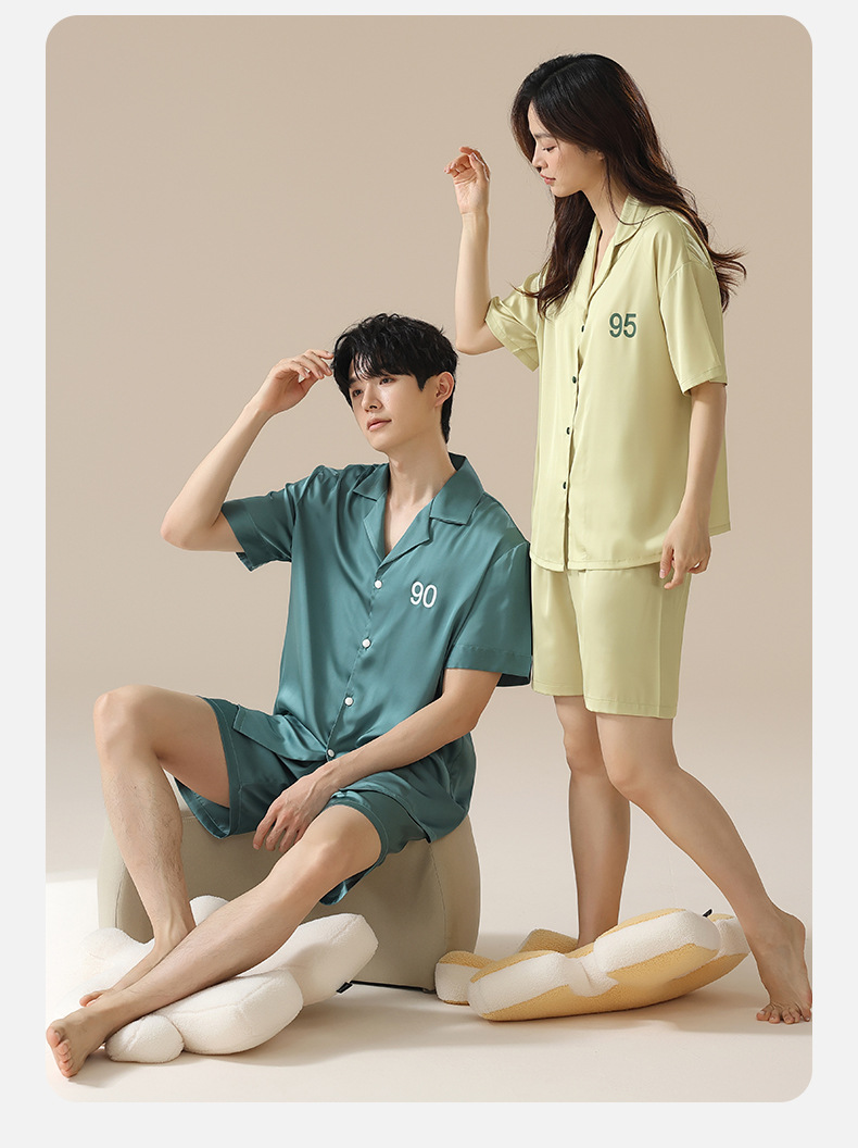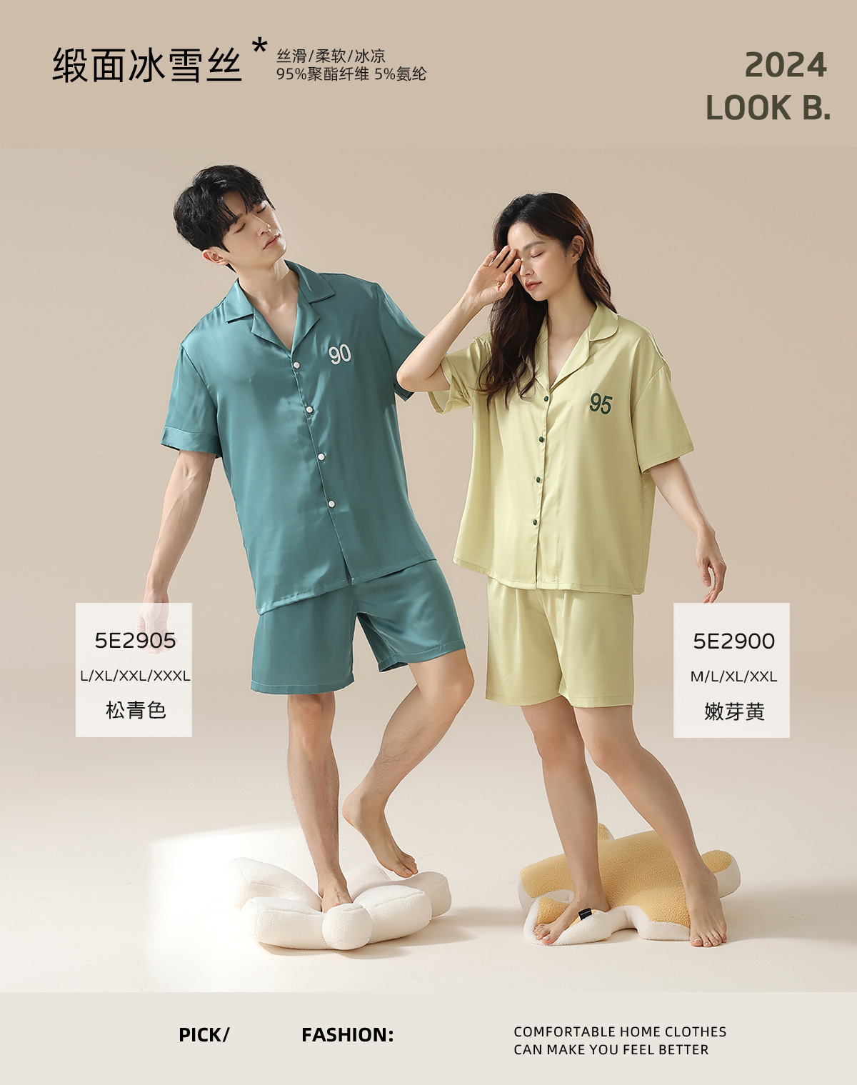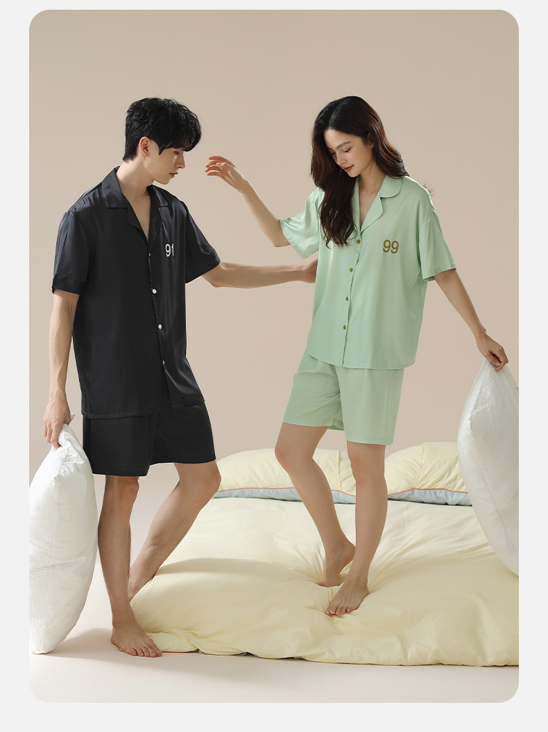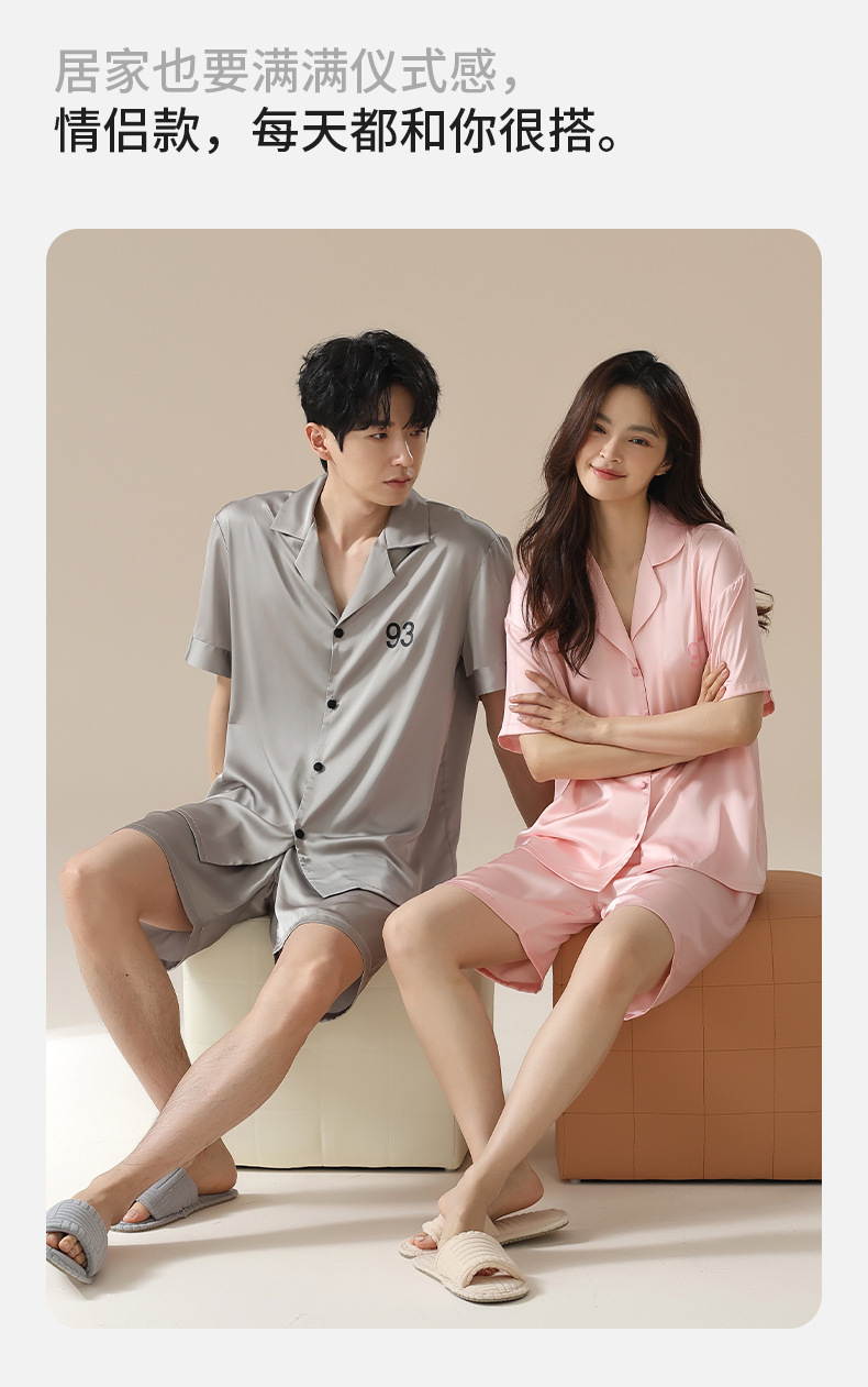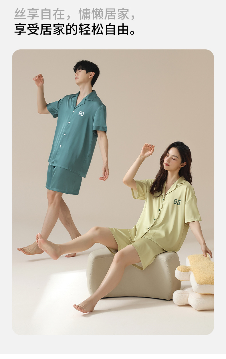 【凉感丝滑冰雪丝】自然醒爱琴海情侣睡衣夏季薄款短袖冰雪丝凉感套装女宽松休闲抗菌男士家居服开衫JLM