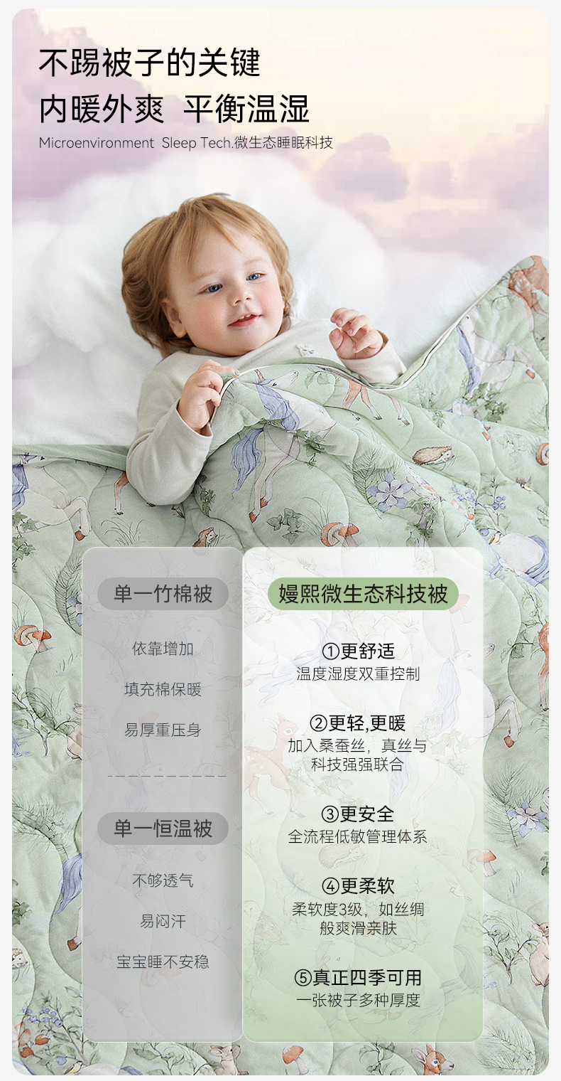 【宝宝安睡】嫚熙婴儿被子秋冬低敏蚕丝竹棉被四季通用