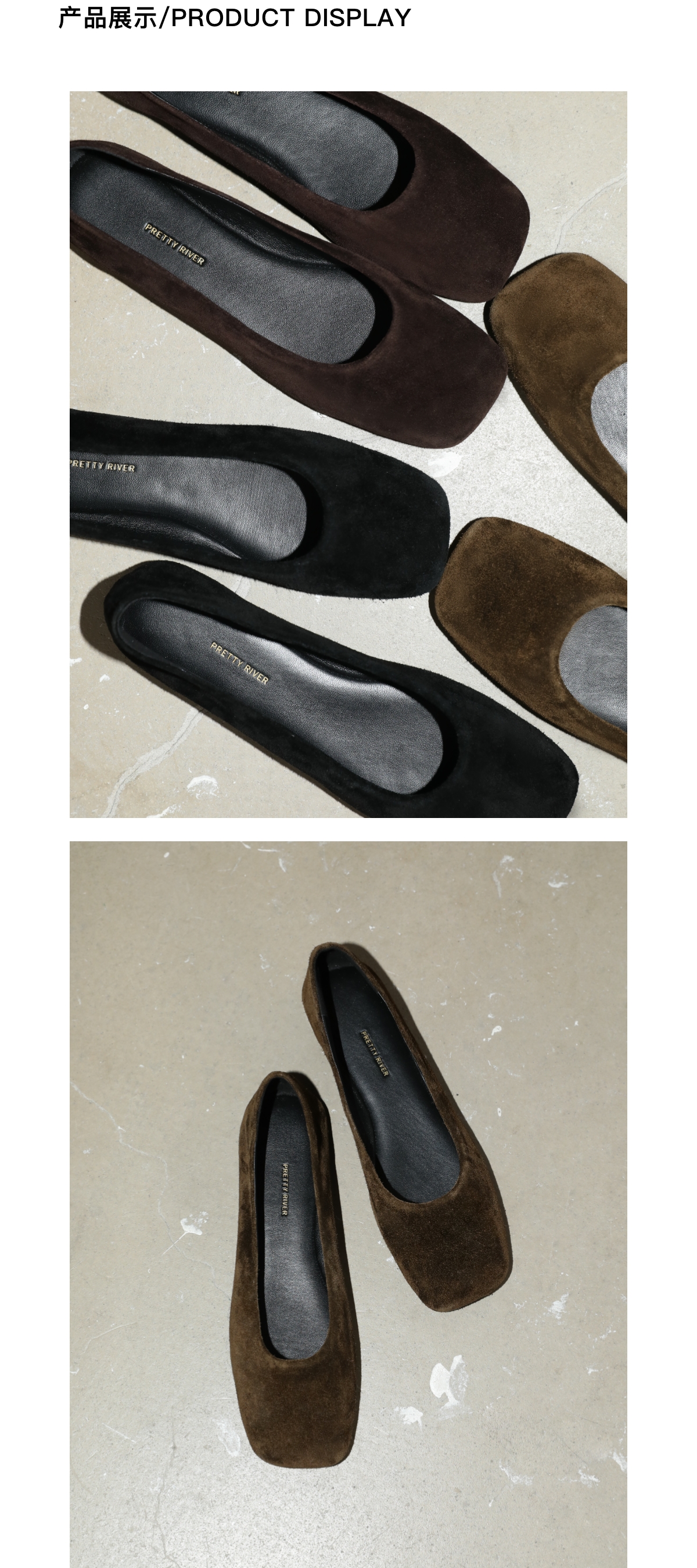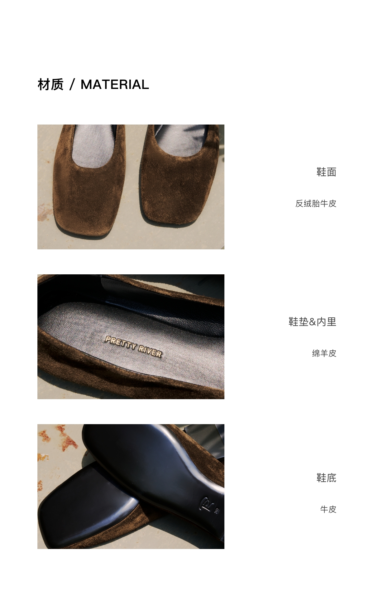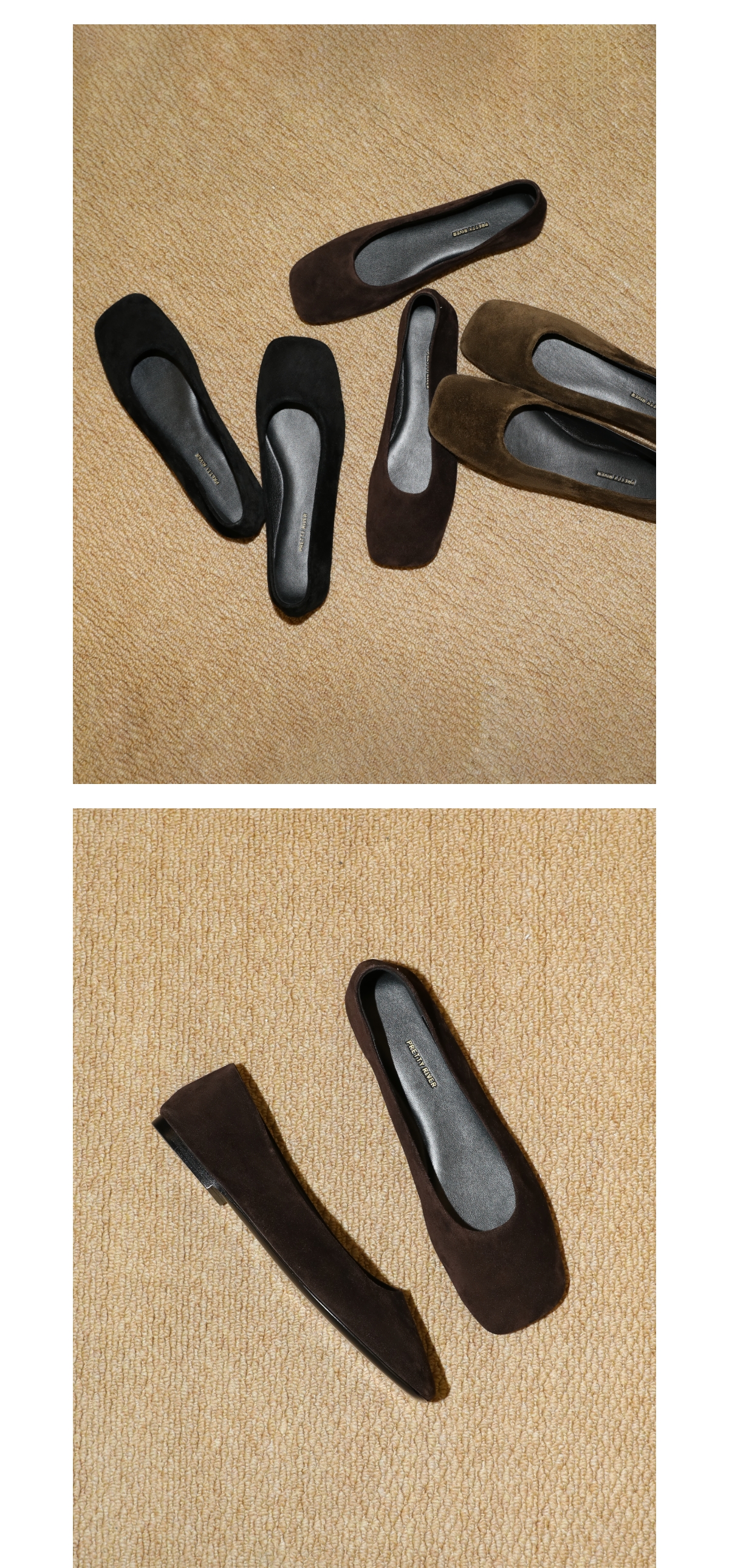 PRETTY RIVER翻毛皮平底芭蕾鞋