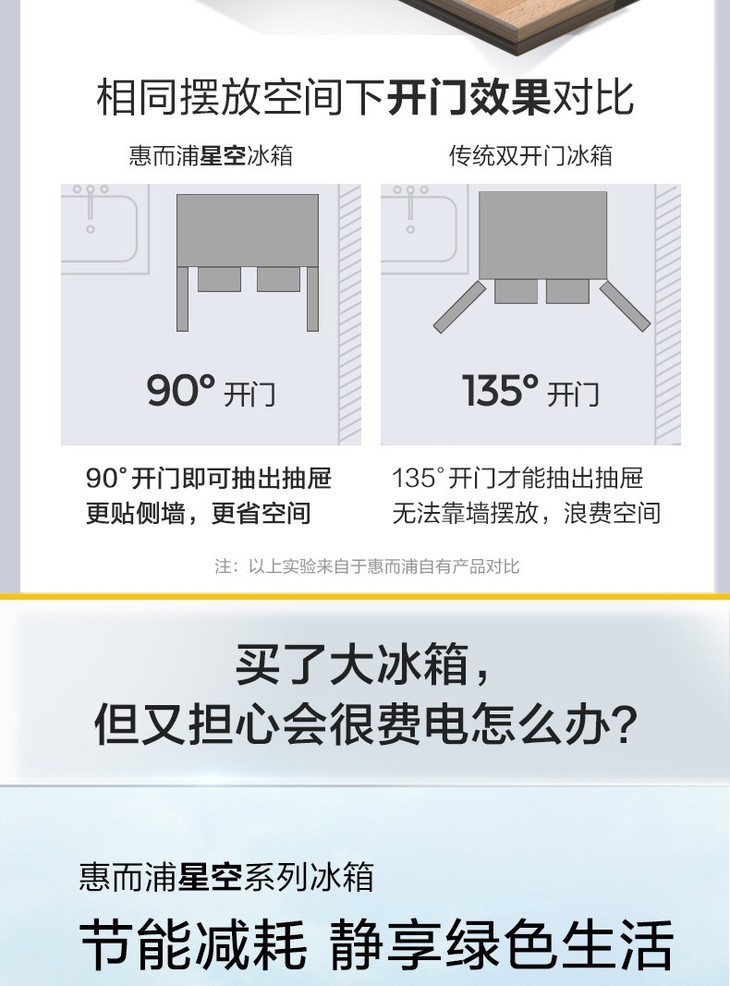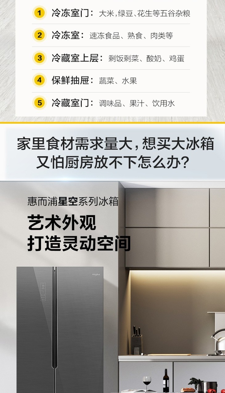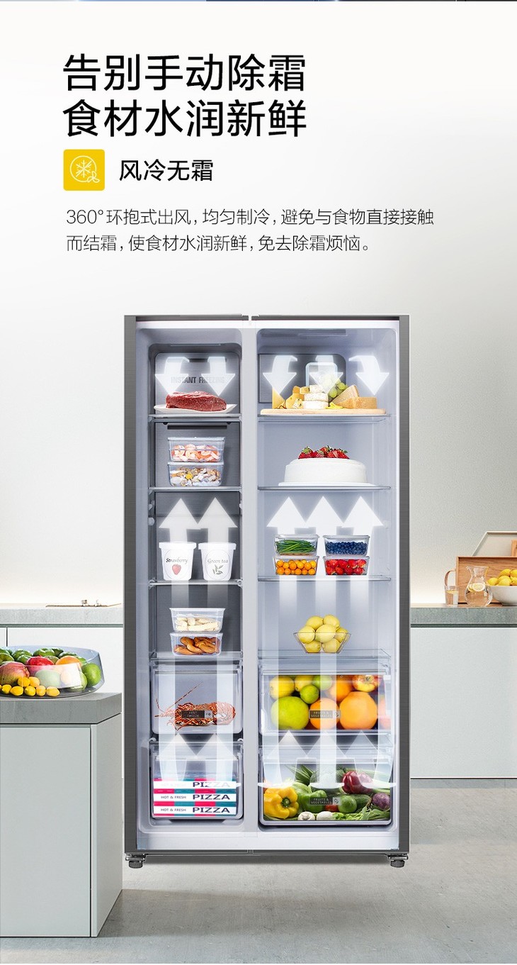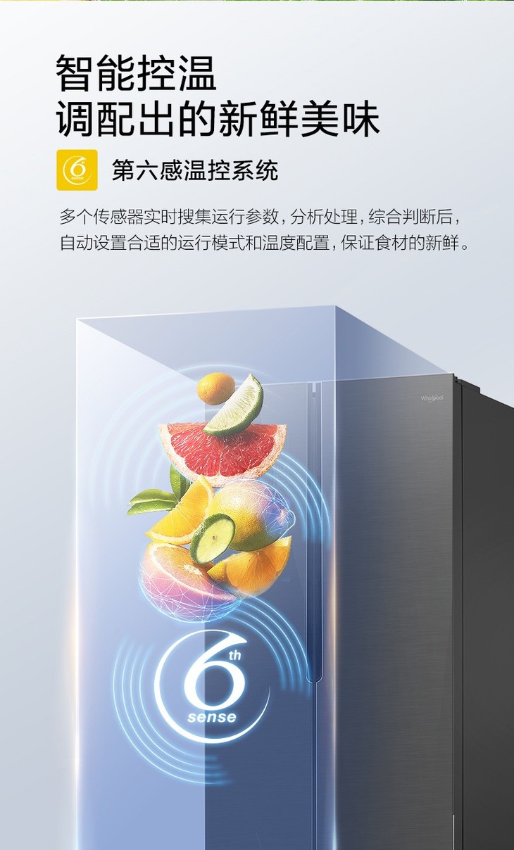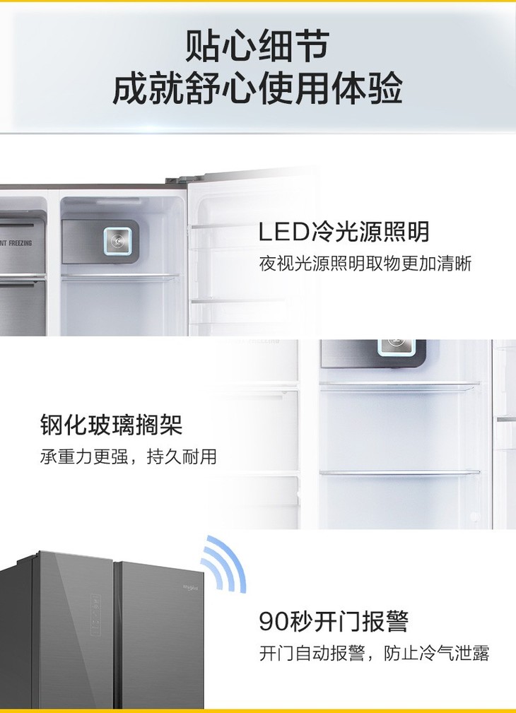 惠而浦冰箱对开门冰箱风冷无霜542升大容量双变频钢化玻璃门分区储藏家用BCD-542WDGBWS