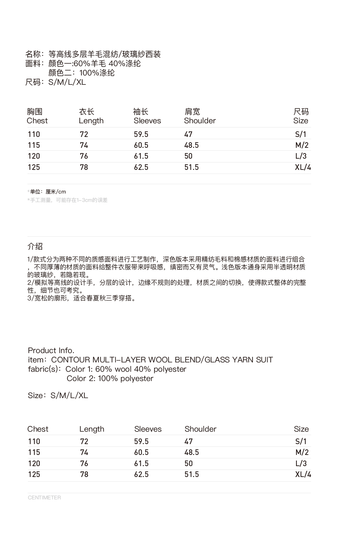 ATTEMPT SS21 等高线多层羊毛混纺/玻璃纱西装潮牌原创休闲西服