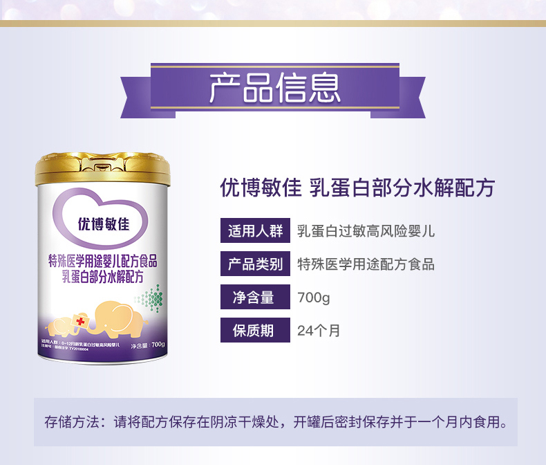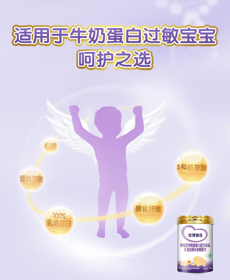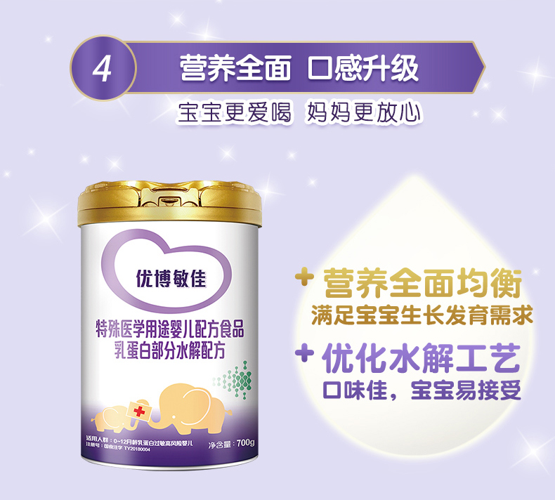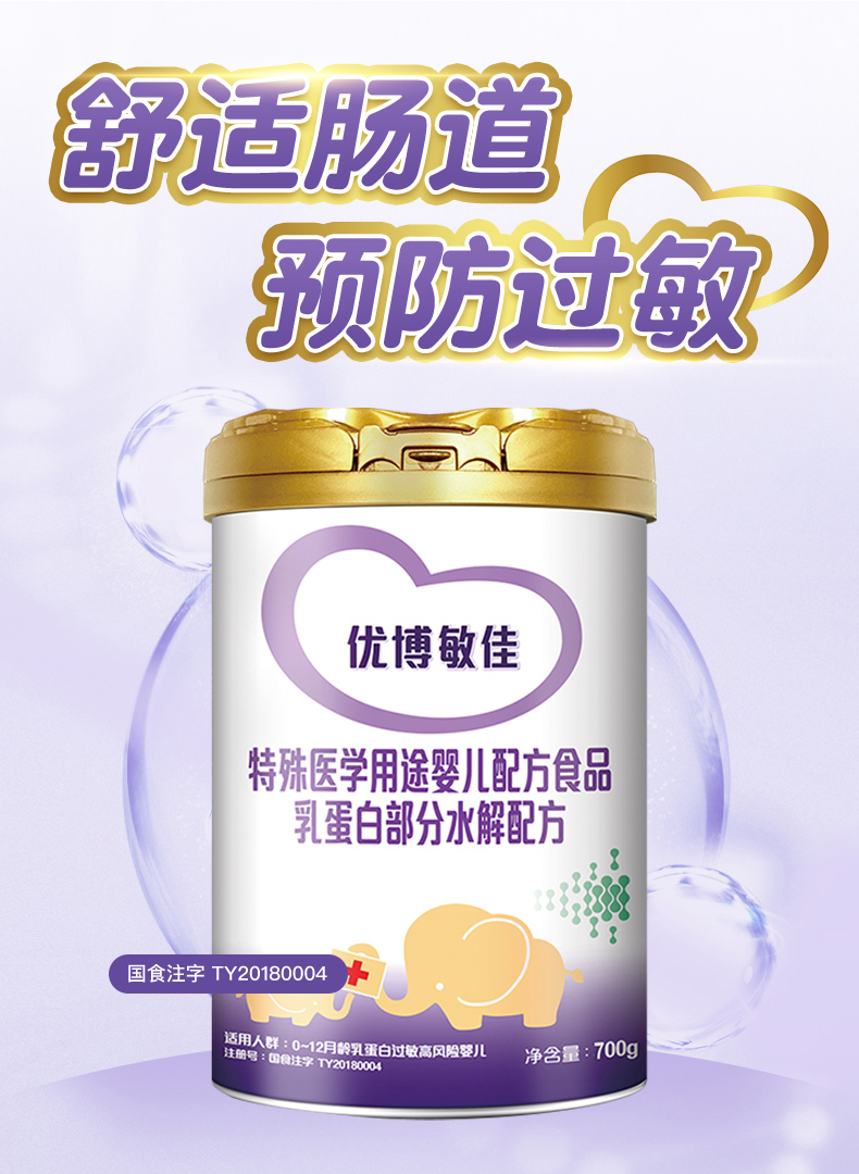 【700g】圣元优博敏佳适度水解奶粉配方婴幼儿乳蛋白部分半水解奶粉,700g