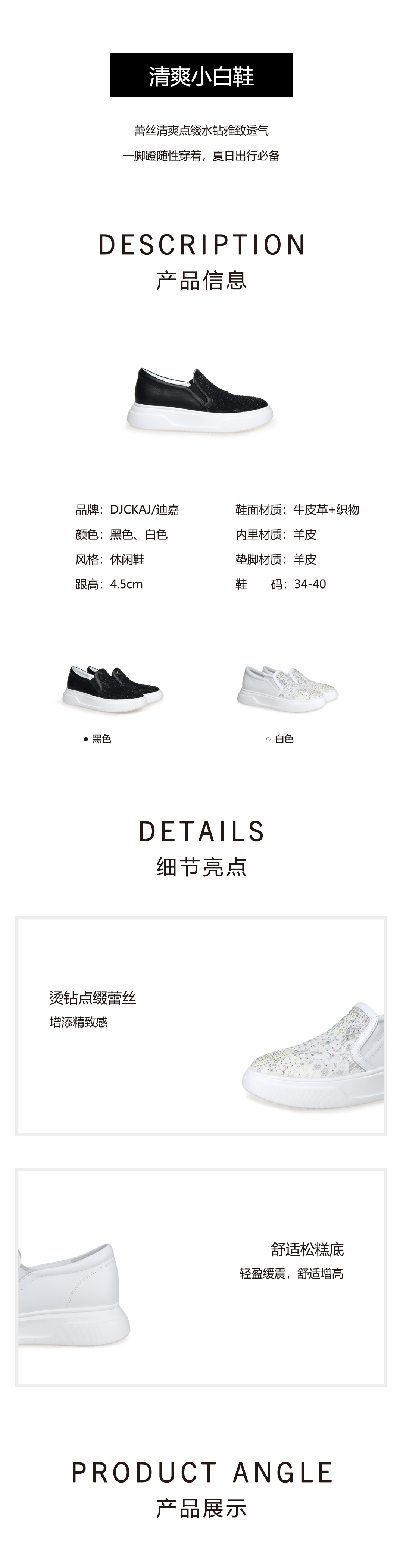 豪麟名鞋奥莱迪嘉女鞋时尚休闲鞋牛皮革+织物DJHJA51WX051白色 原价1960元
