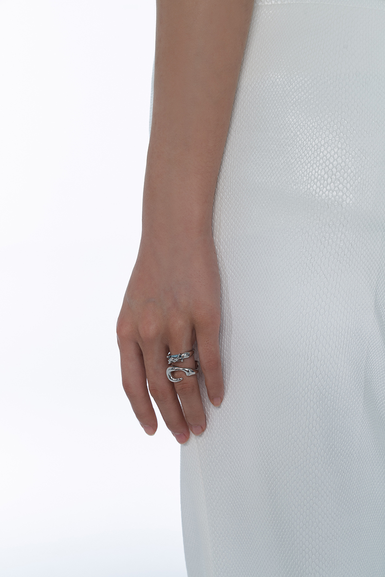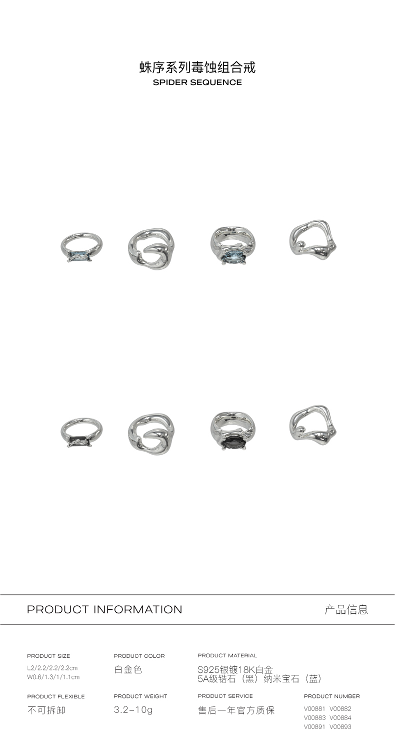 KVK戒指女夏925银轻奢小众设计感简约冷淡风毒蚀组合戒指套装潮