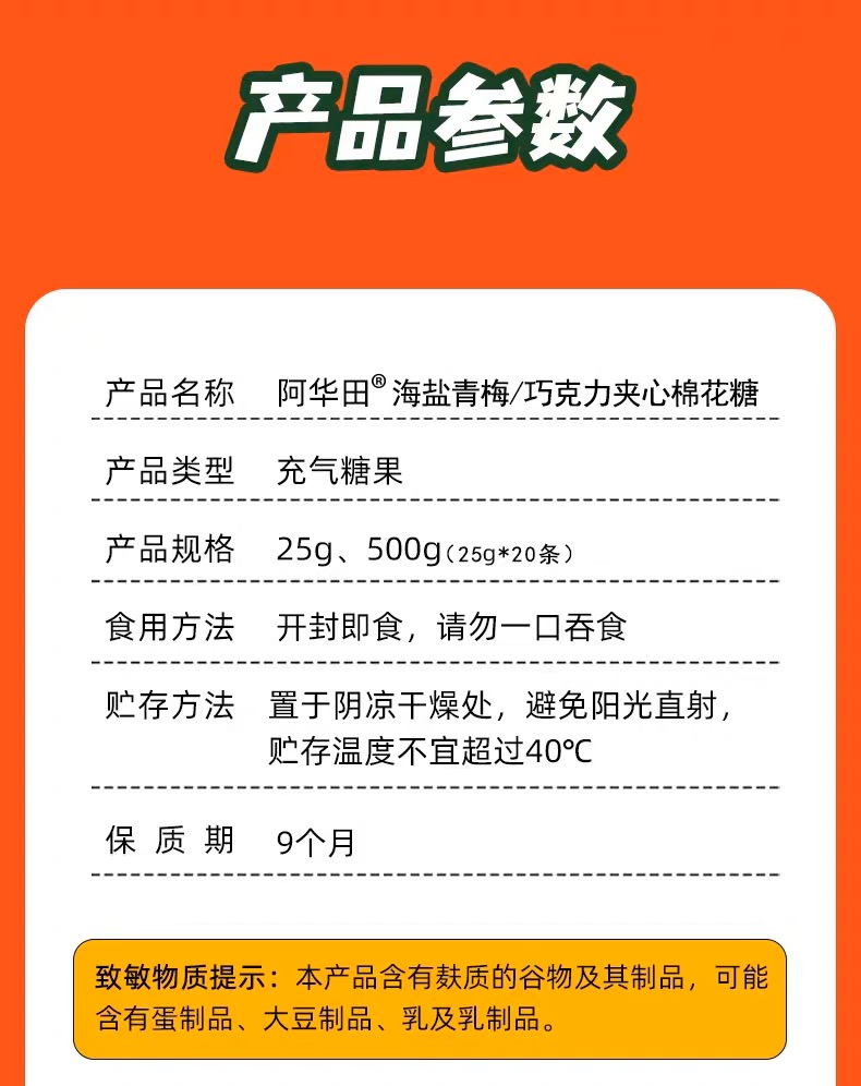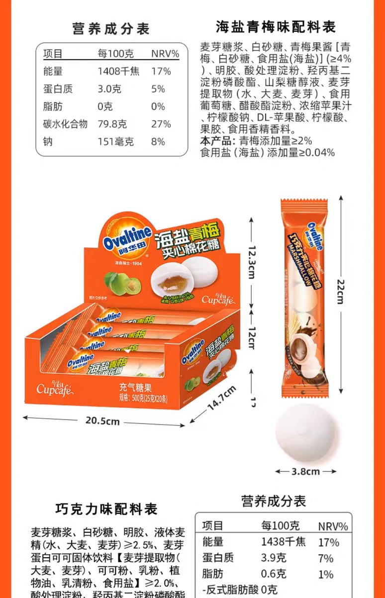 Ovaltine 阿华田巧克力夹心棉花糖500g(25gX20条)