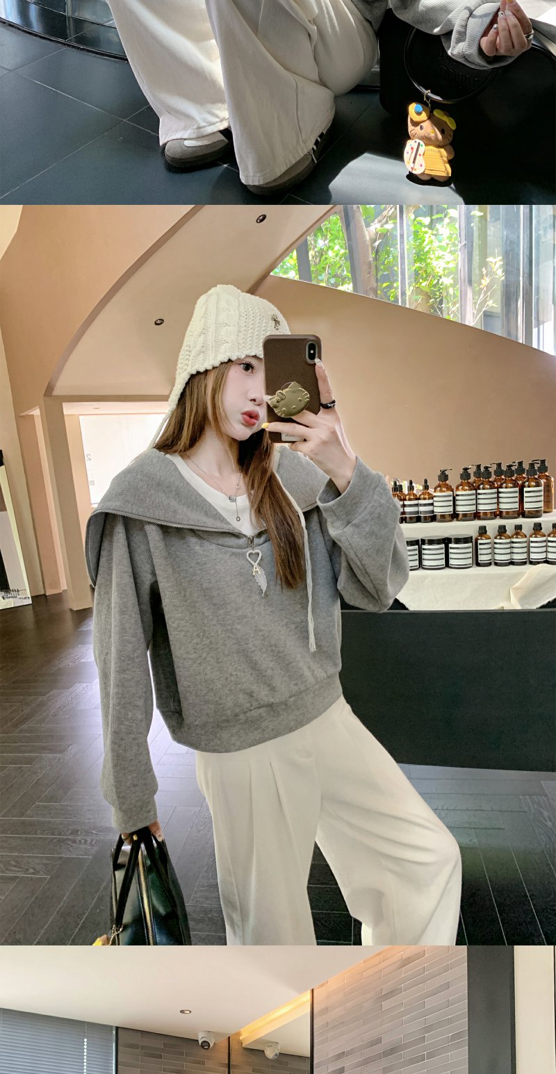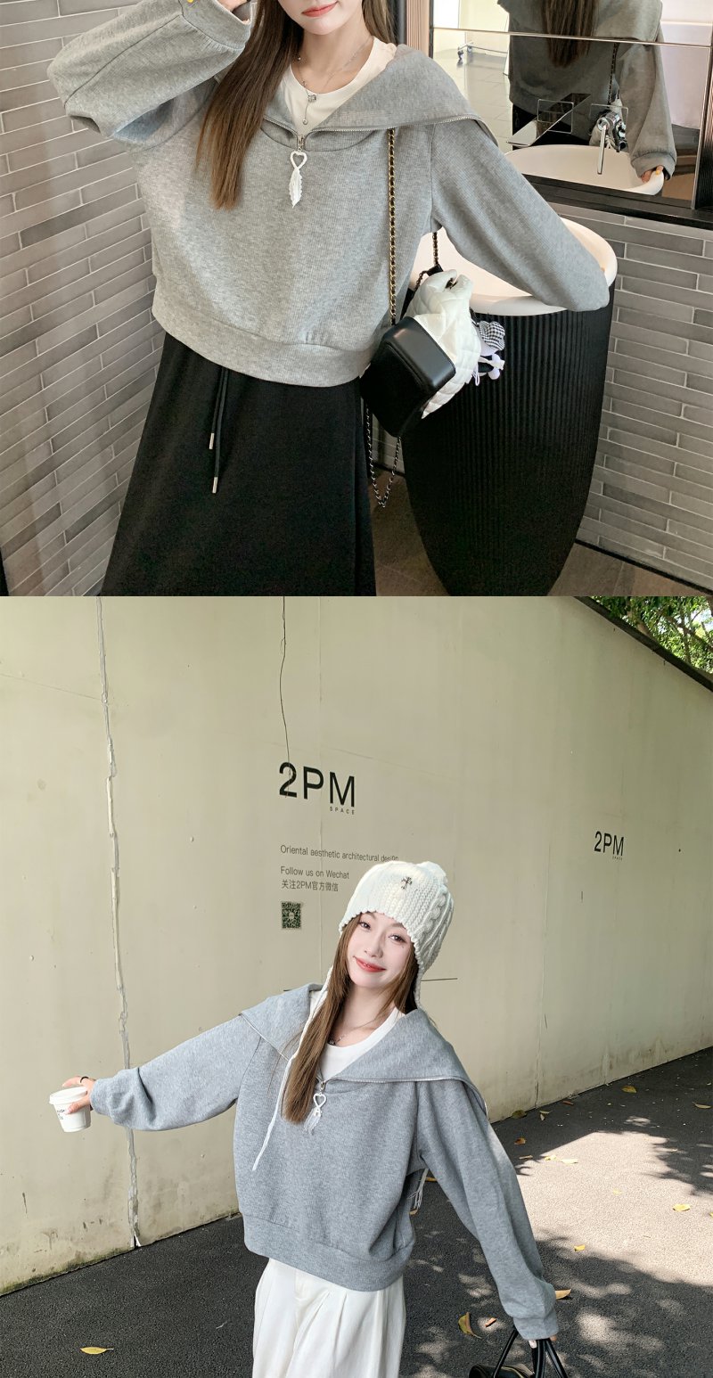 <曾小咸推荐>设计感撞色拼接假两件大翻领卫衣