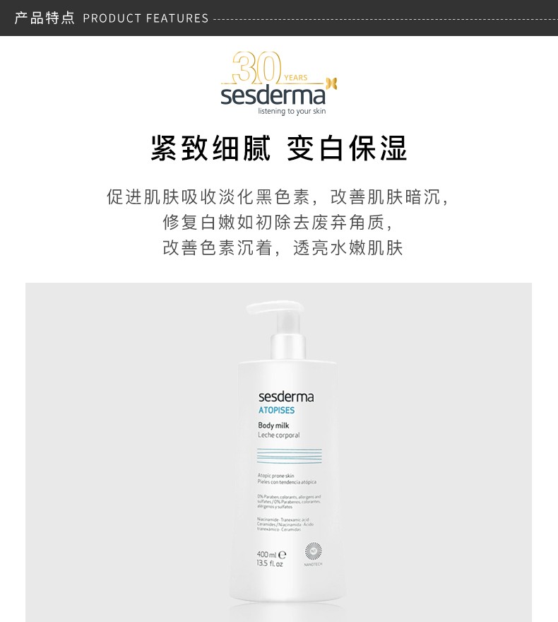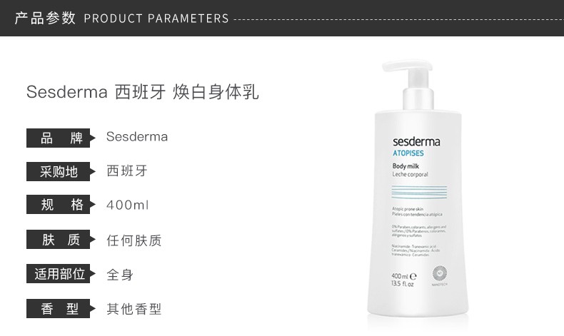SESDERMA 滋润修复亮白焕白身体乳 400ml 西班牙