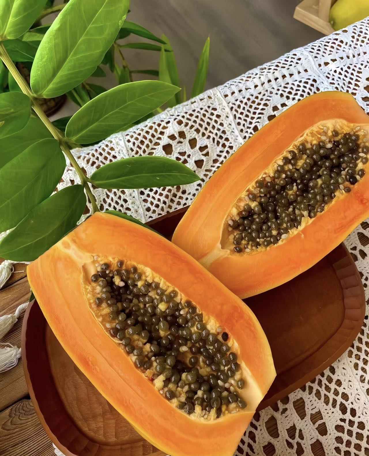超赞的红心木瓜自然熟🥤,手起刀落切开瞬间,色泽红嫩的果肉尽在眼前😍😍
