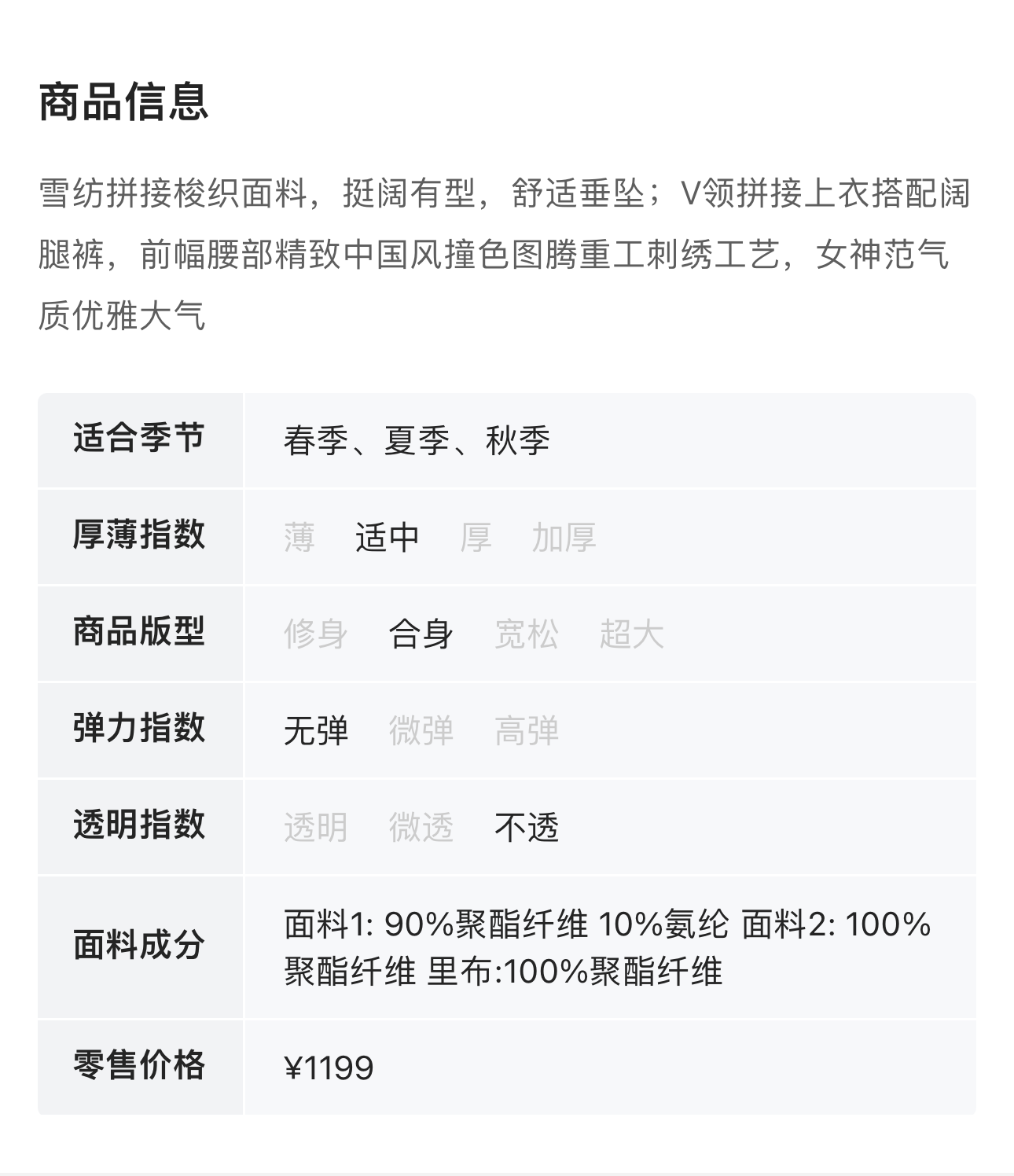 ELLA JADE 中国风重工刺绣V领阔腿裤套装 13220