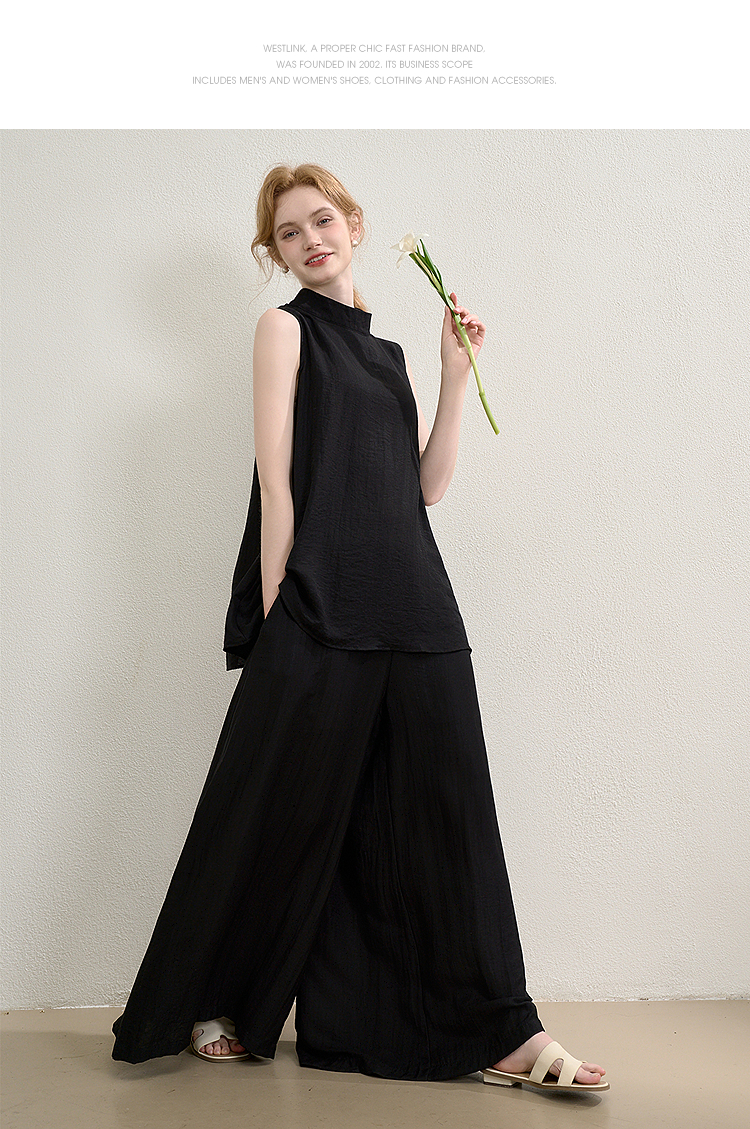 【限时秒杀】西遇无袖衬衫上衣套装女夏季新款休闲宽松阔腿裤裙裤两件套D0050788