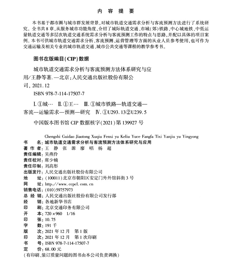 书名:城市轨道交通需求分析与客流预测方法体系研究与应用