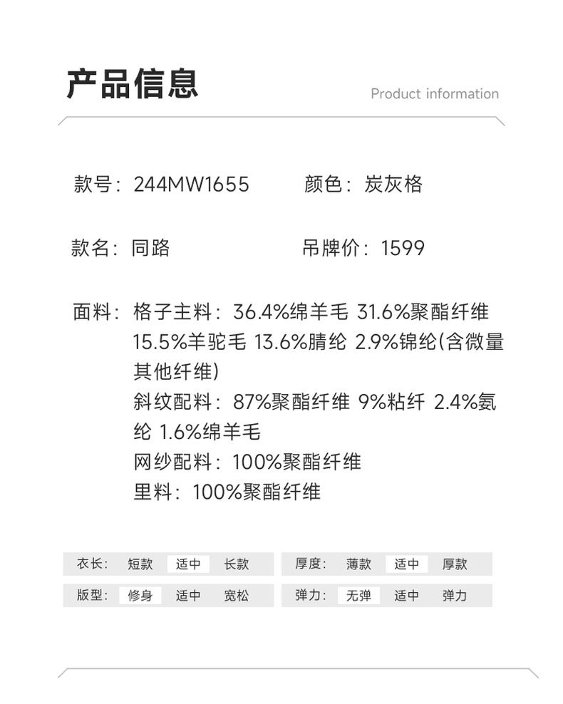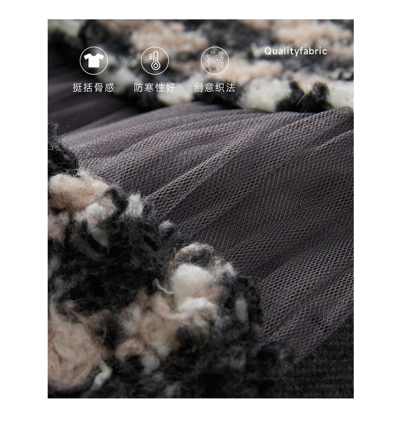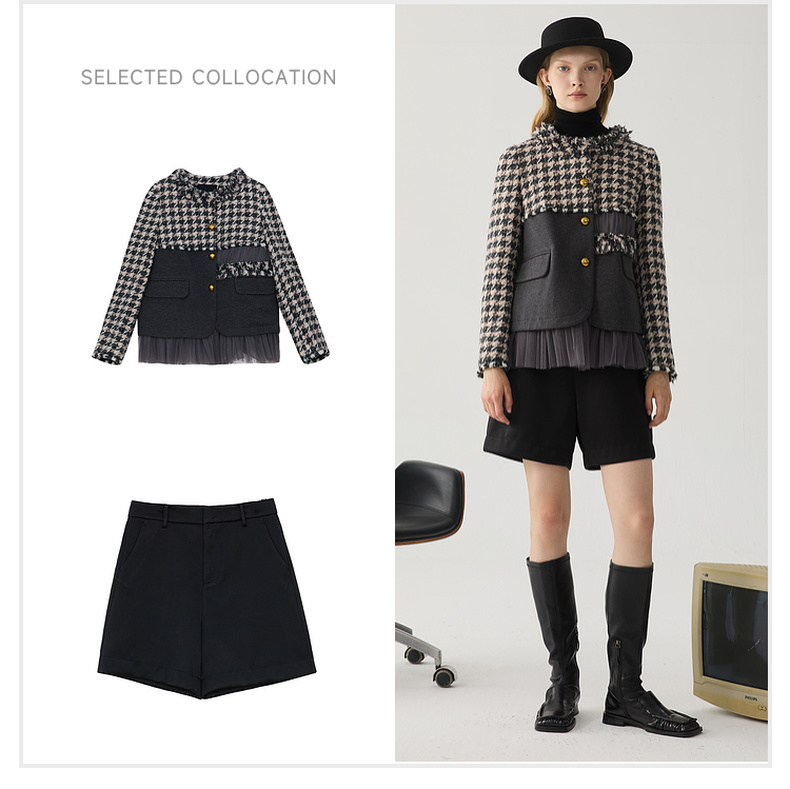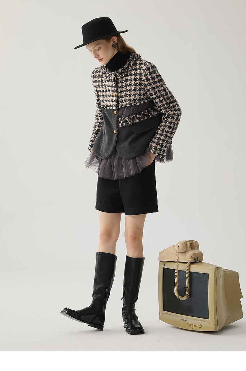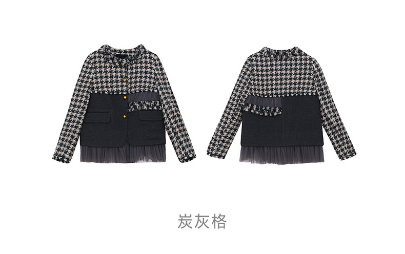 谜底拼接感外套女2024冬新品特色淑女千鸟格小香风外套244MW1655
