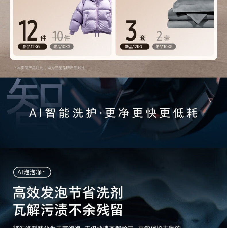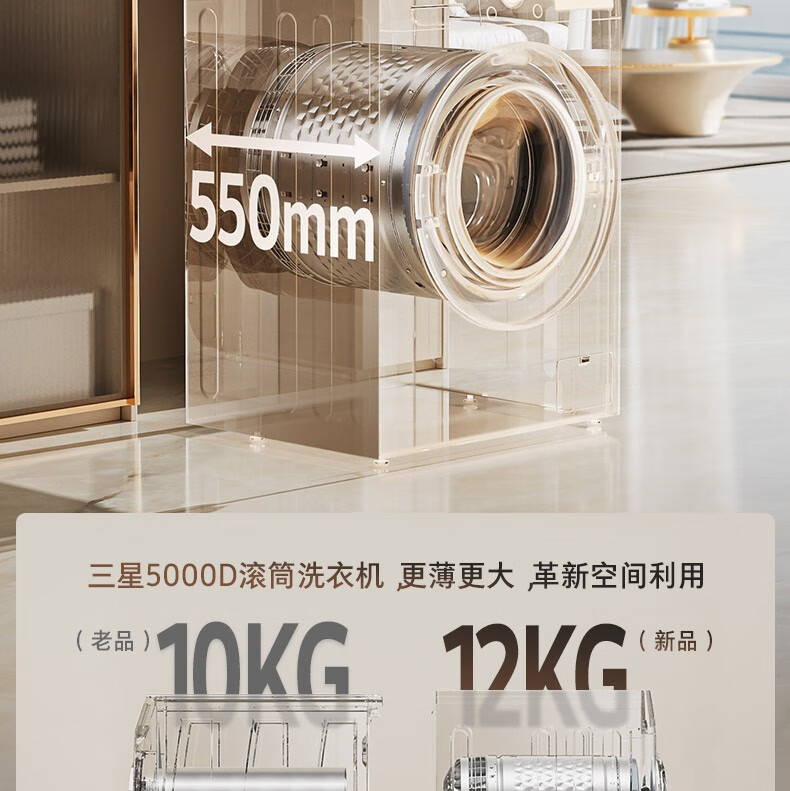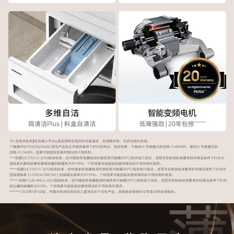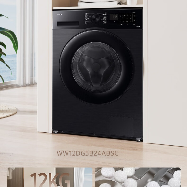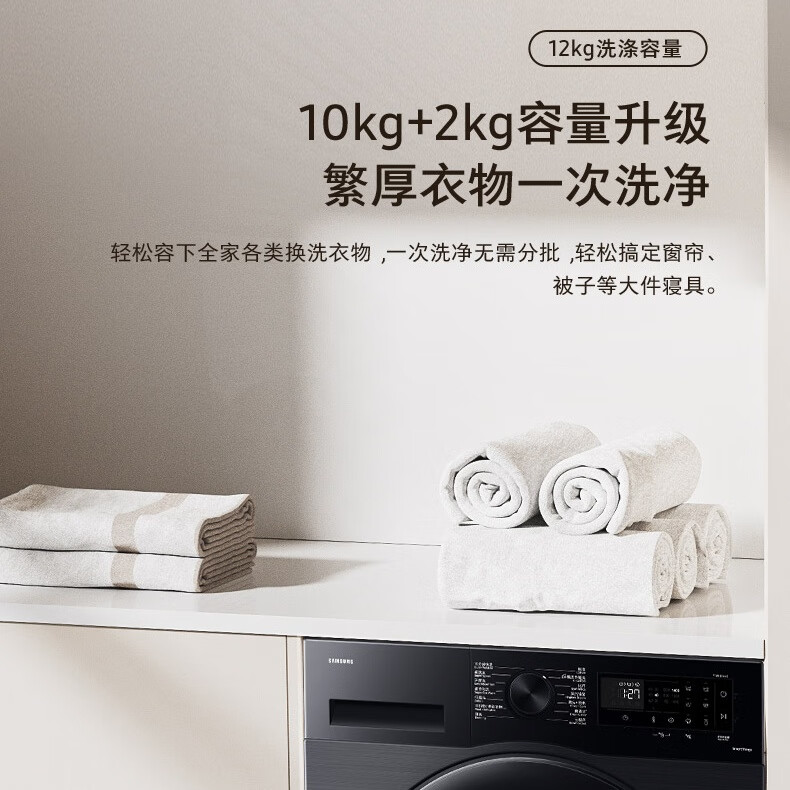 【红星美凯龙1号店】三星(SAMSUNG)12公斤滚筒洗衣机 蒸汽除菌高温桶自洁 泡泡净洗AI智控洗衣机【10公斤+2公斤】WW12DG5B24ABSC