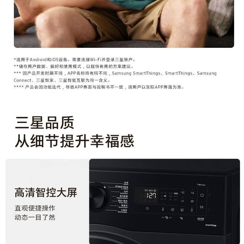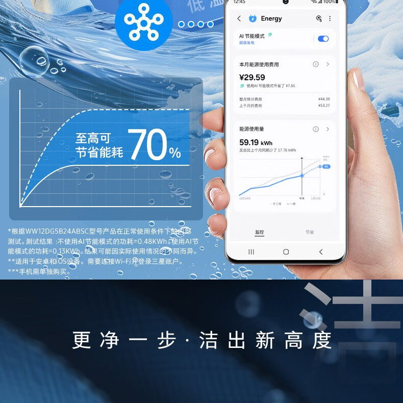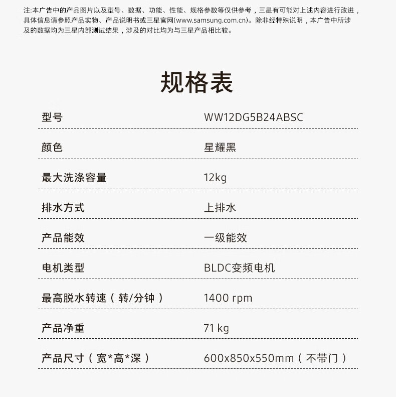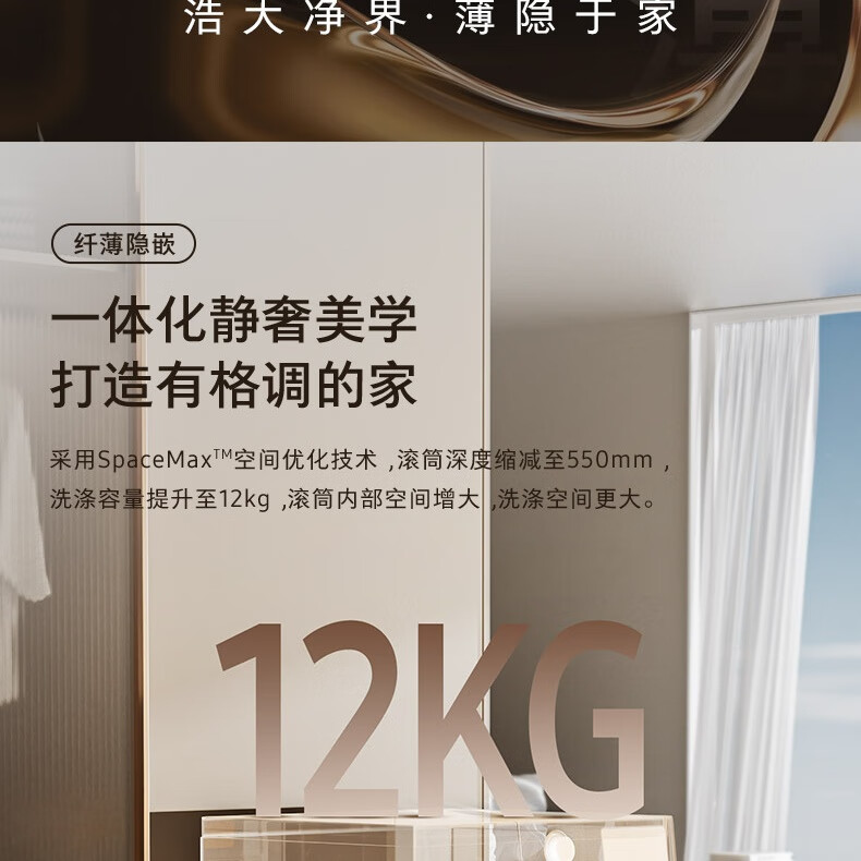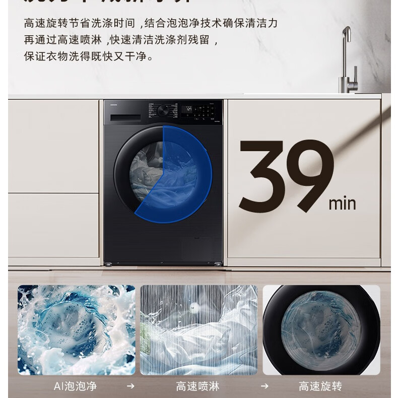 【红星美凯龙1号店】三星(SAMSUNG)12公斤滚筒洗衣机 蒸汽除菌高温桶自洁 泡泡净洗AI智控洗衣机【10公斤+2公斤】WW12DG5B24ABSC