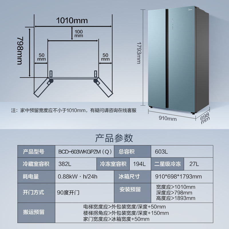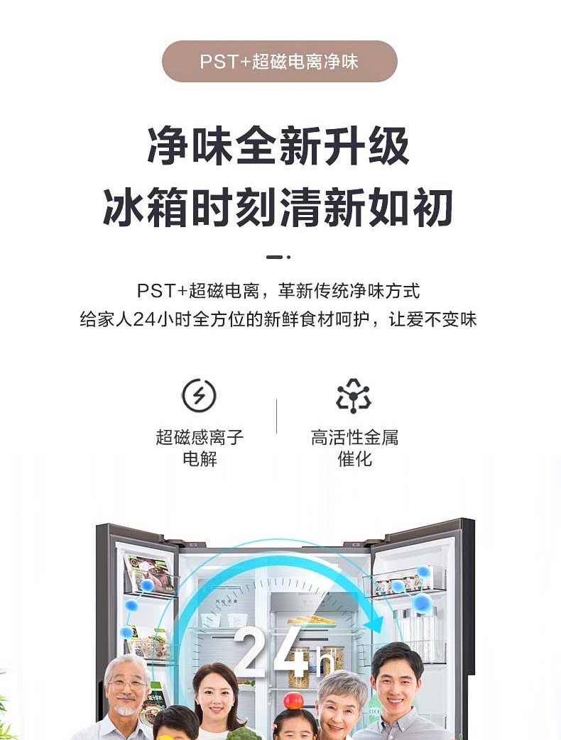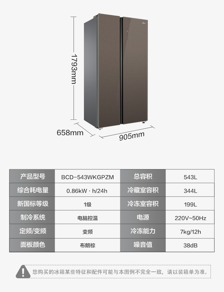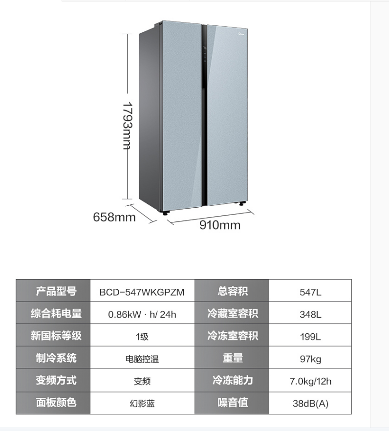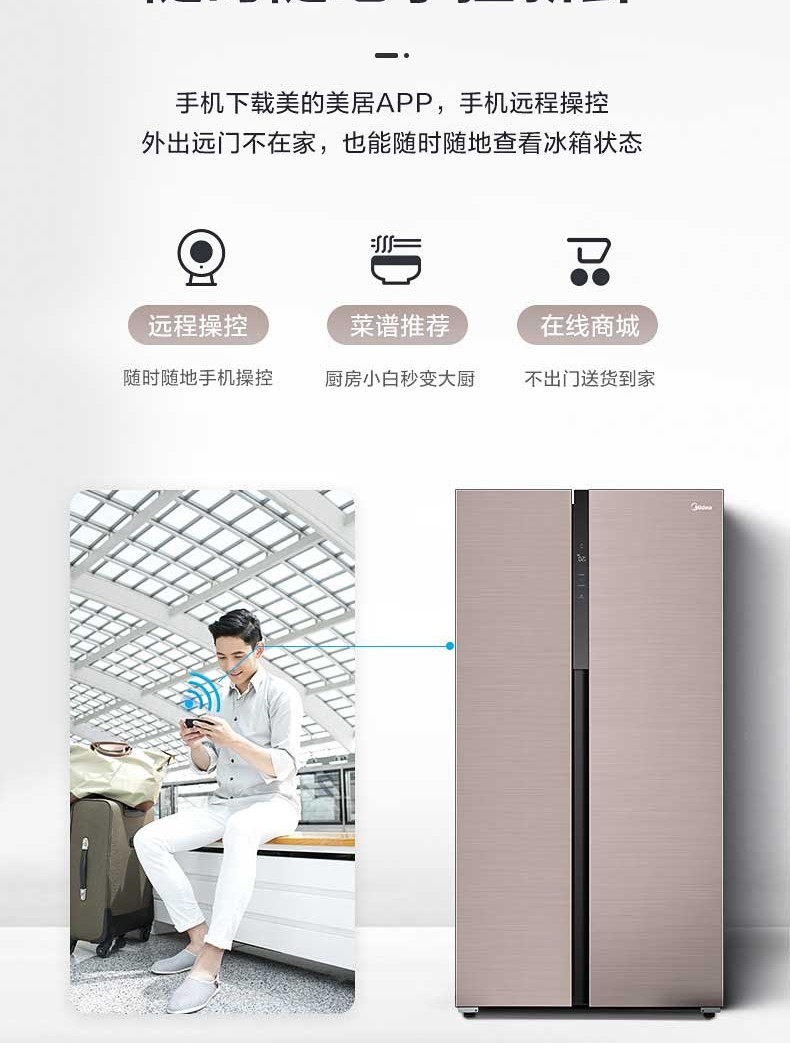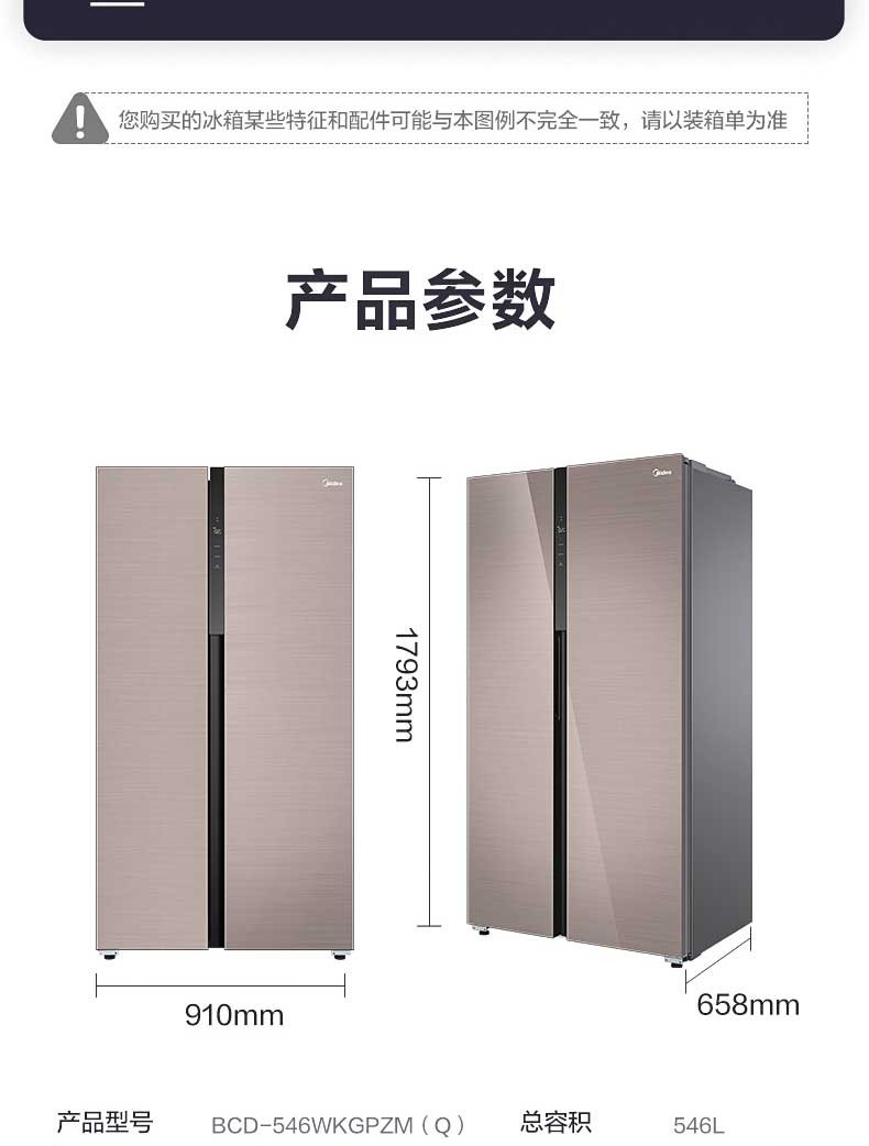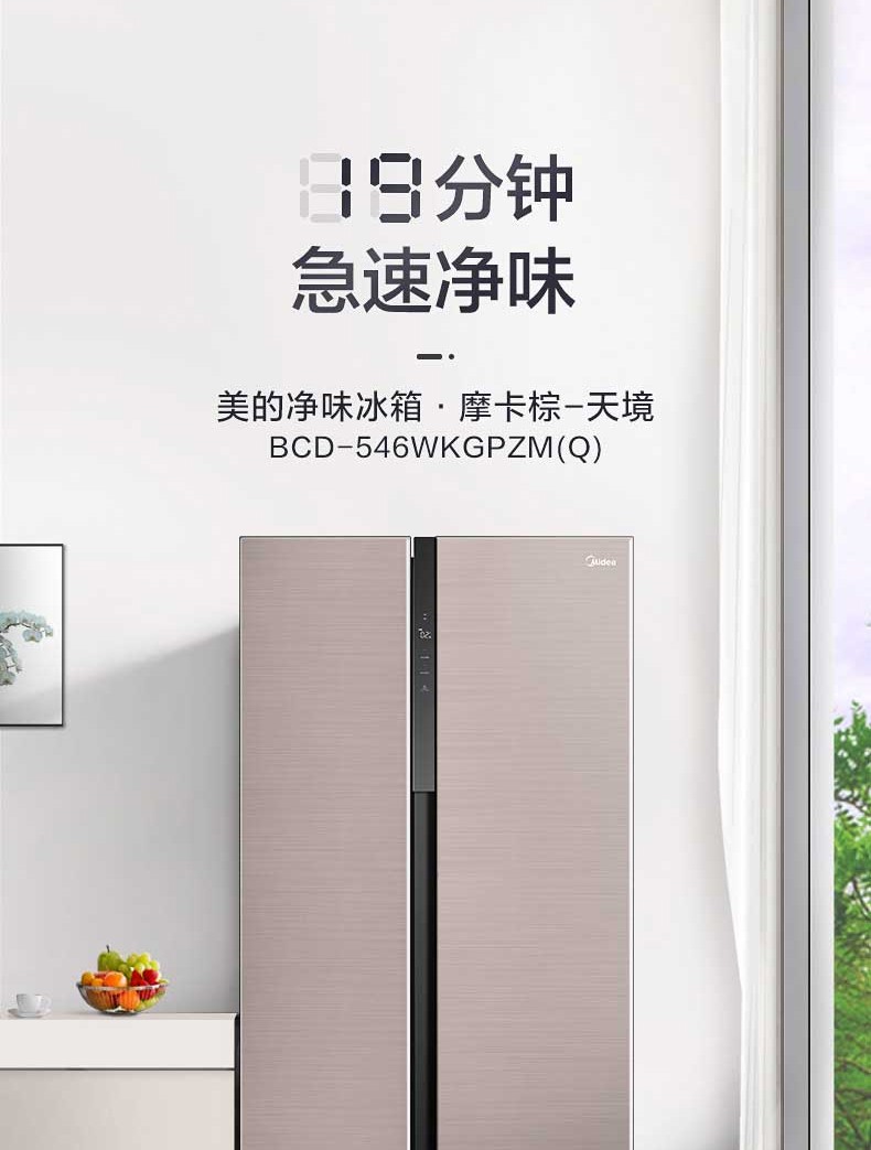 美的BCD-546WKGPZM(Q)双开门净味冰箱对开门家用智能无霜大容量