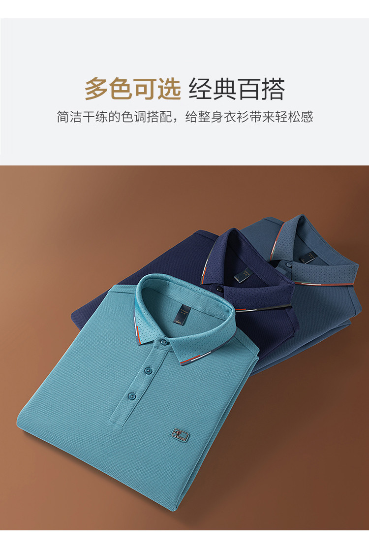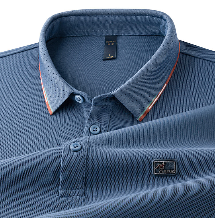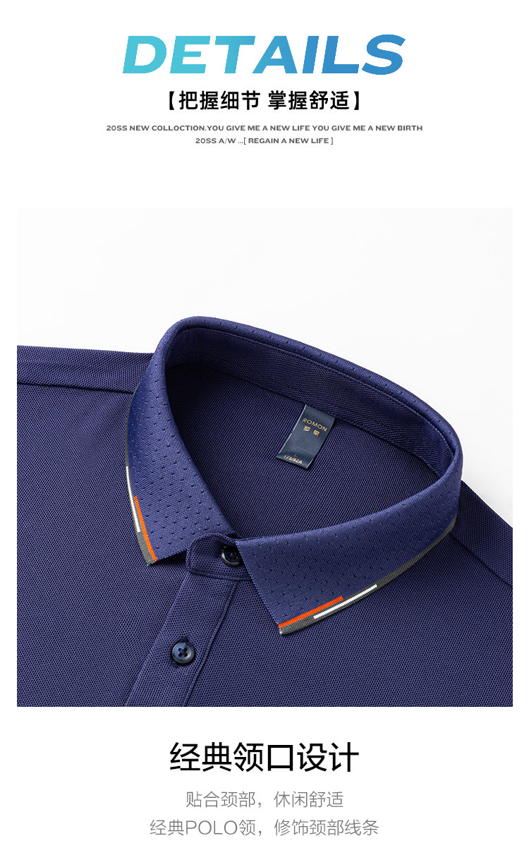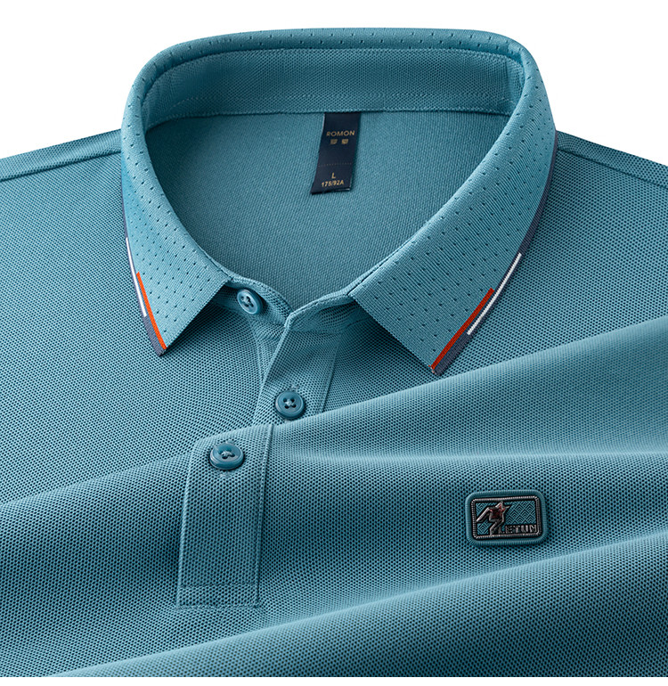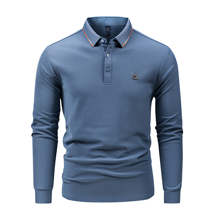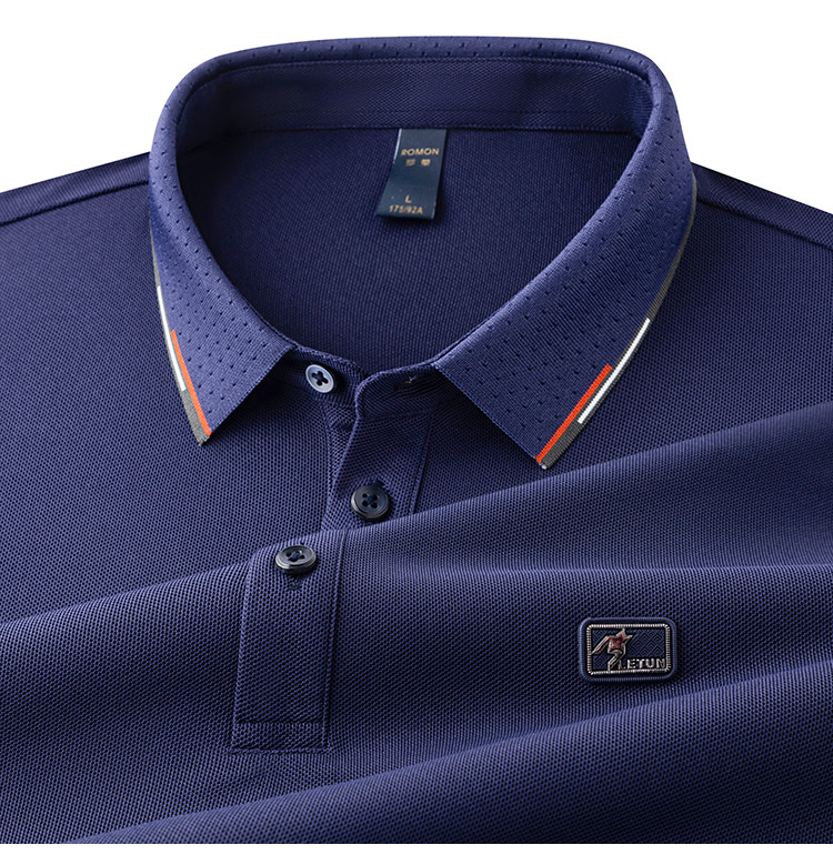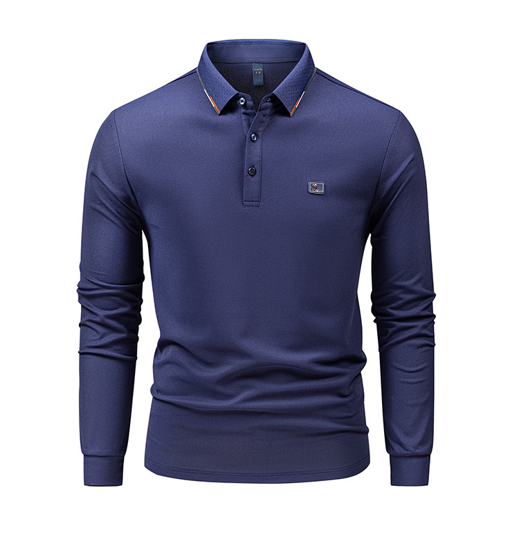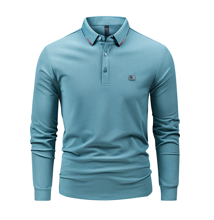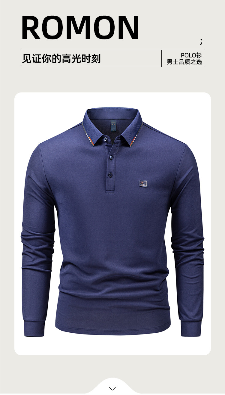 罗蒙【7A抗菌】精美皮标商务polo衫男长袖t恤男春秋t恤男长袖POLO衫