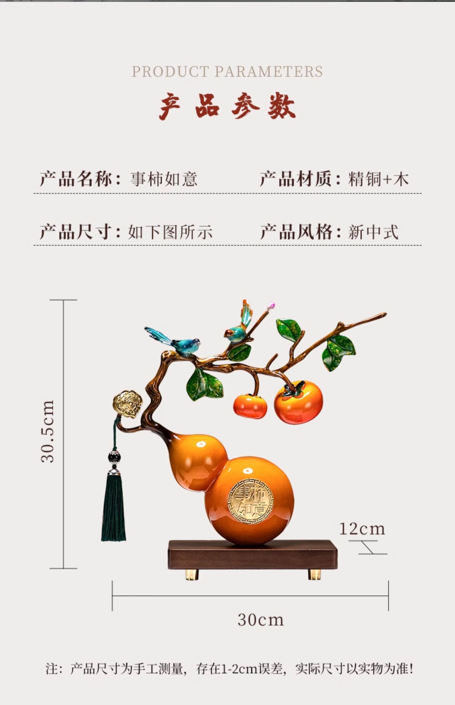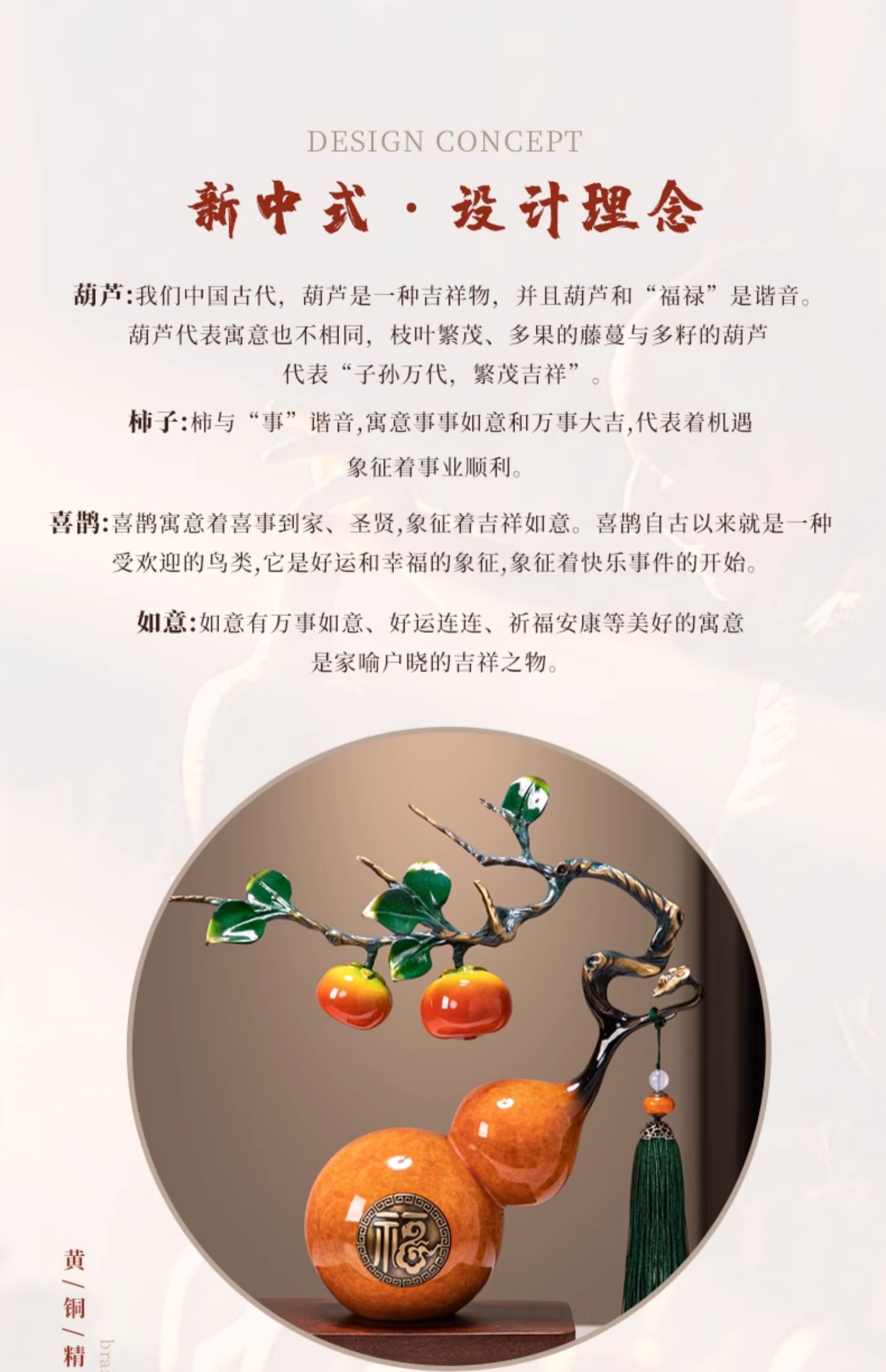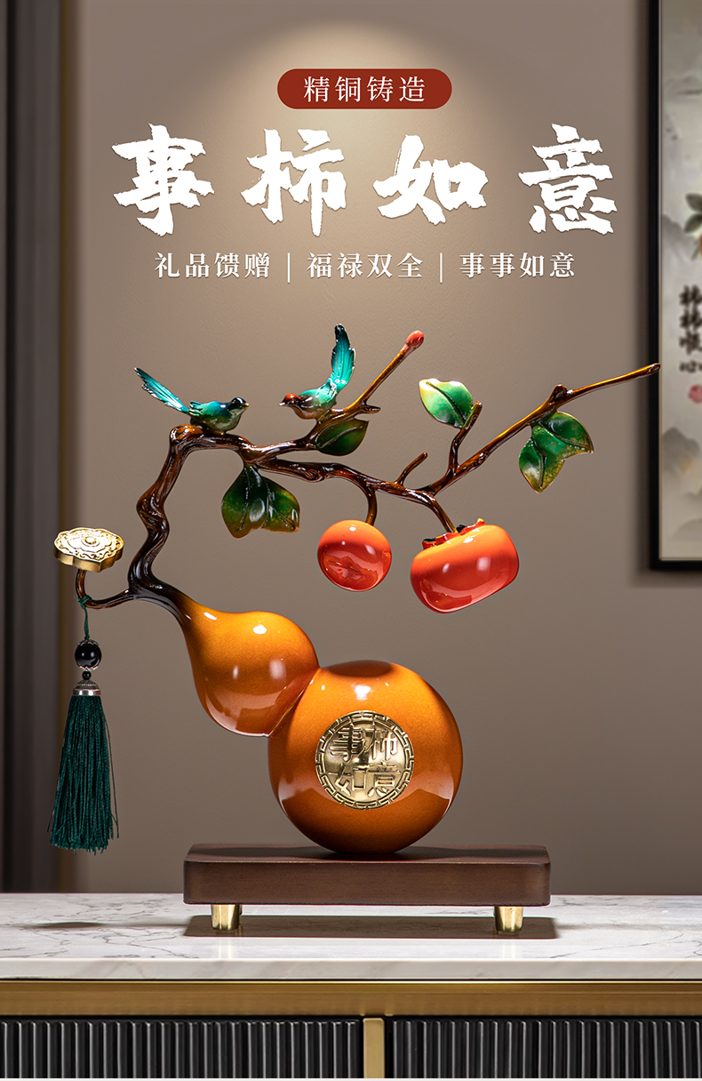 E-YM-B301 纯铜柿事如意葫芦摆件 290*120*250