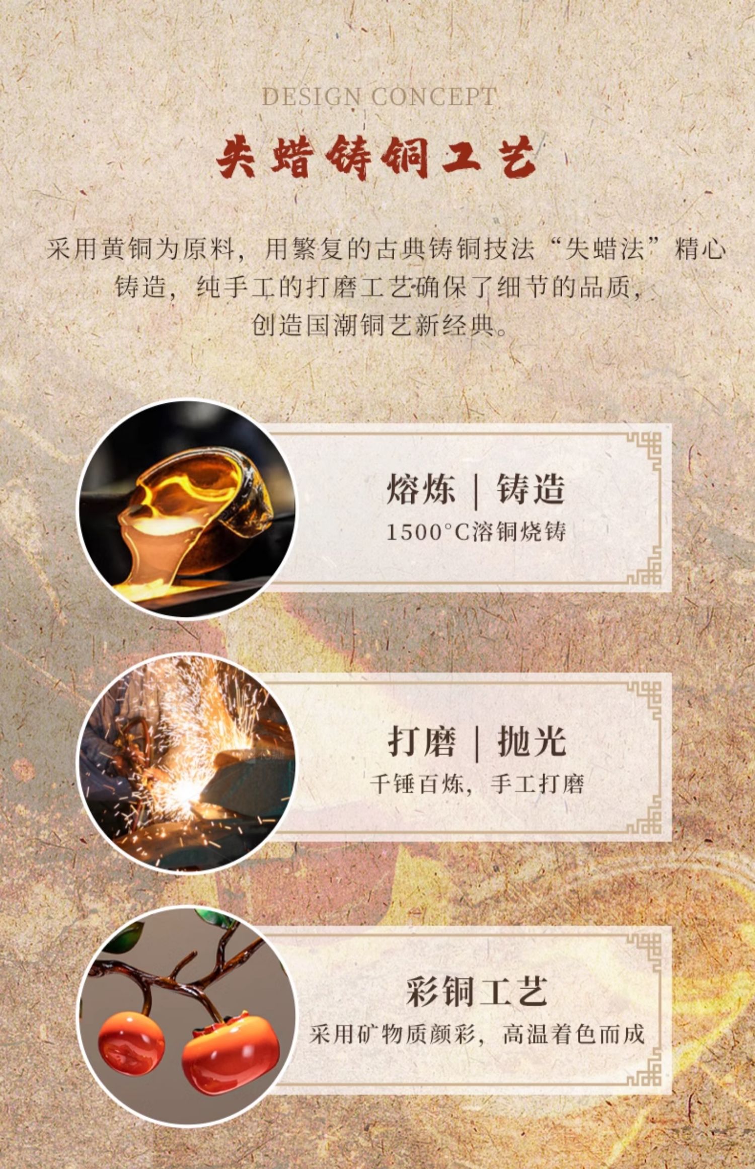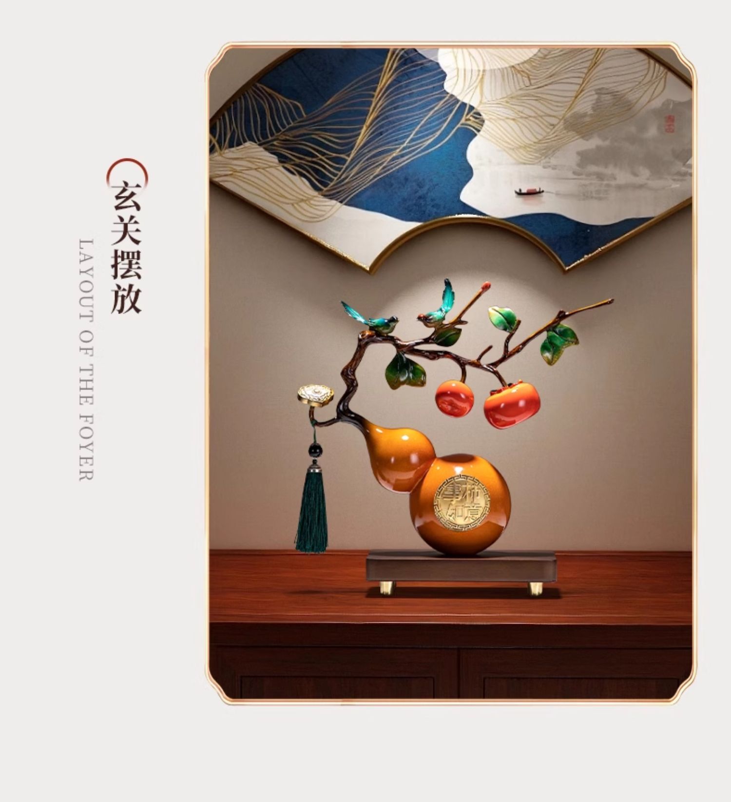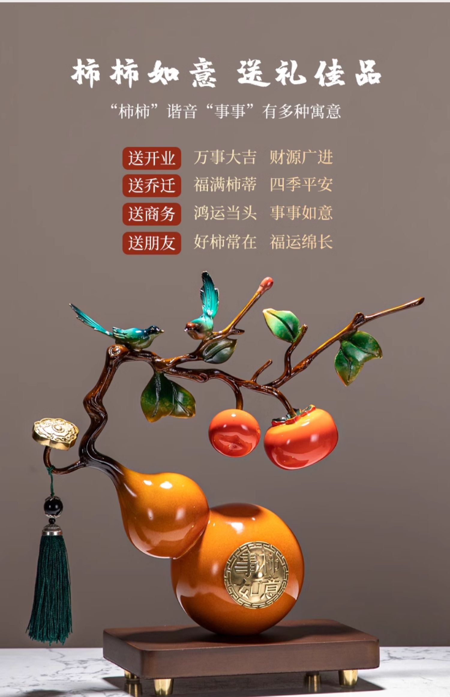 E-YM-B301 纯铜柿事如意葫芦摆件 290*120*250