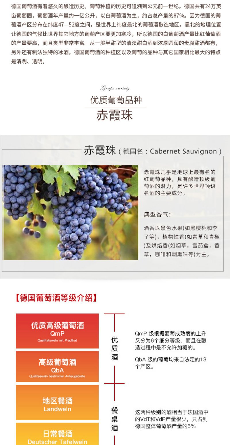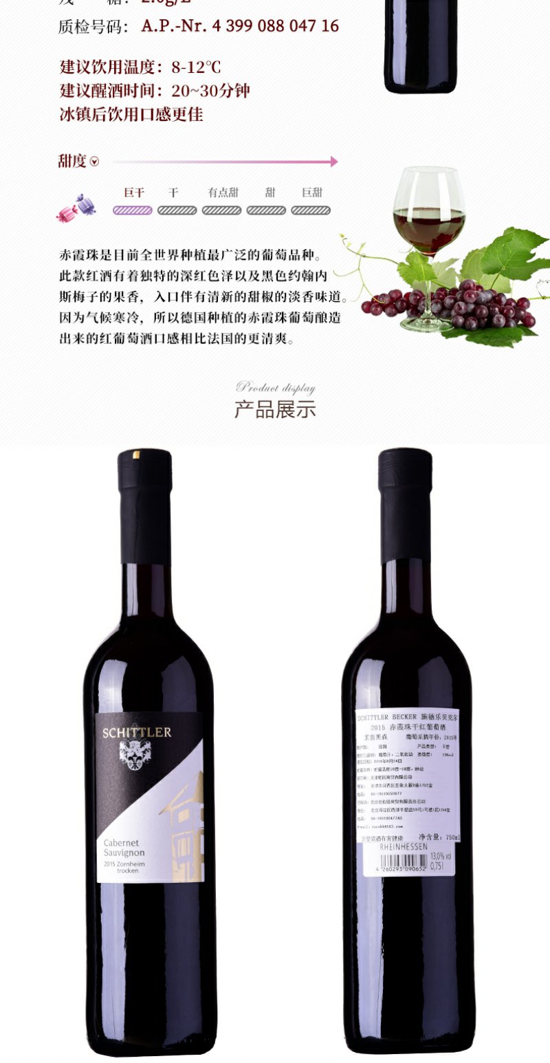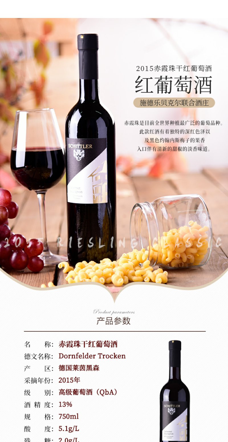 德国原装进口赤霞珠红葡萄酒莱茵黑森干型QbA750ml
