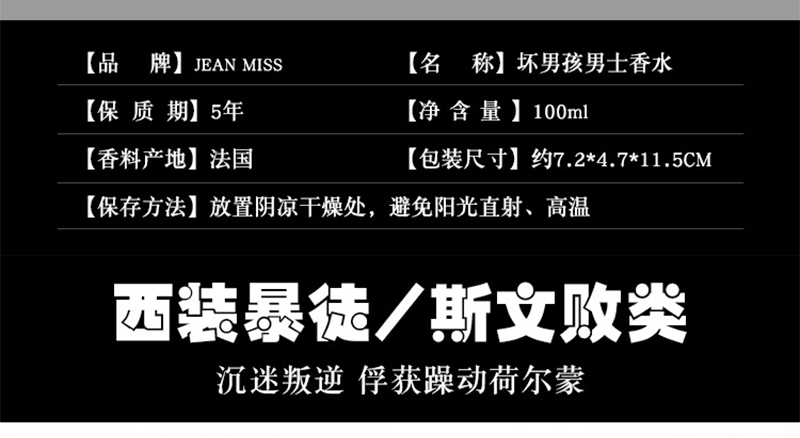 JEAN MISS 雅痞男士坏男孩香水100ml