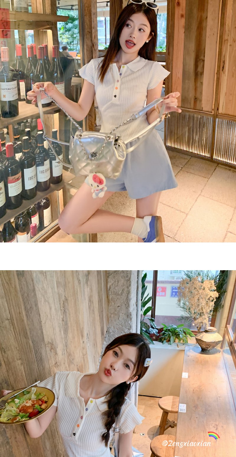 <曾小咸推荐>4.11现货秒杀 !微信超特价!3色韩系坑条针织短袖 日常159.99 立减100 秒杀59.99!!