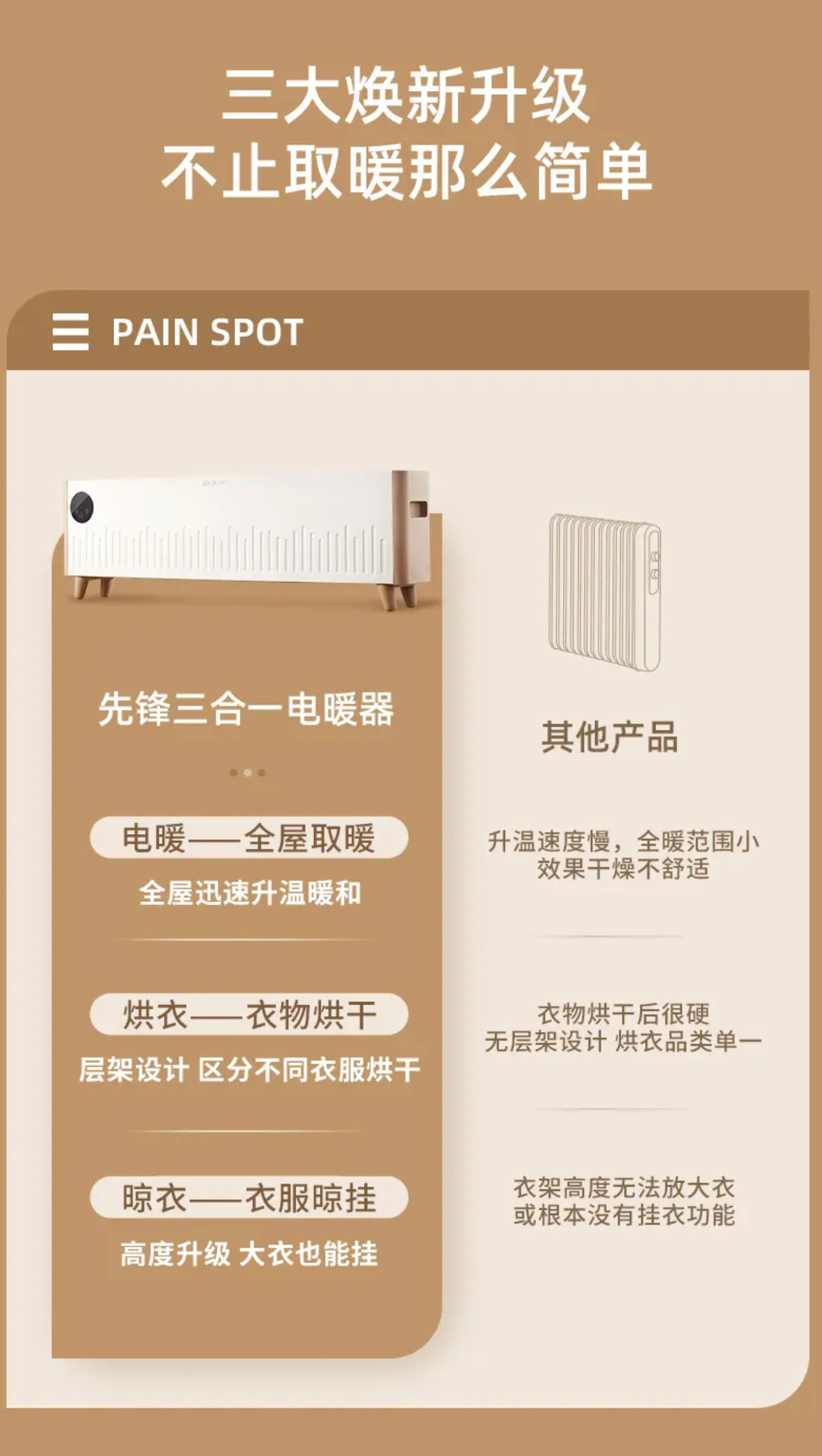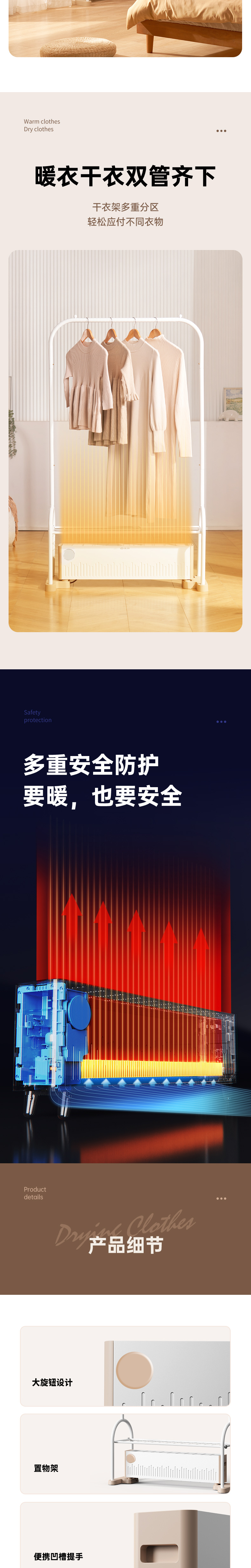 【买取暖器,送落地晾衣架】先锋烘衣取暖器 ,室内省电暖风机,IPX4防水,断电保护,高效速热,节能省电,立体环绕热风柔烘,360°防溅水,居浴两用~
