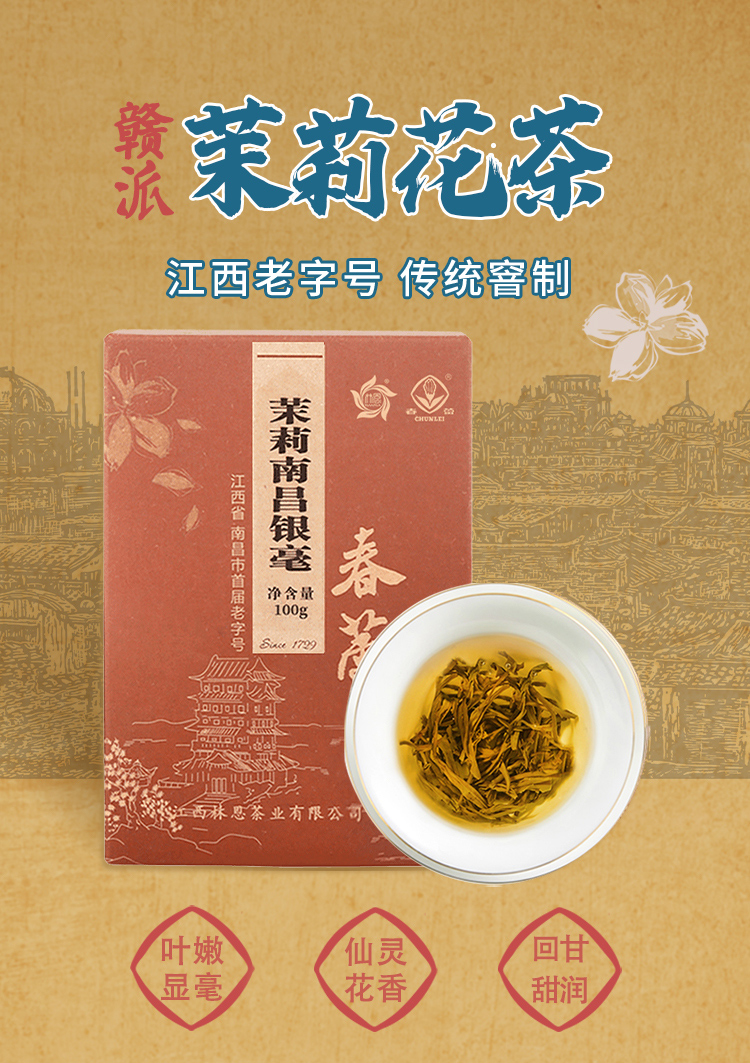 【江西首届老字号】林恩春蕾 茉莉南昌银毫 100g/盒(天猫同款)