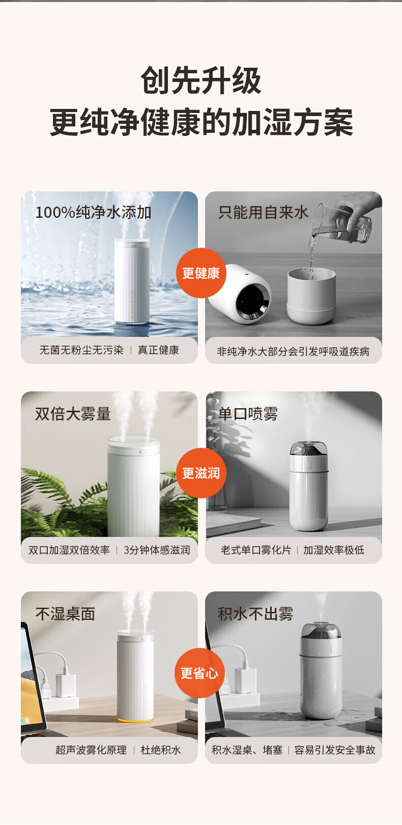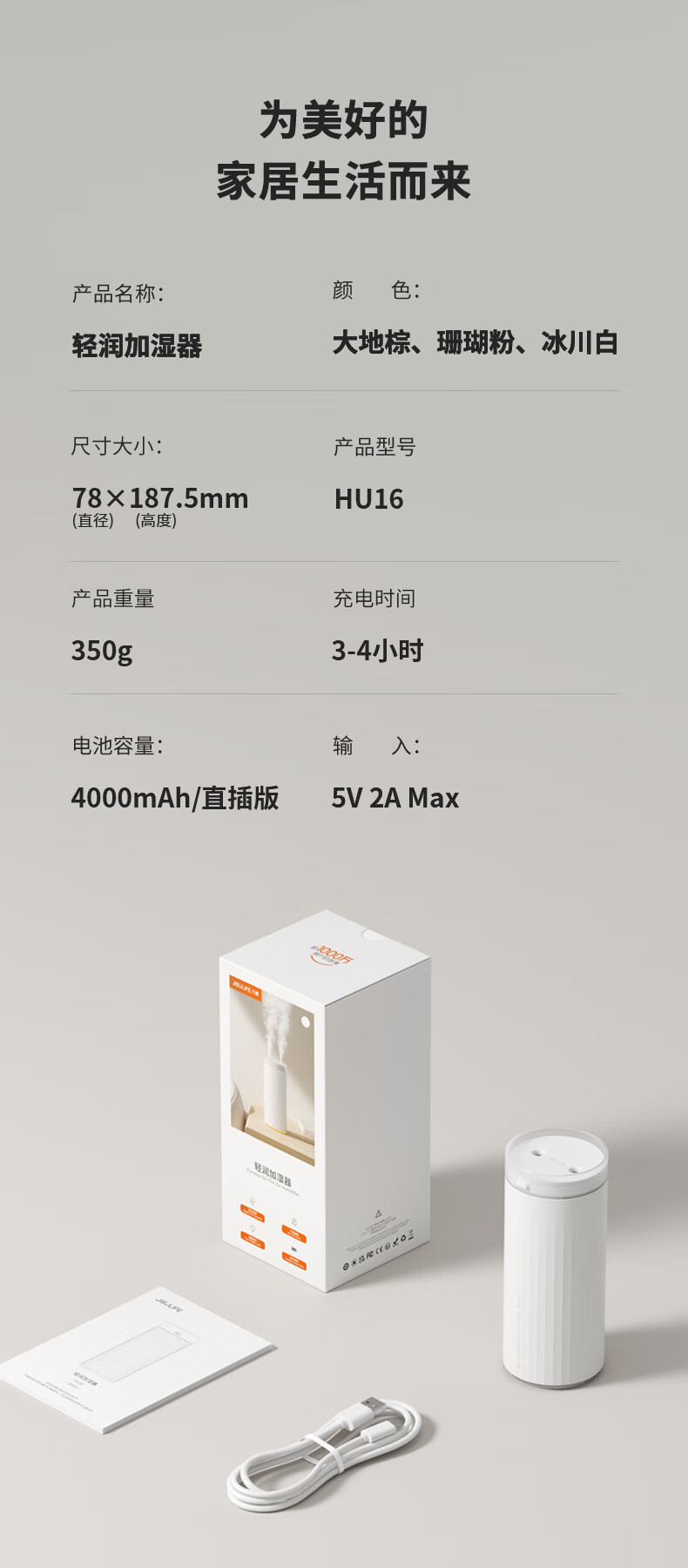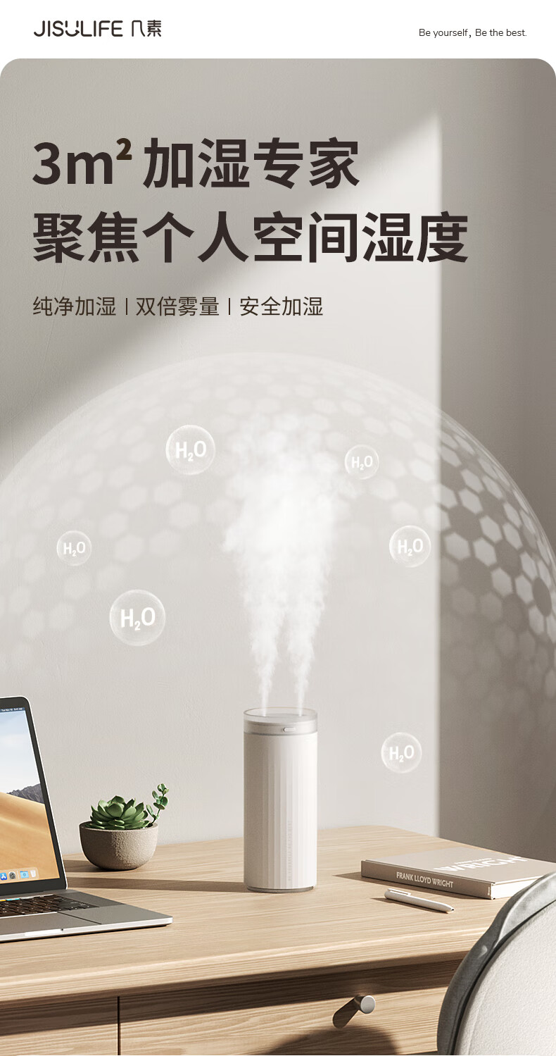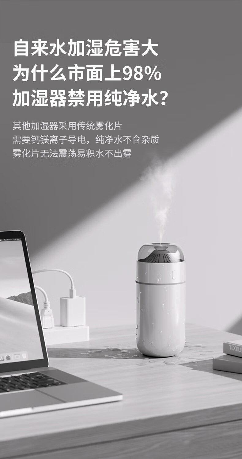 【小家电】几素加湿器桌面迷你办公室宿舍车载加湿器卧室家用婴儿小型空气USB无线便携加湿器 HU16 HF