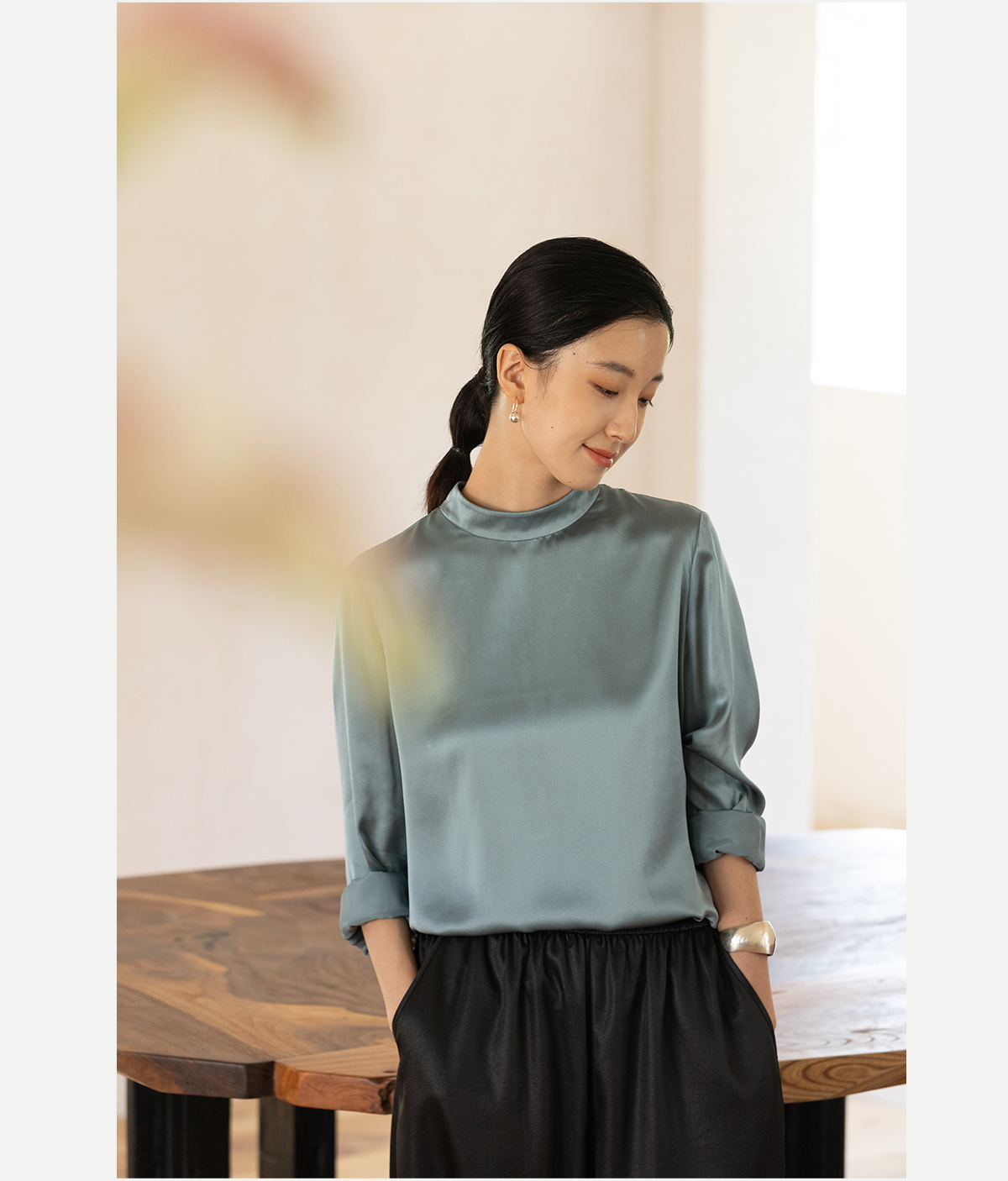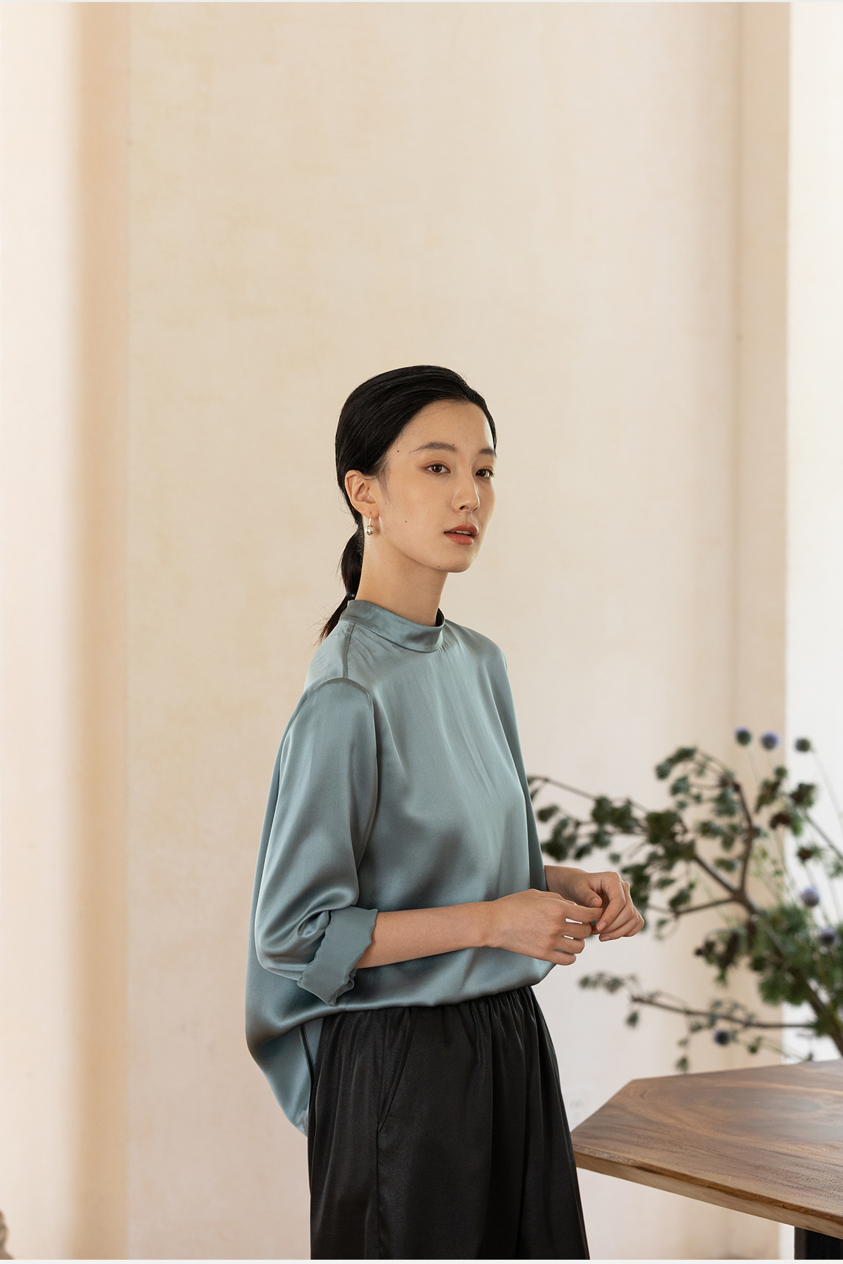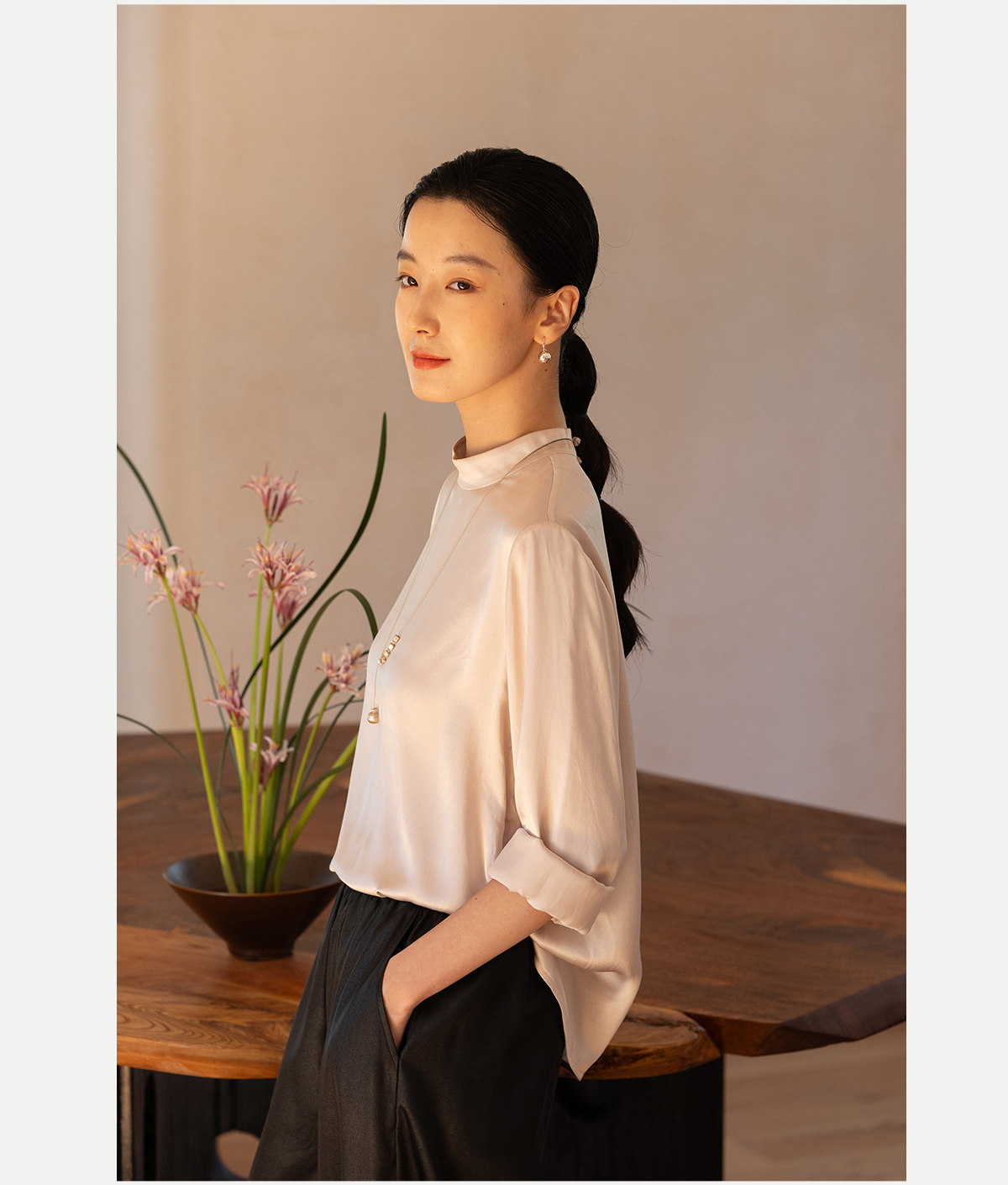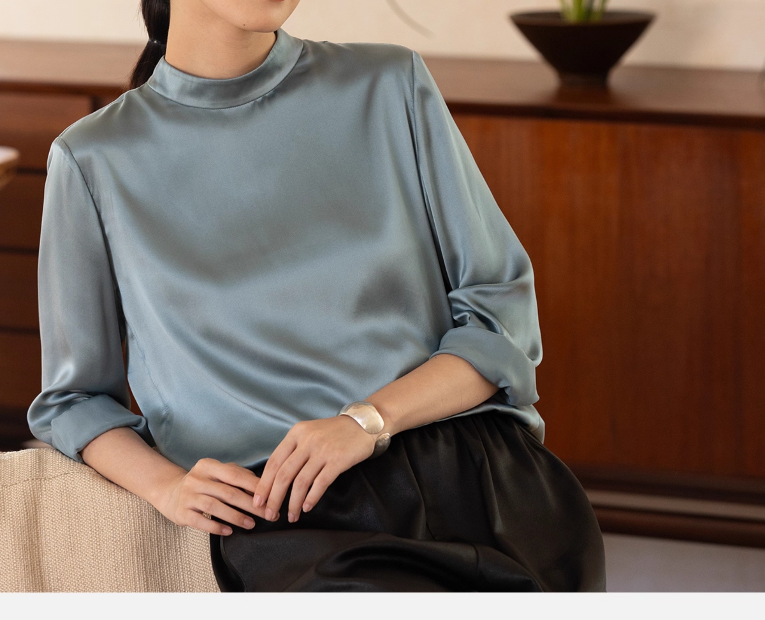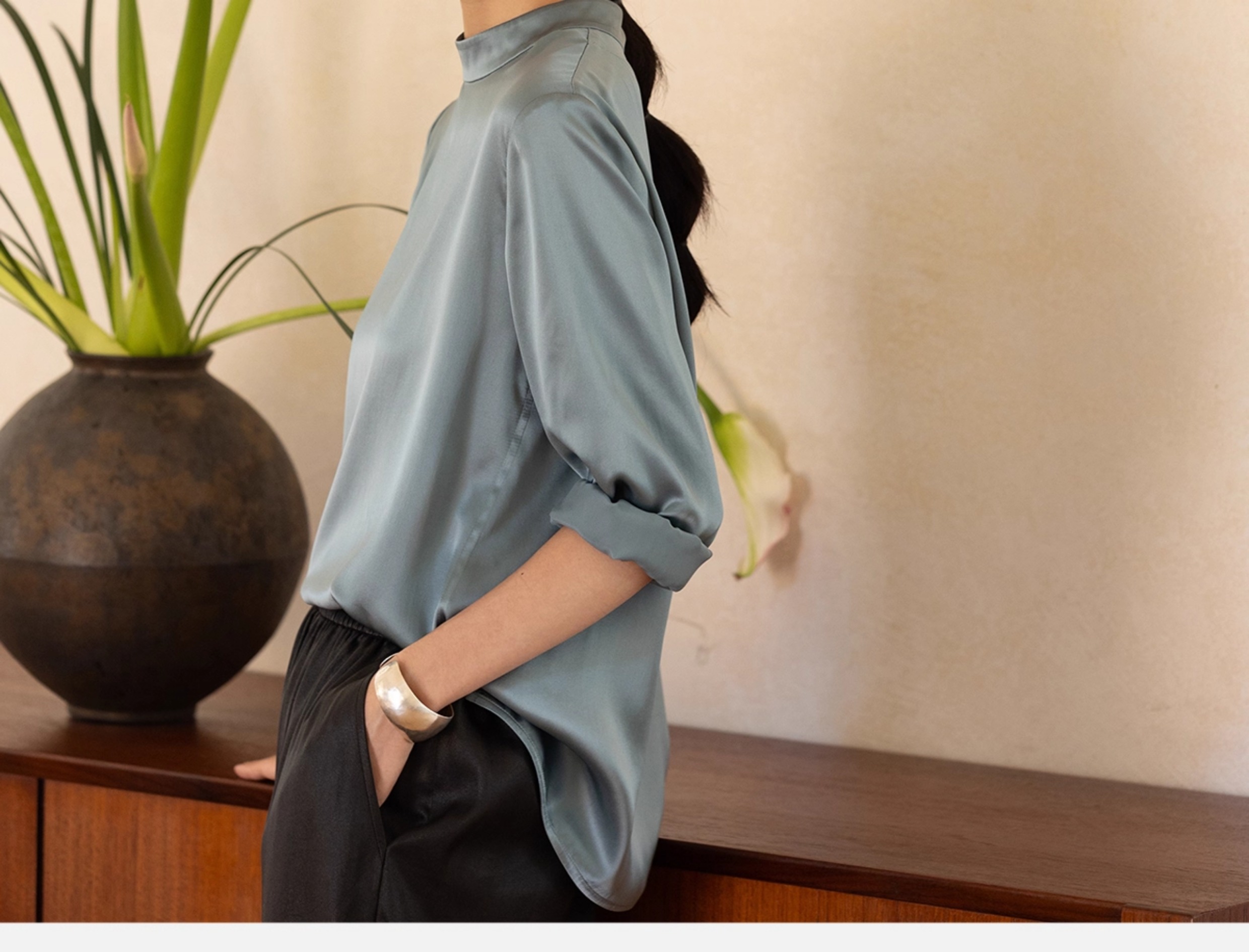 牧衣游原创 16姆米净色真丝衬衫女新款通勤极简百搭气质衬衣 尘音