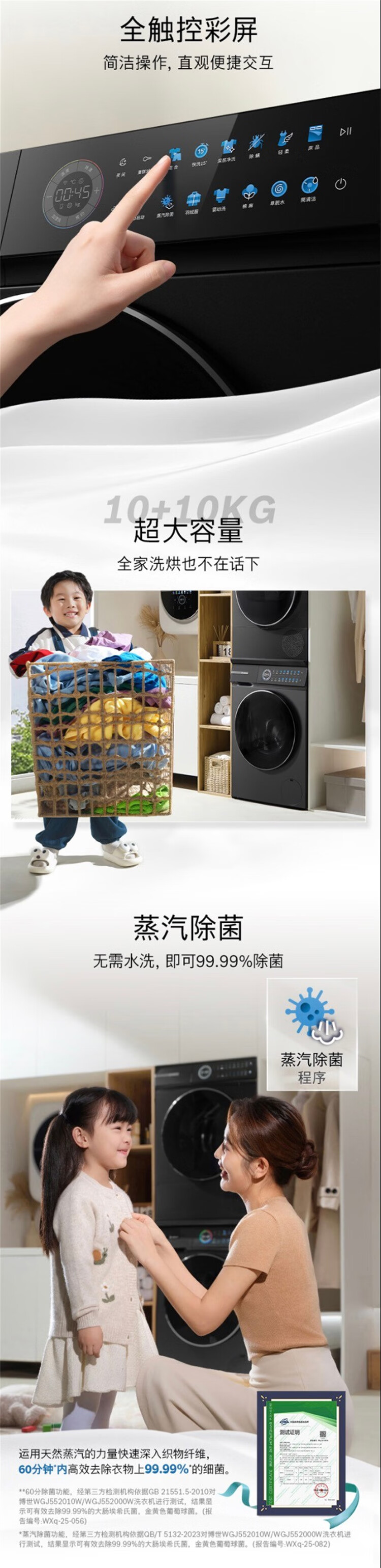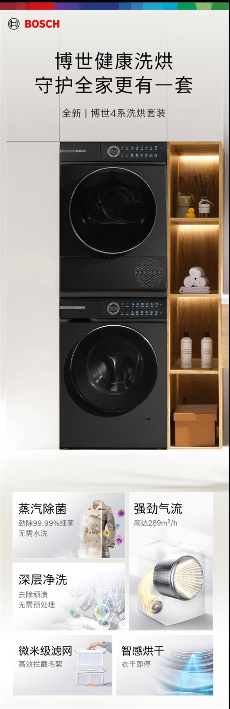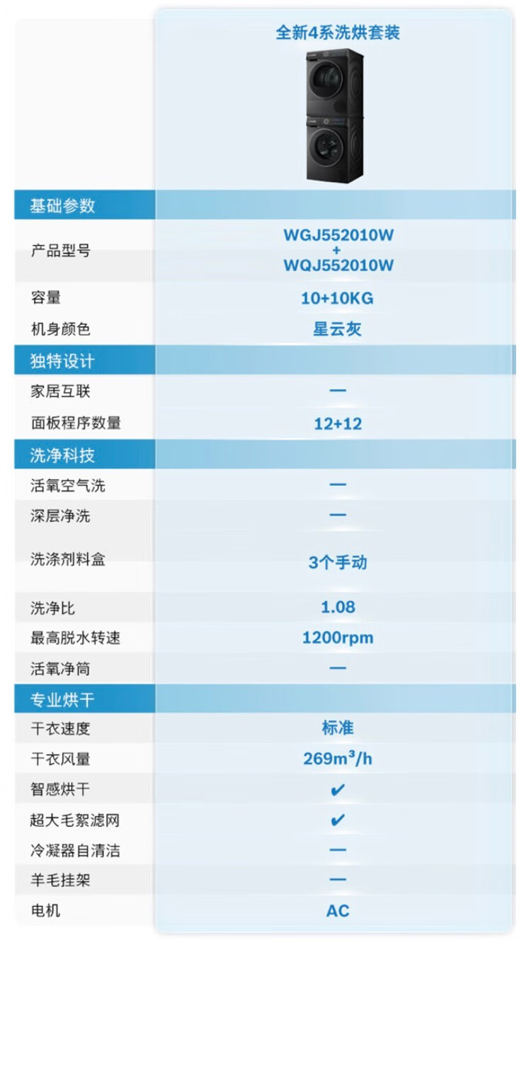 博世(BOSCH)4系Modena摩德纳 10KG 变频一级能效洗烘套装 全触控彩屏 晶御互联 蒸汽除皱 深层净洗 热泵烘干机 WGJ552010W+WQJ552010W