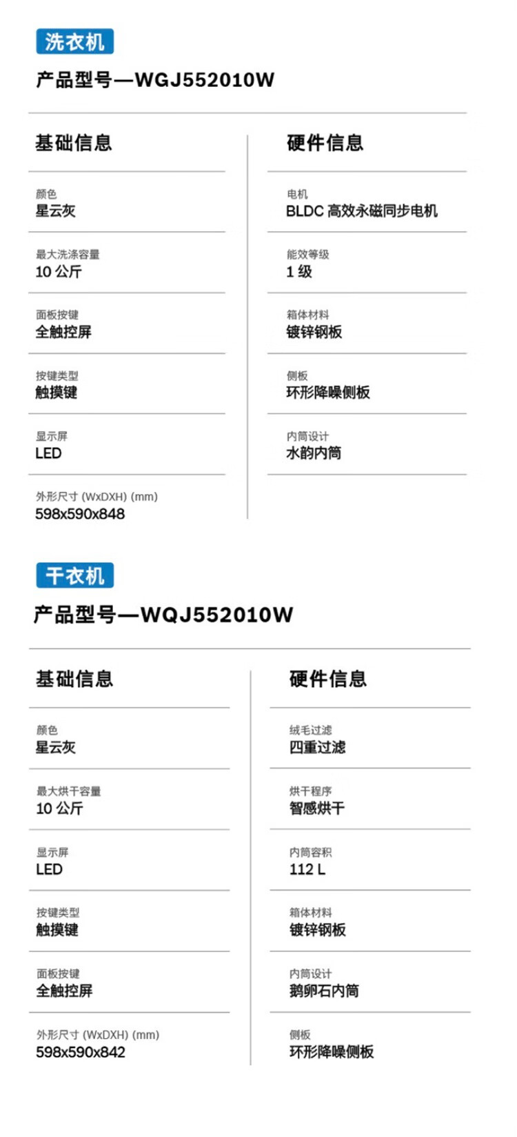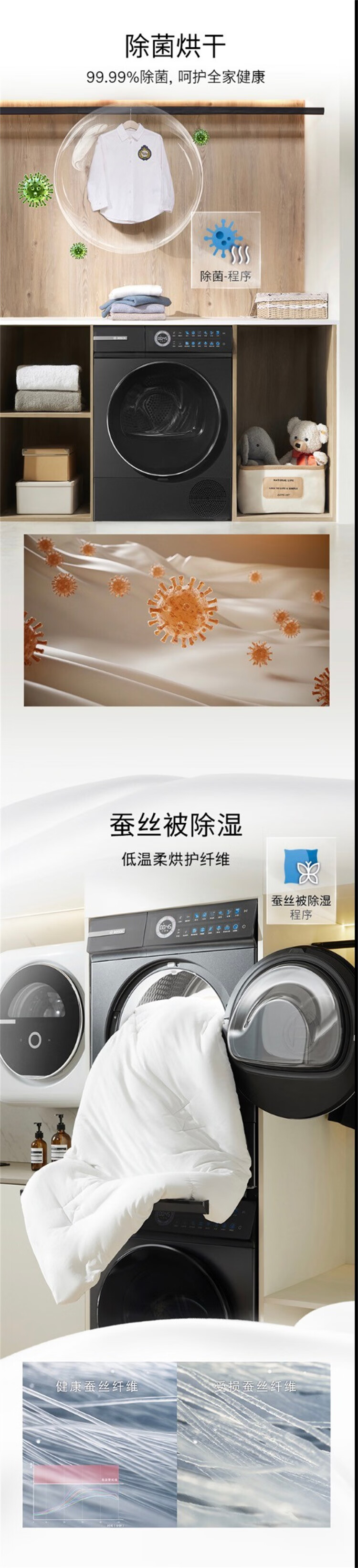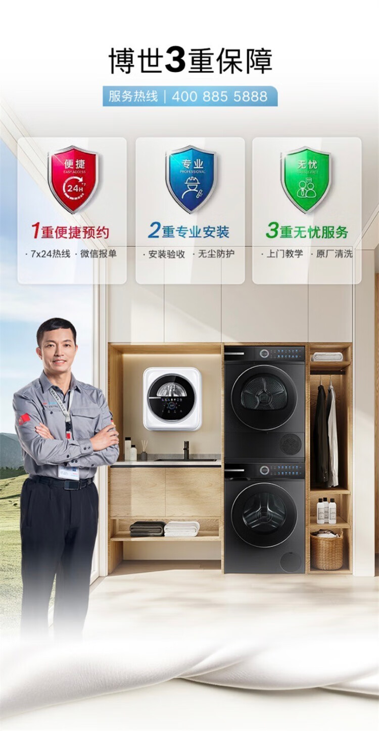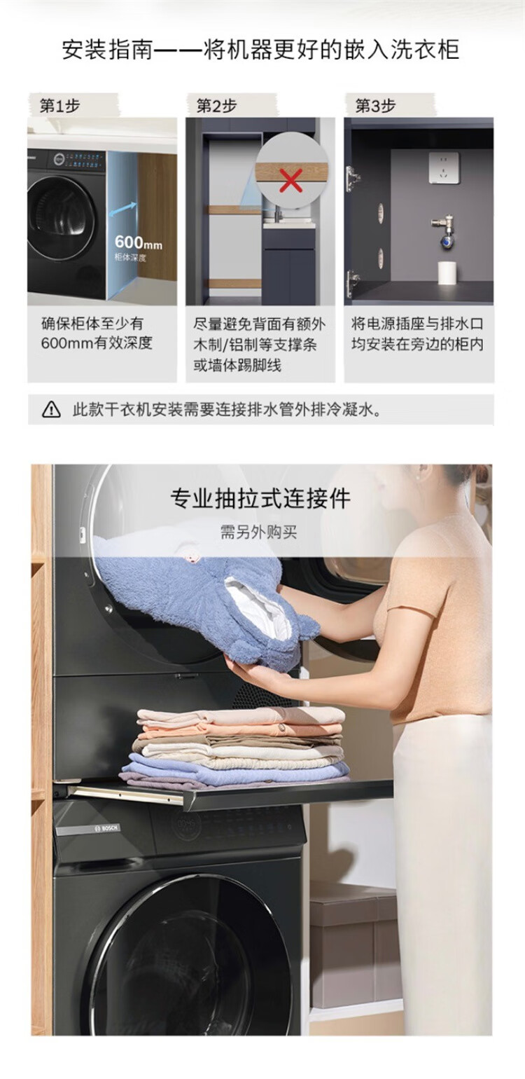 博世(BOSCH)4系Modena摩德纳 10KG 变频一级能效洗烘套装 全触控彩屏 晶御互联 蒸汽除皱 深层净洗 热泵烘干机 WGJ552010W+WQJ552010W