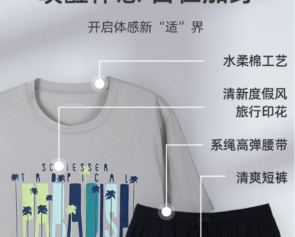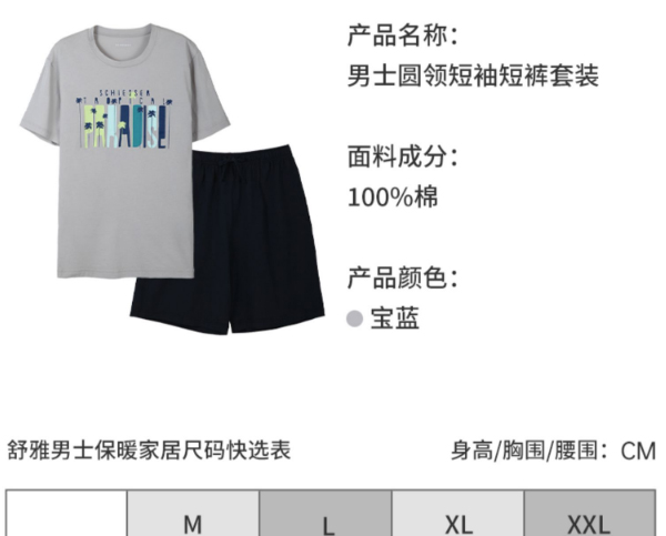 舒雅家居服男士纯棉春夏季新款简约男生可外穿睡衣【套】 39/19599H