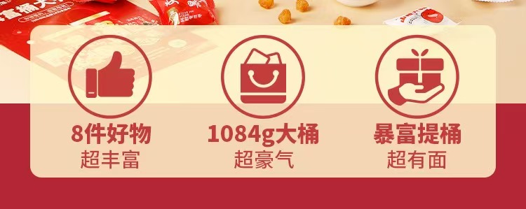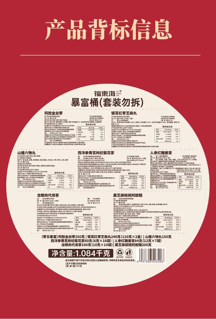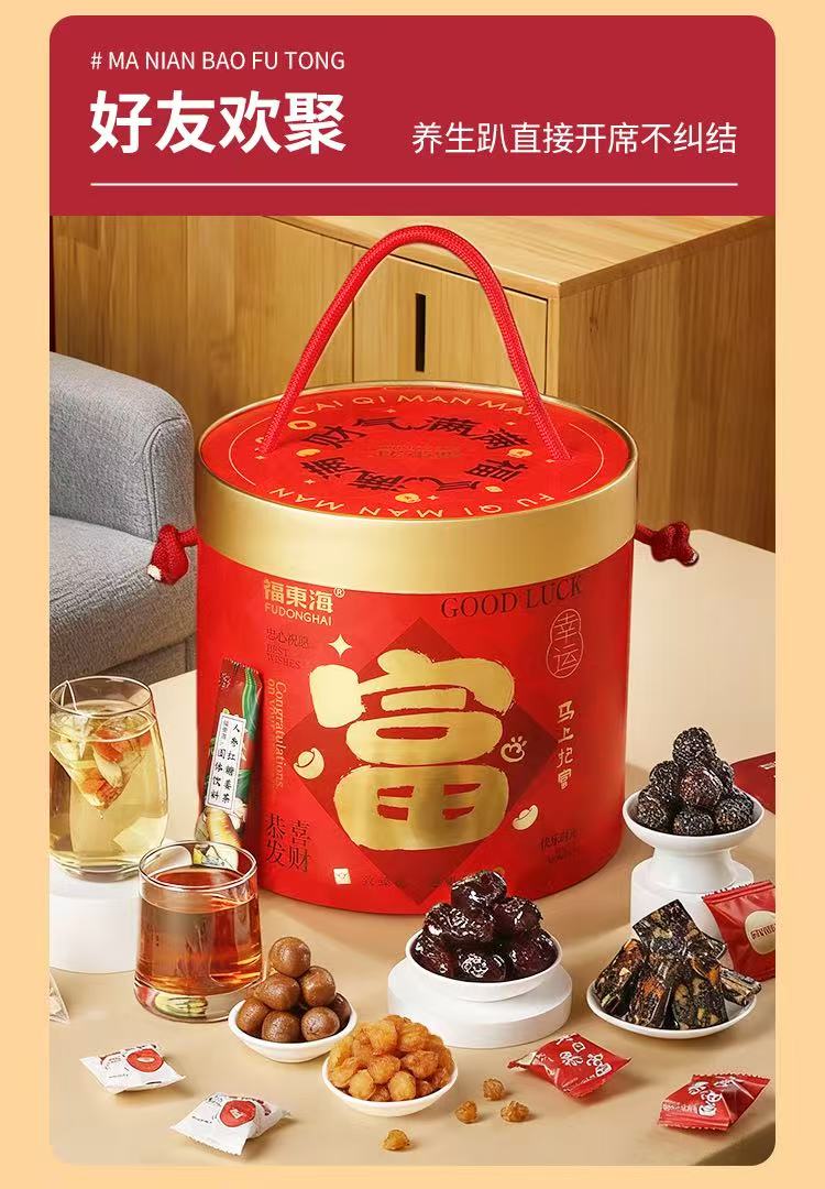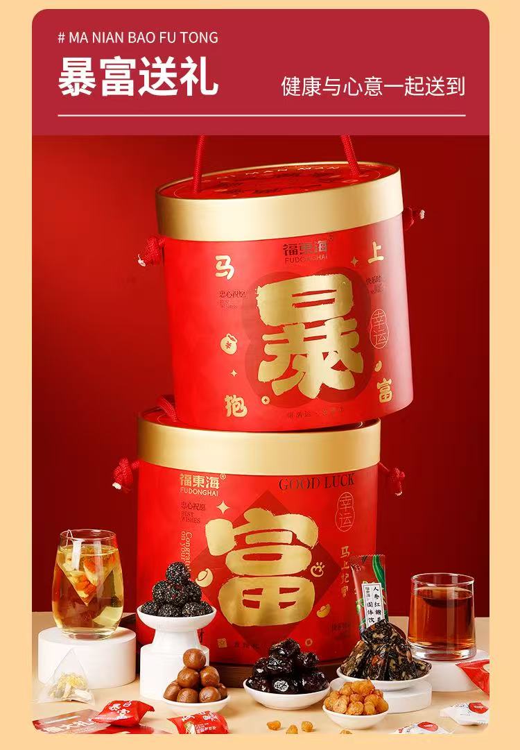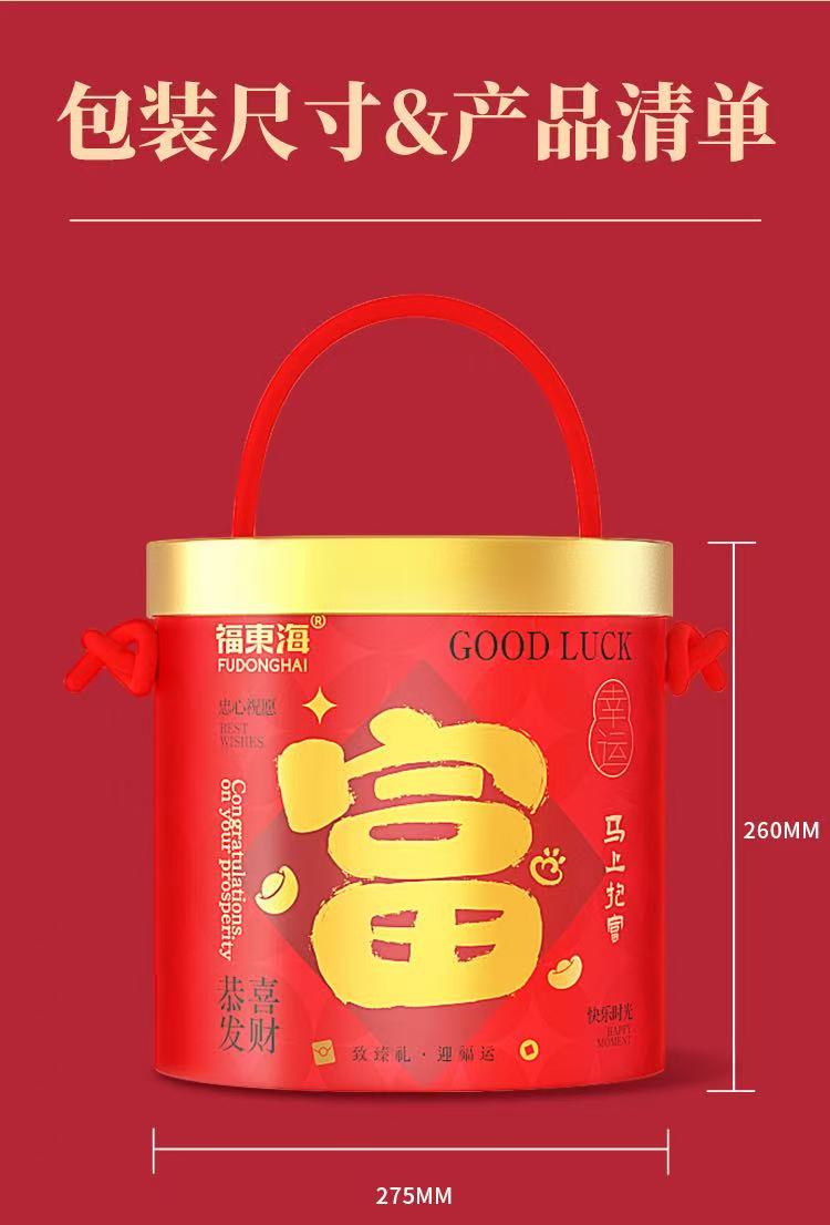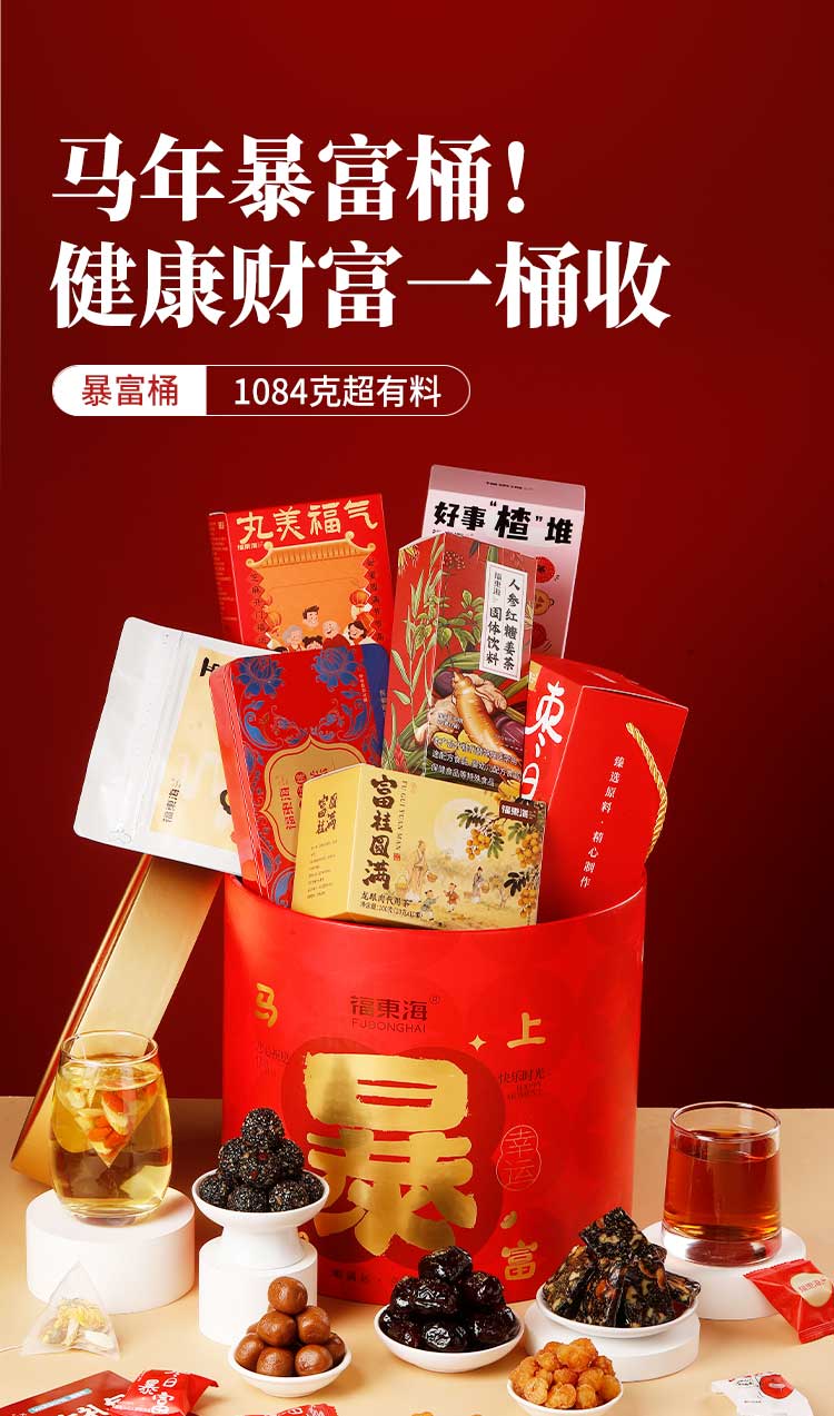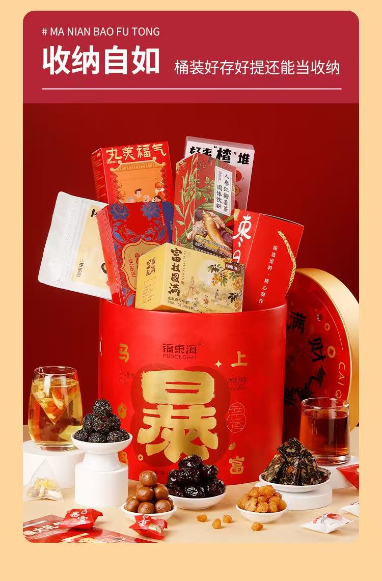 【现货发出】福东海 零食暴富桶1084克 芝麻丸阿胶糕金丝枣家庭装零食组合过年货礼盒