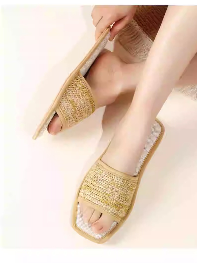【多样屋专柜】多样屋开口编织拖鞋 四季棉麻拖鞋女家居室内情侣拖鞋