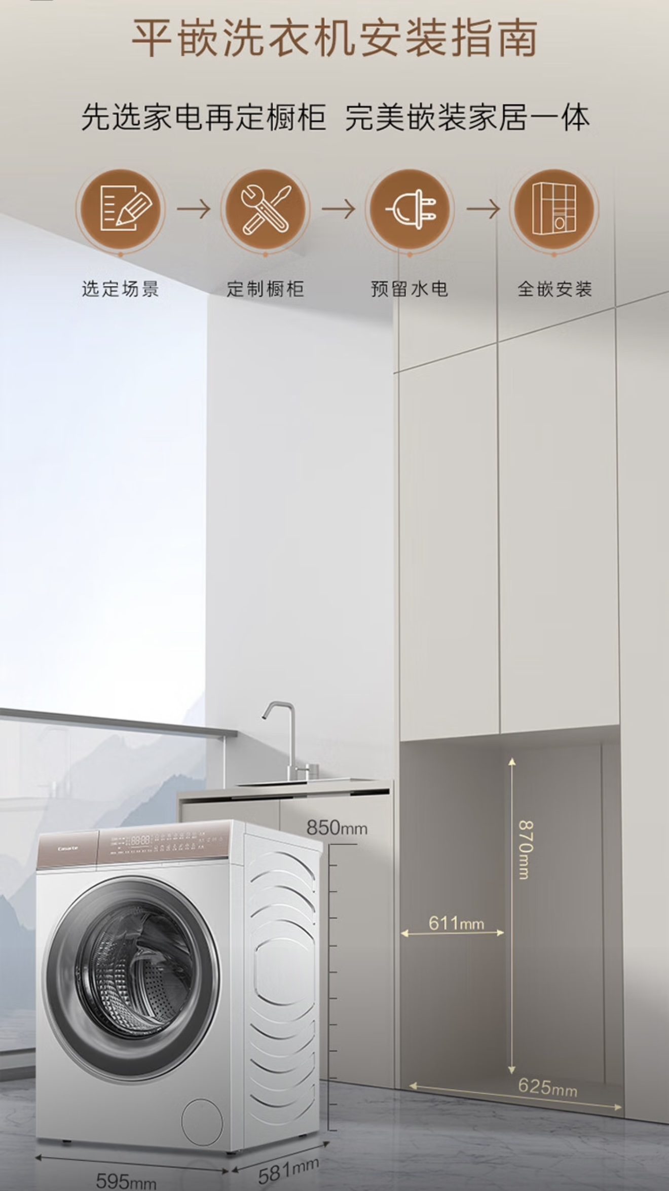 卡萨帝(Casarte)滚筒洗衣机全自动精华洗 10公斤洗烘一体 超薄纯平嵌入 直驱电机(CE HB10LDWBU1)