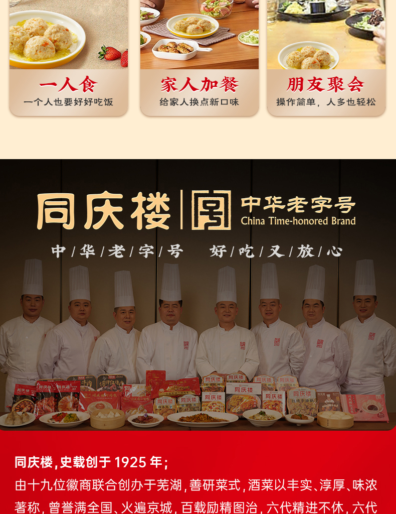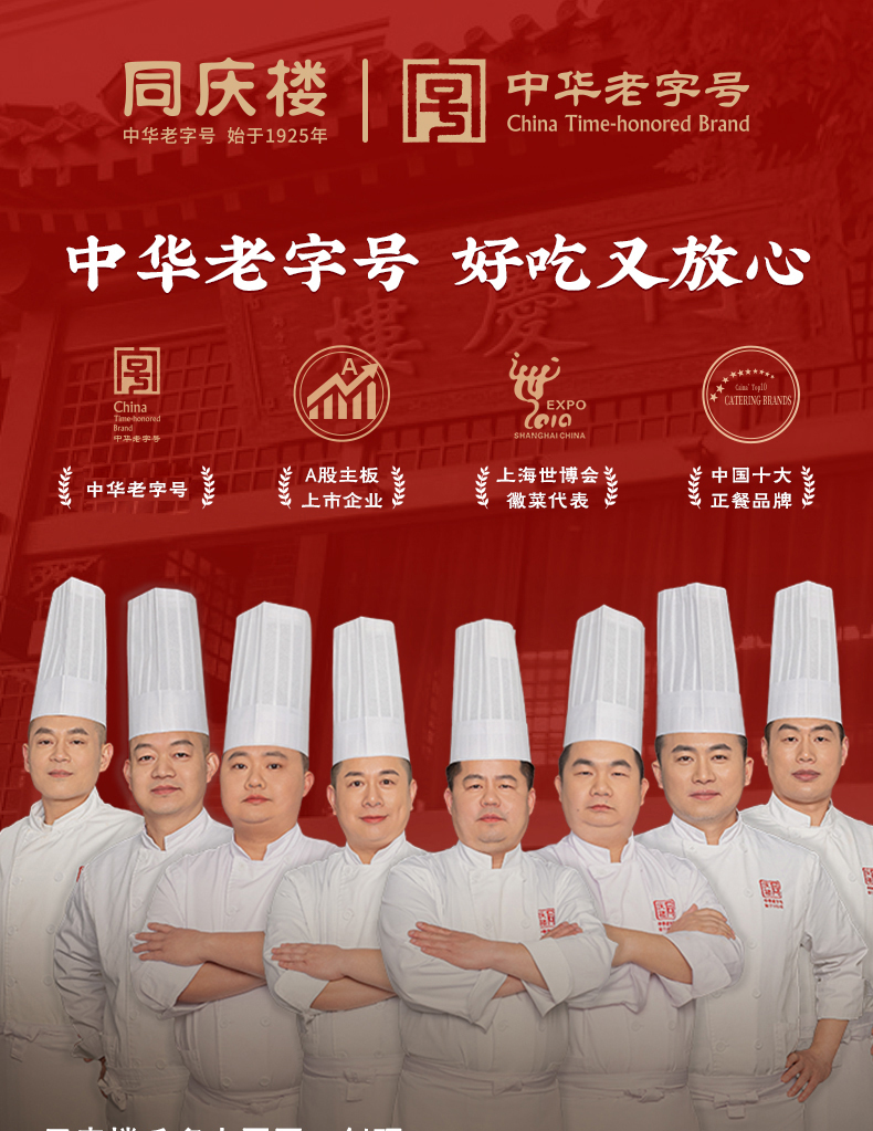 - 同庆楼品牌始创于1925年,是中华老字号,安徽和江苏两省餐饮龙头企业;是中国餐饮上市企业,百强企业,荣获多项荣誉,深受各方关注和好评,赢得海内外宾客广泛赞誉。